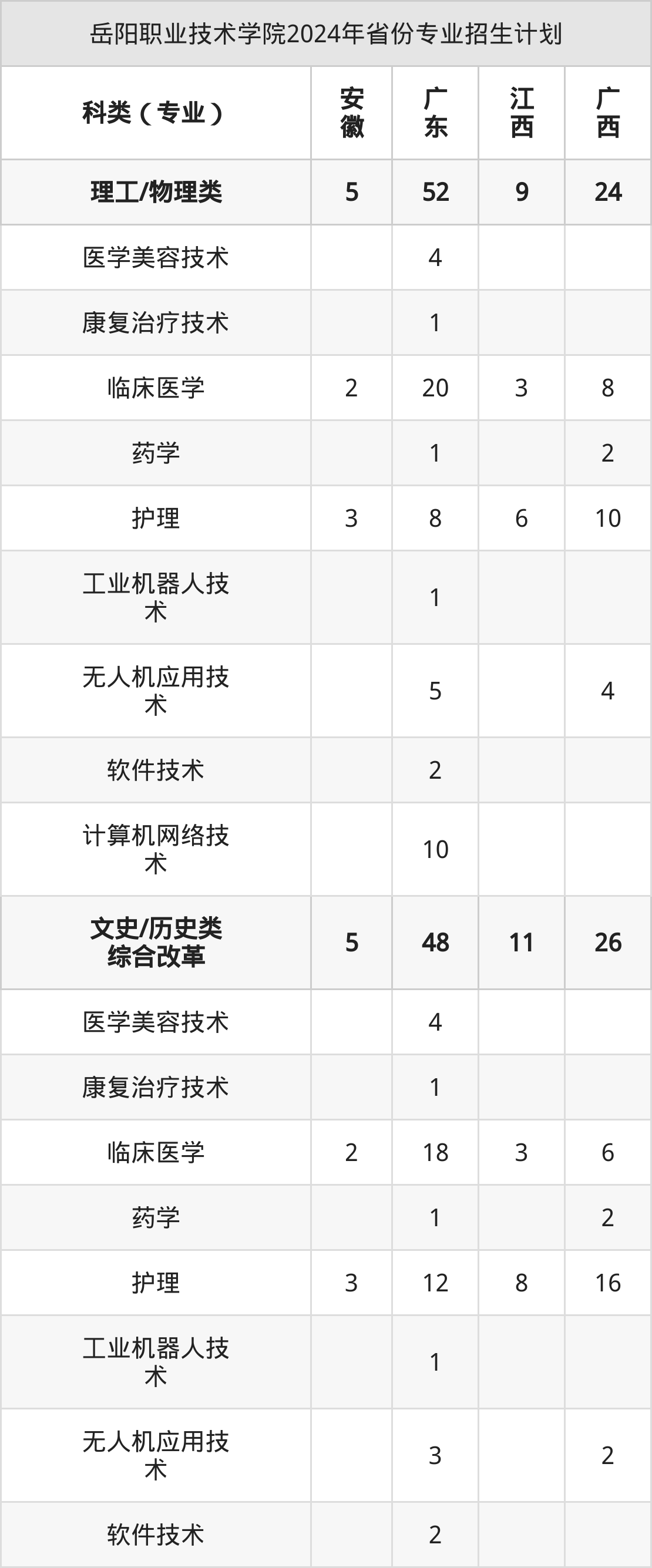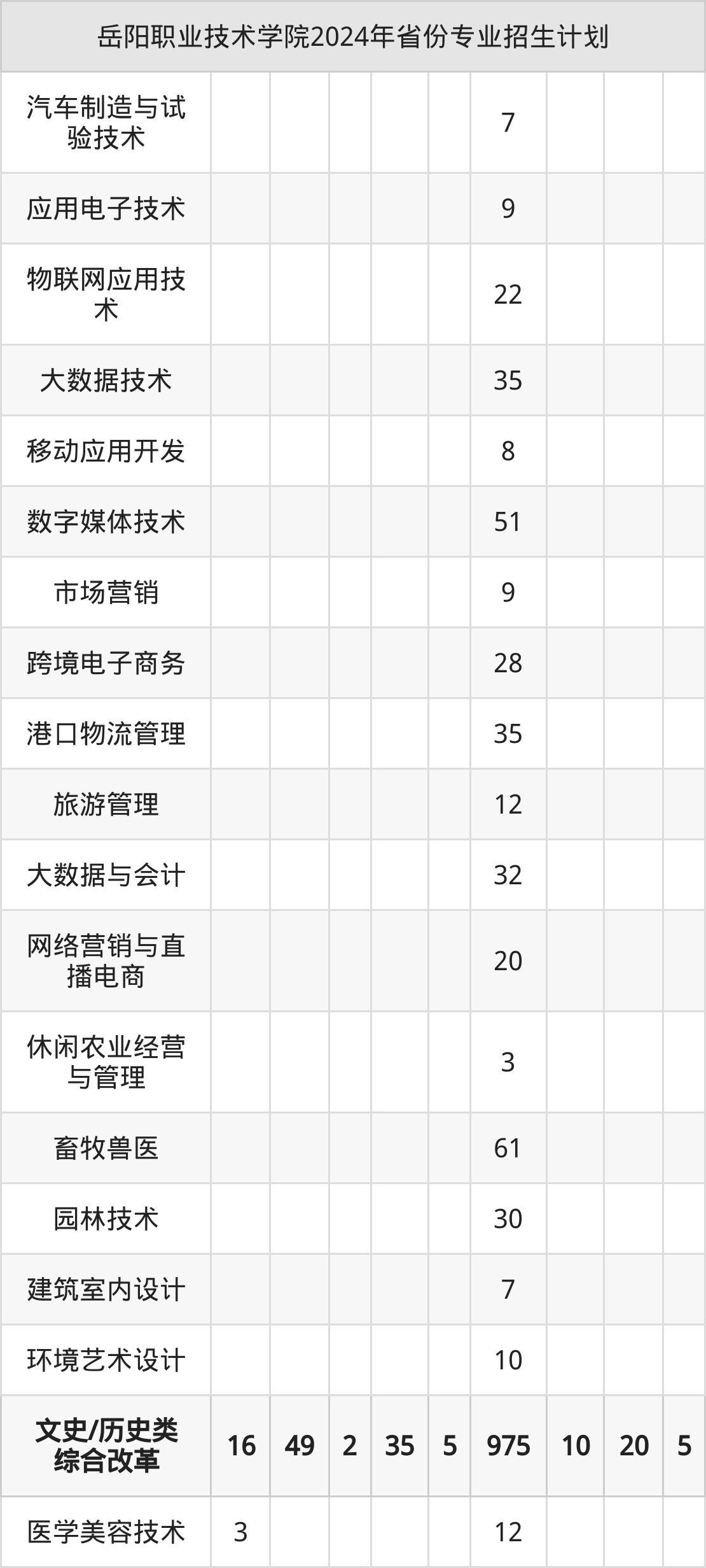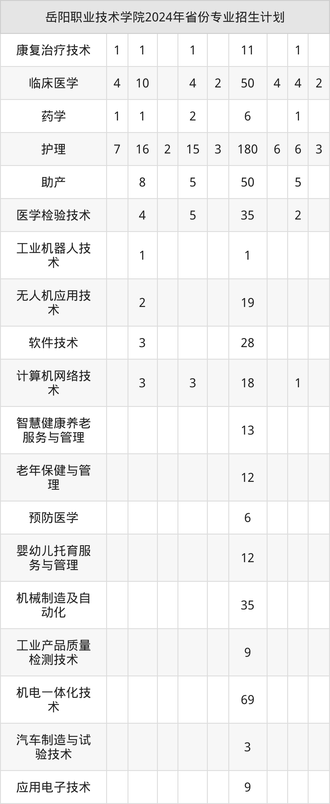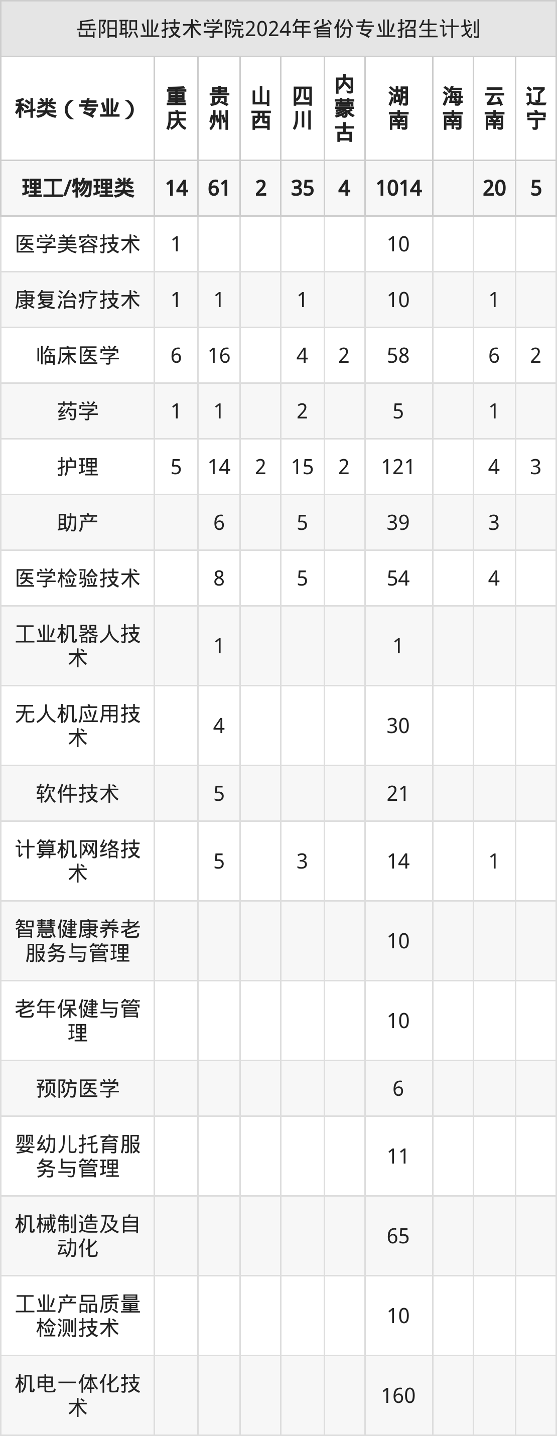 2025年岳阳职业技术学院专科招生计划待公布,下面附上2024年数据,暂供参考: