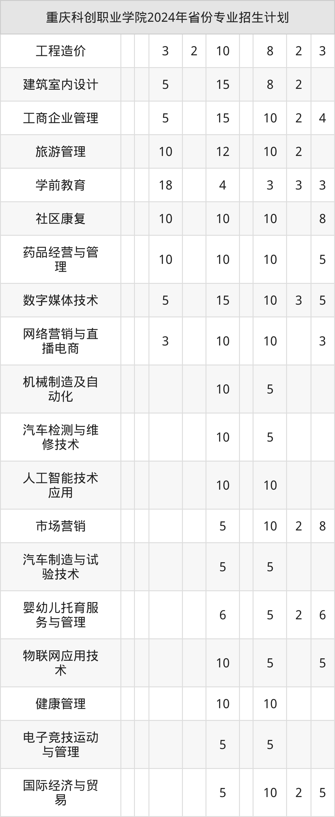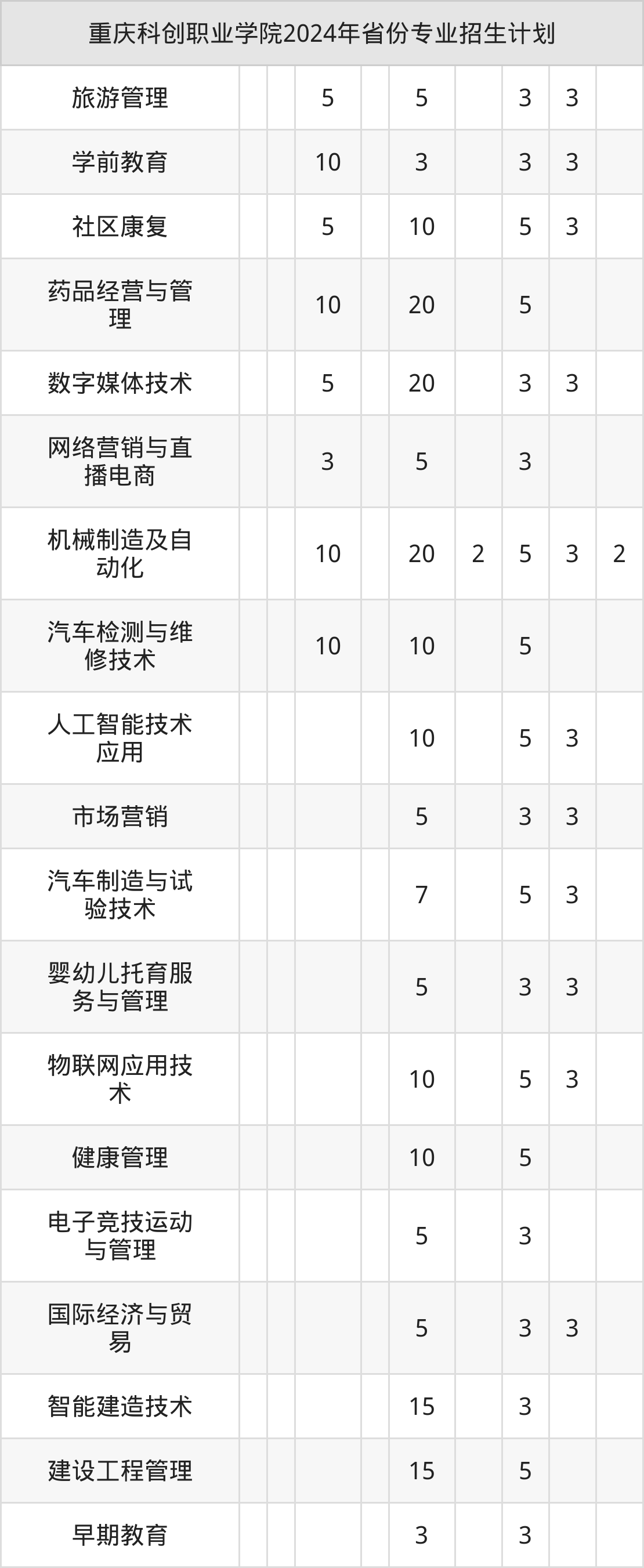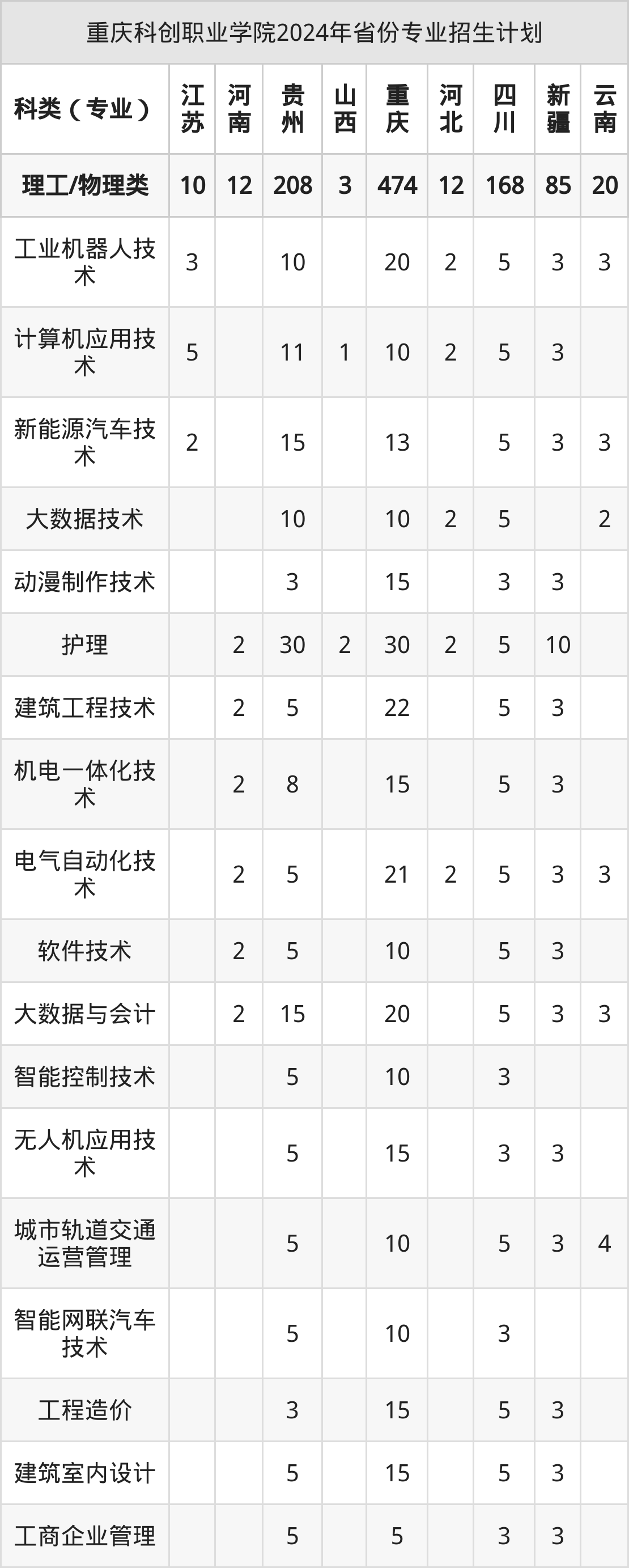 2025年重庆科创职业学院专科招生计划待公布,下面附上2024年数据,暂供参考: