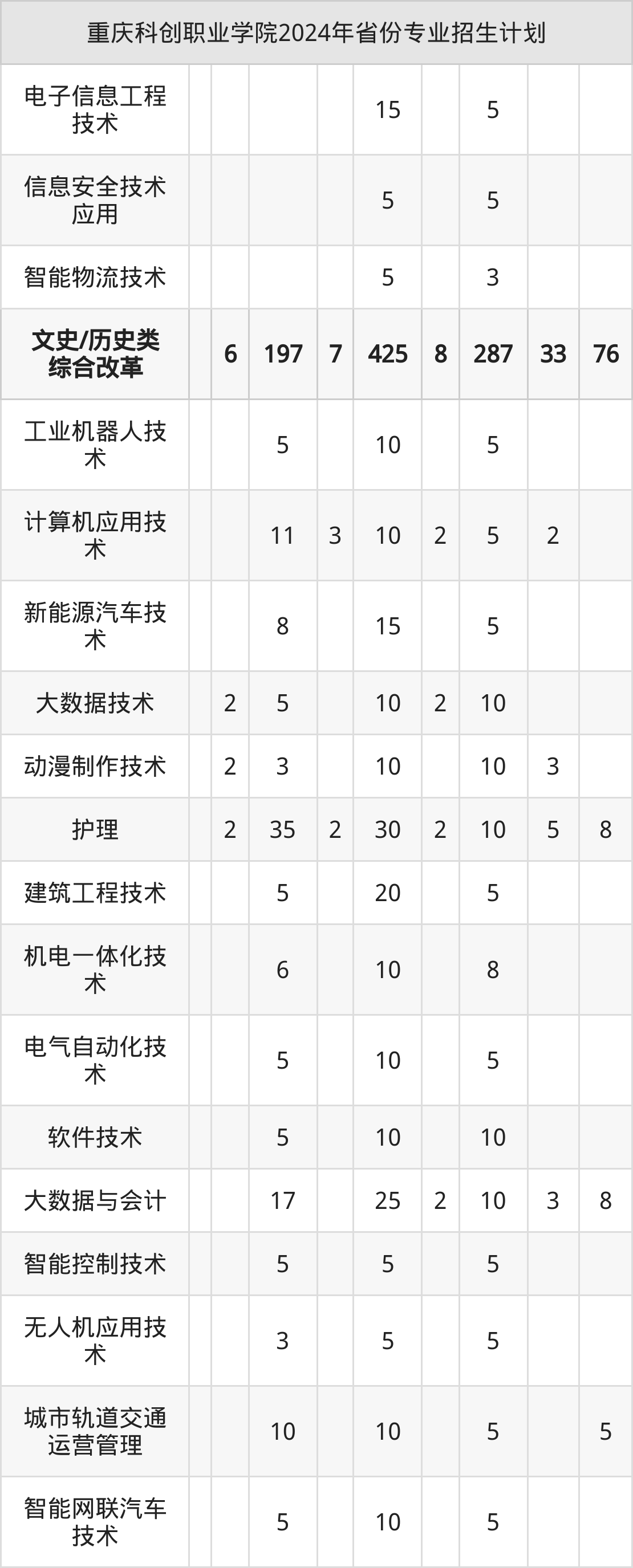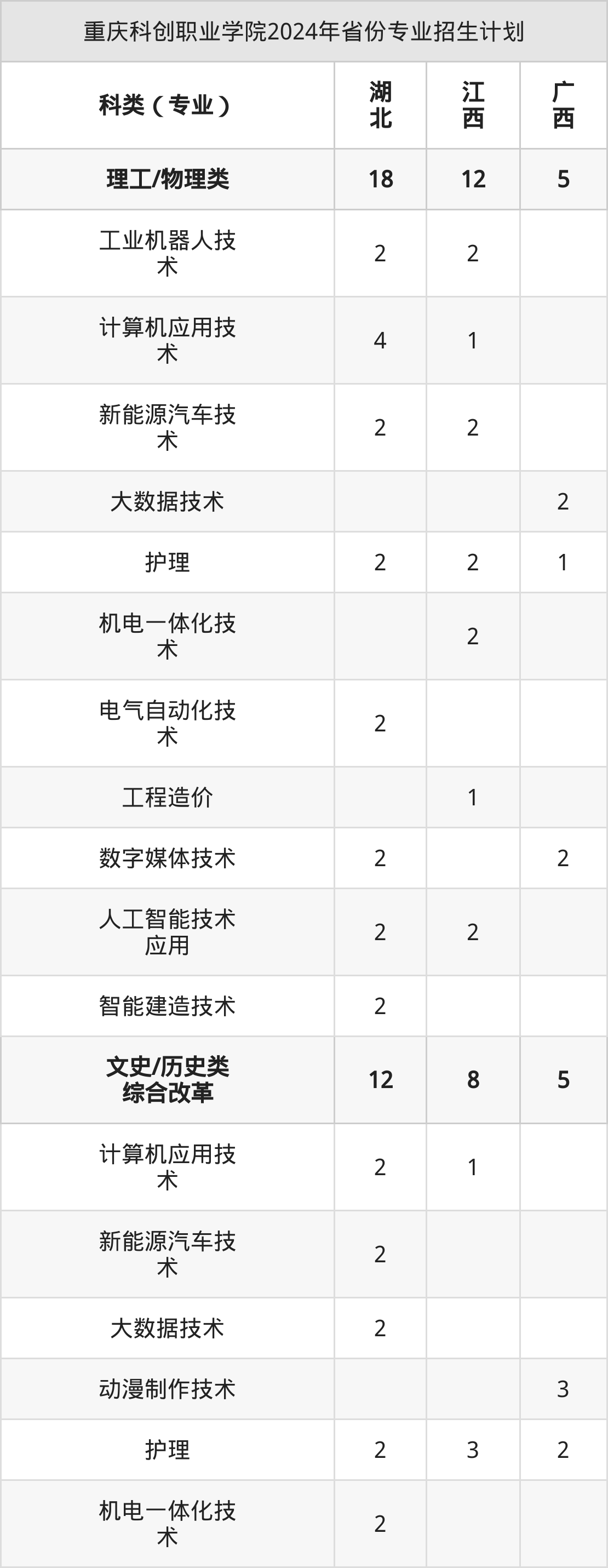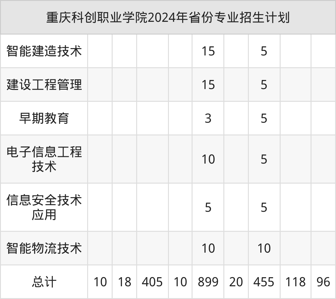 2025年重庆科创职业学院专科招生计划待公布,下面附上2024年数据,暂供参考: