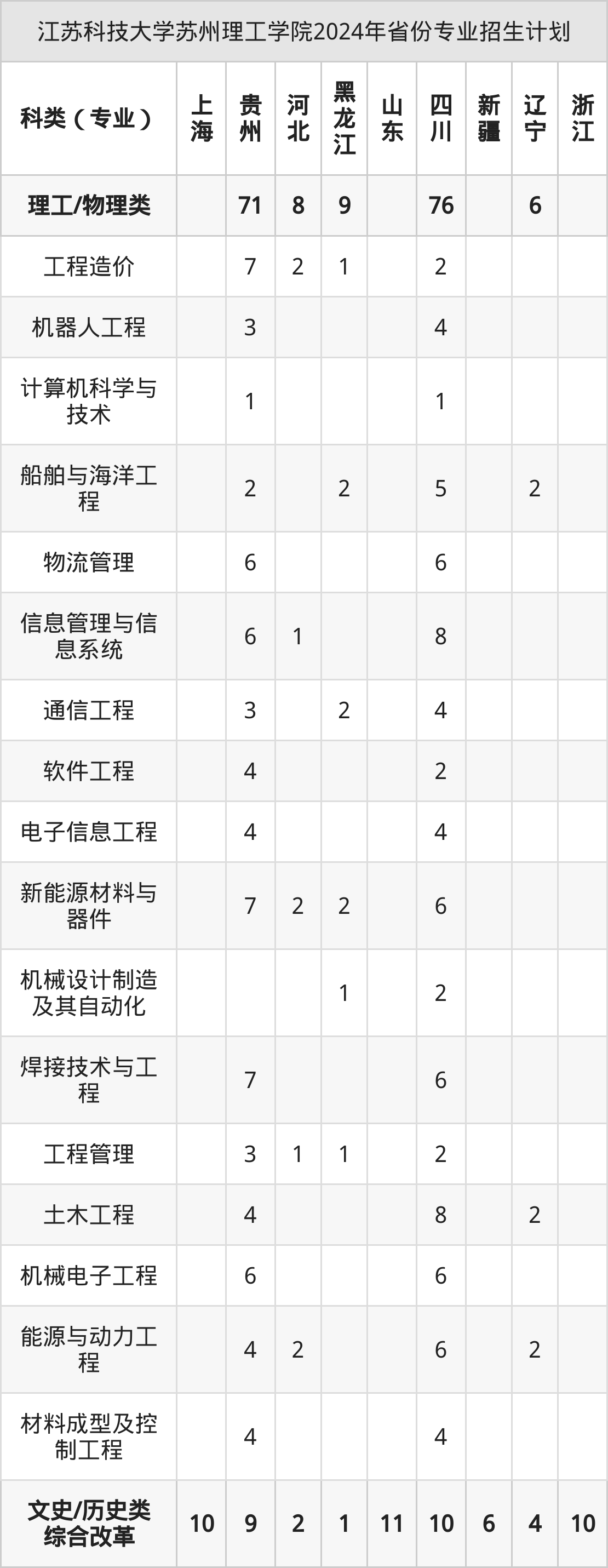 | 省份 | 综合改革/历史类/文史 | |||