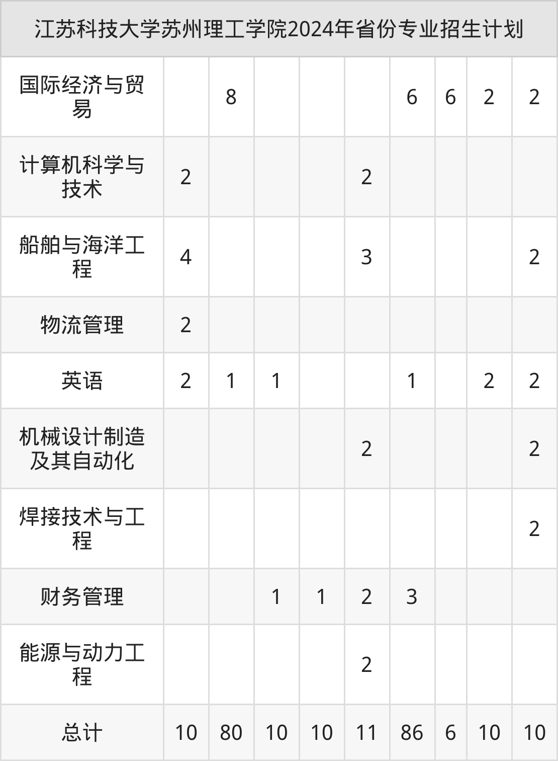 而各省份的招生计划数为广西80人,山西44人,上海10人,四川86人,浙江10人等。