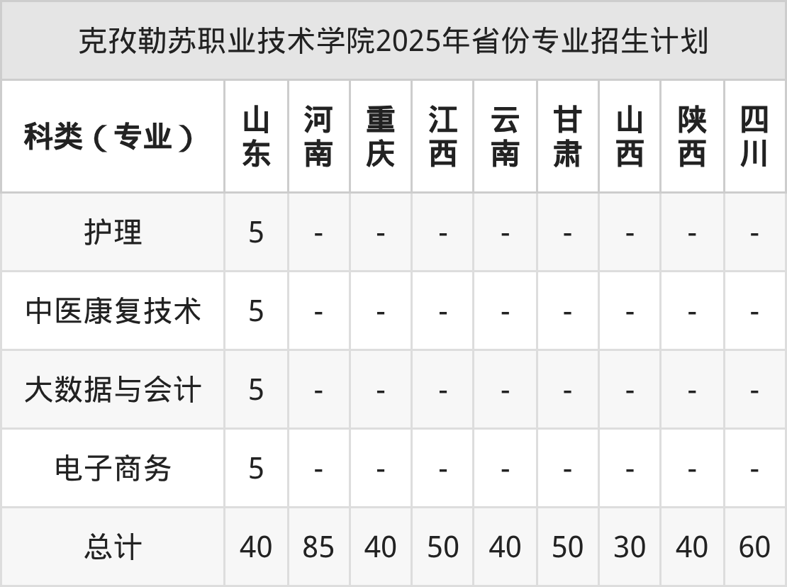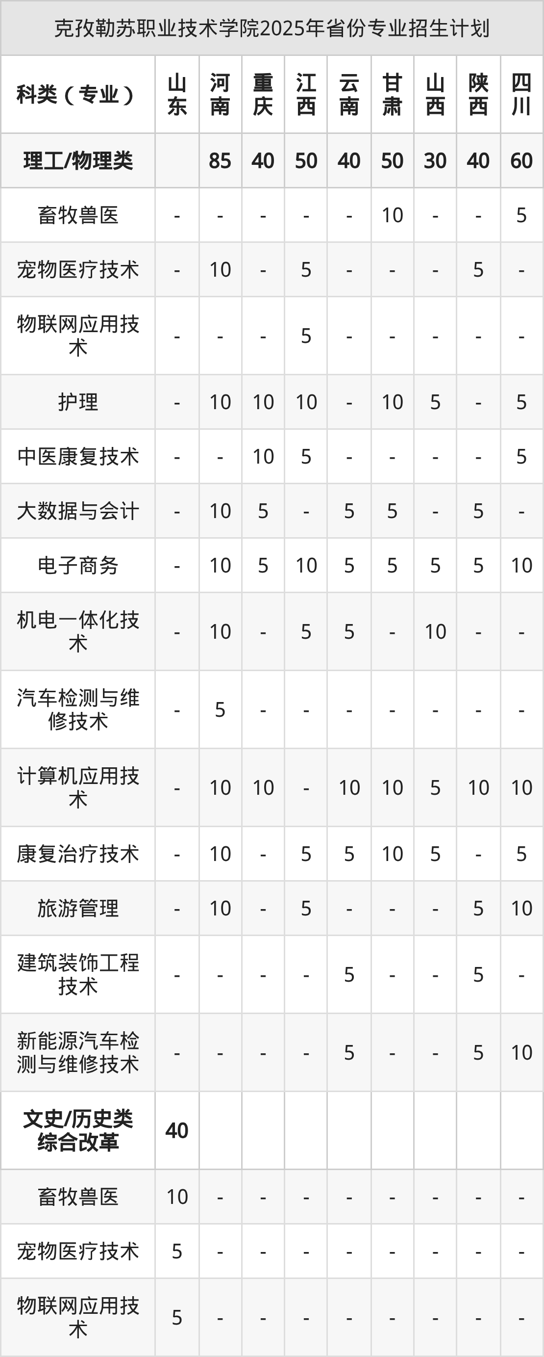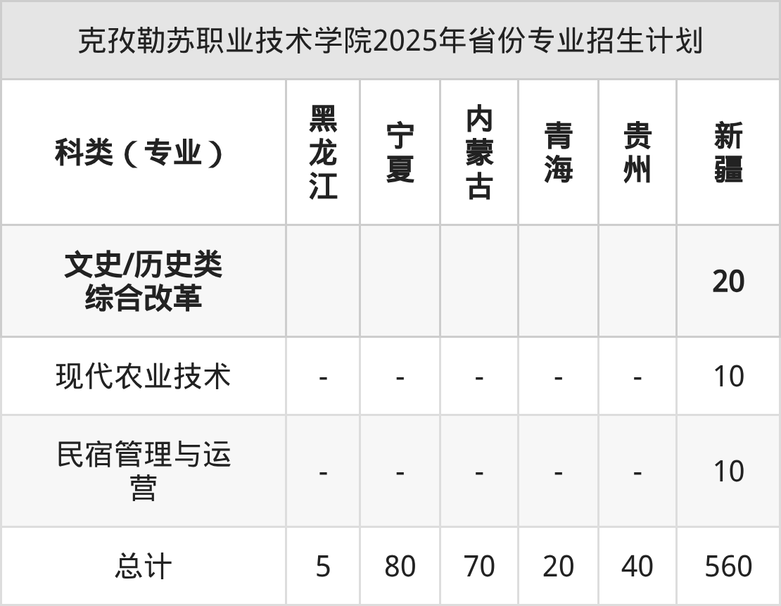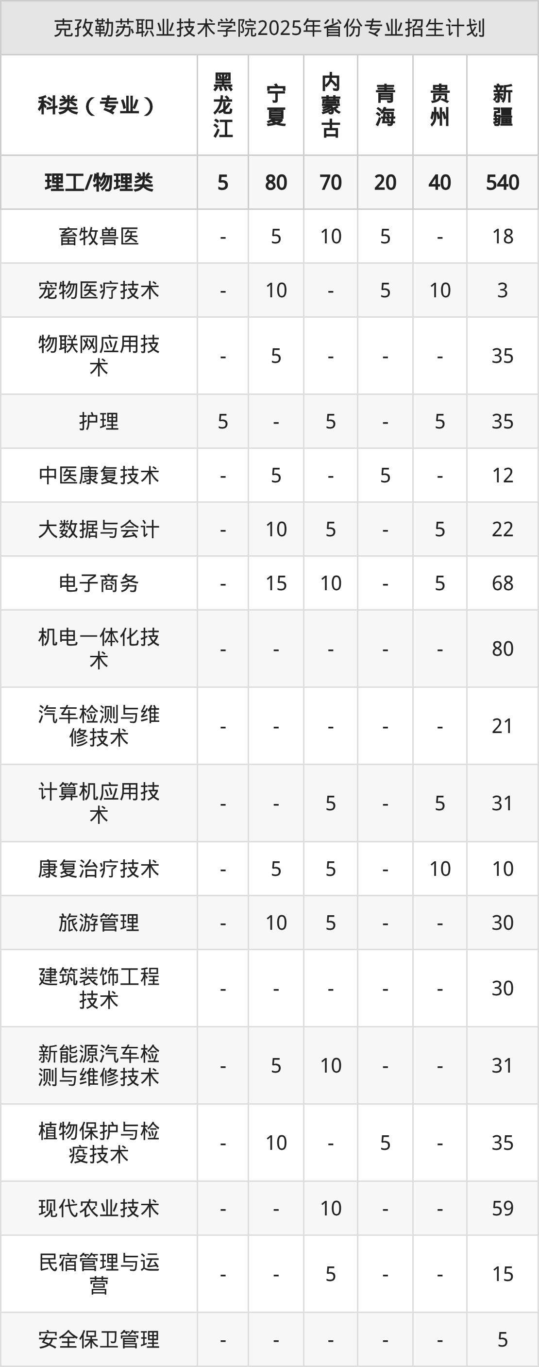 2026年克孜勒苏职业技术学院专科招生计划待公布,下面附上2025年数据,暂供参考: