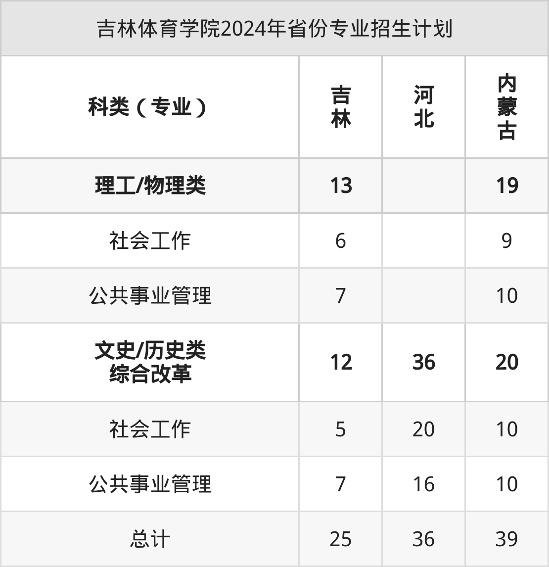 2025年吉林体育学院本科招生计划待公布,下面附上2024年数据,暂供参考: