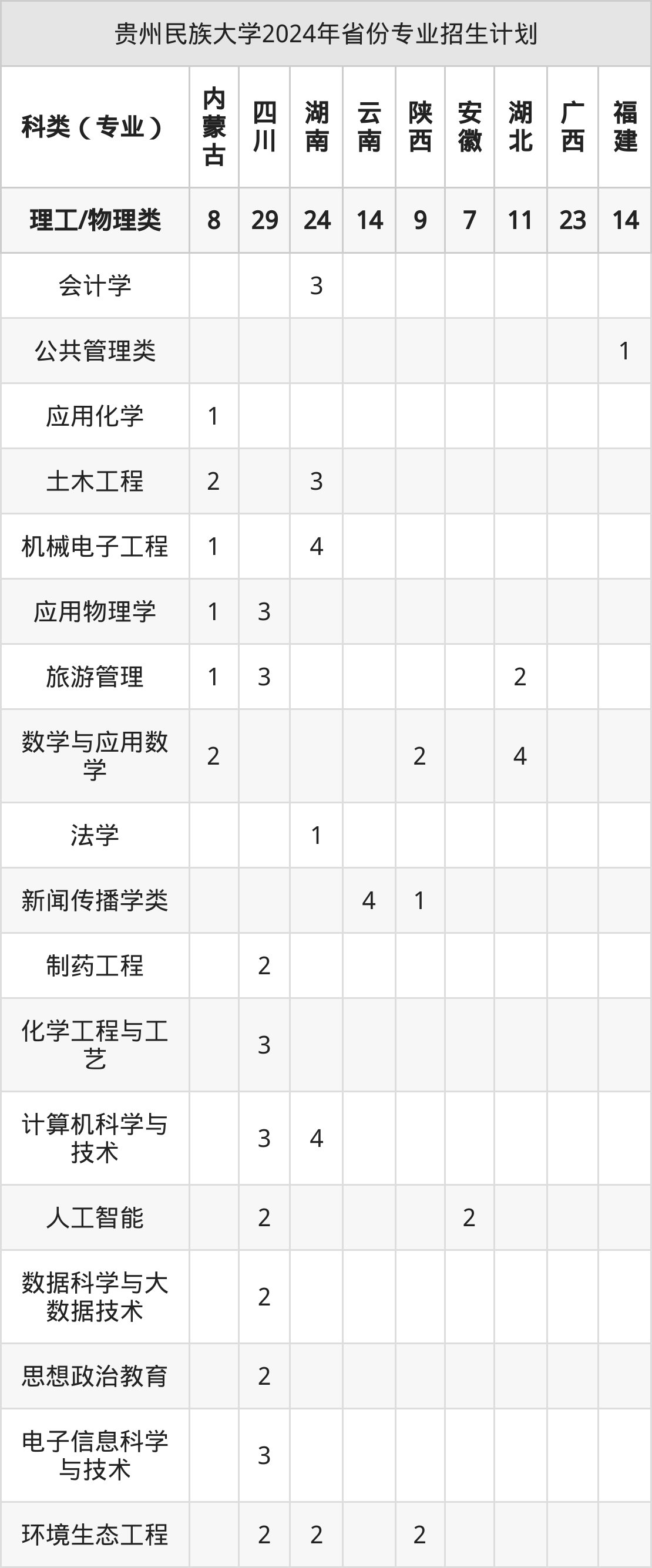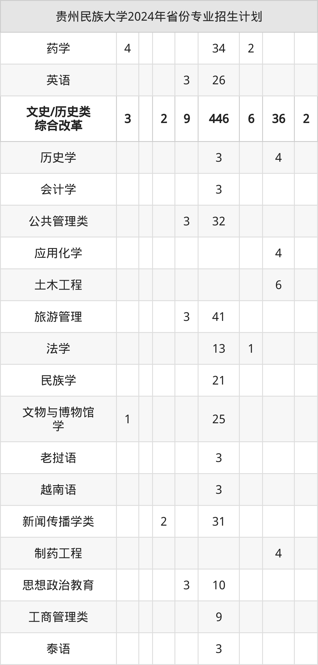 2025年贵州民族大学本科招生计划待公布,下面附上2024年数据,暂供参考: