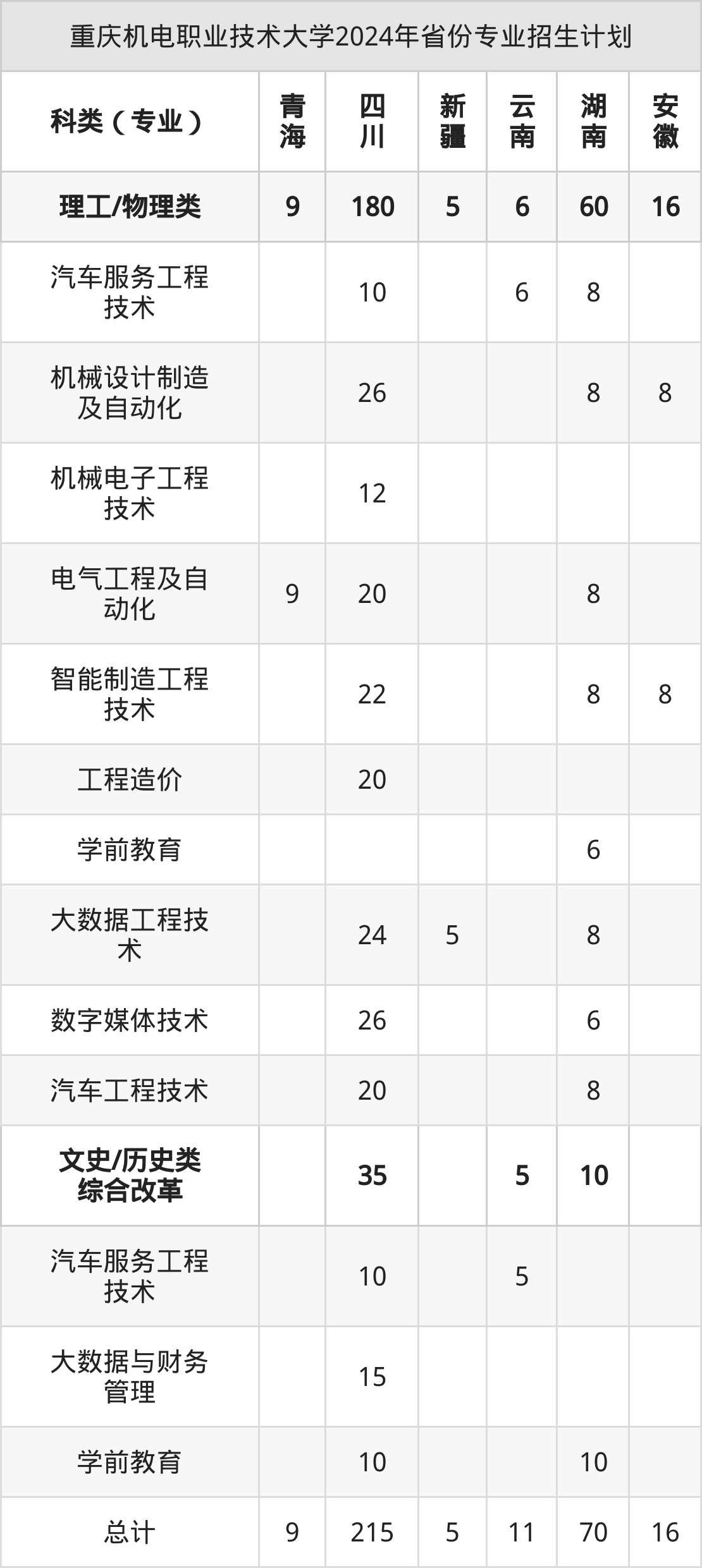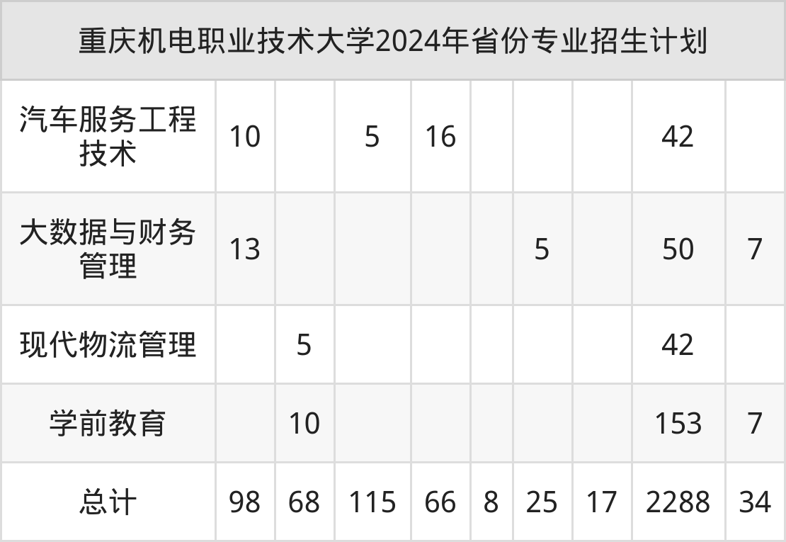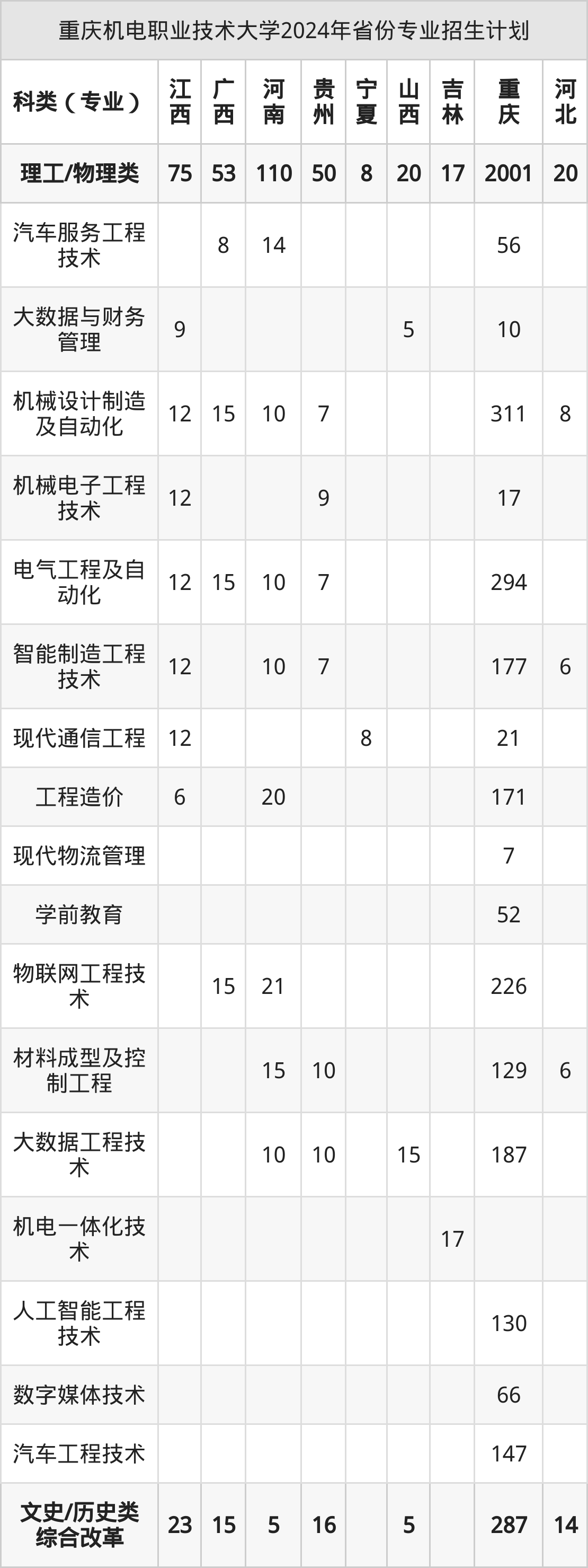 2025年重庆机电职业技术大学本科招生计划待公布,下面附上2024年数据,暂供参考: