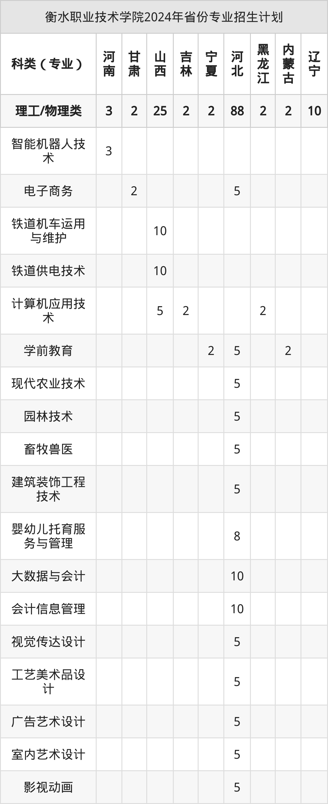 2025年衡水职业技术学院专科招生计划待公布,下面附上2024年数据,暂供参考: