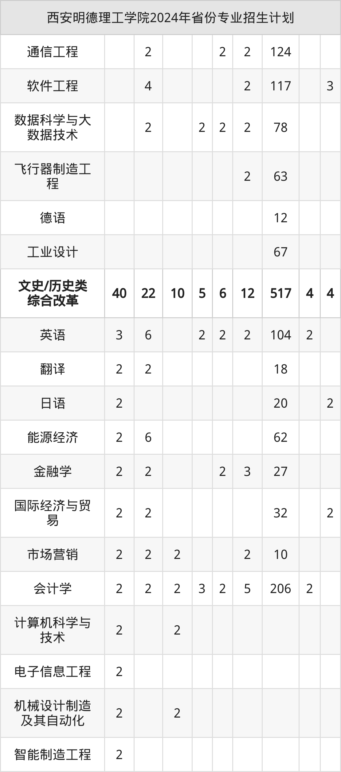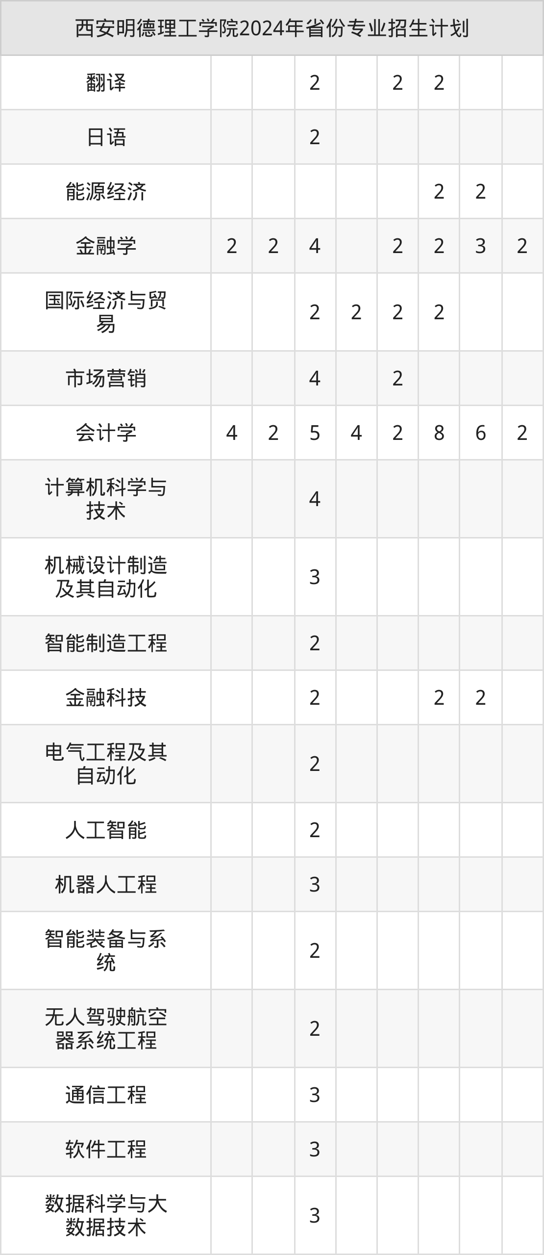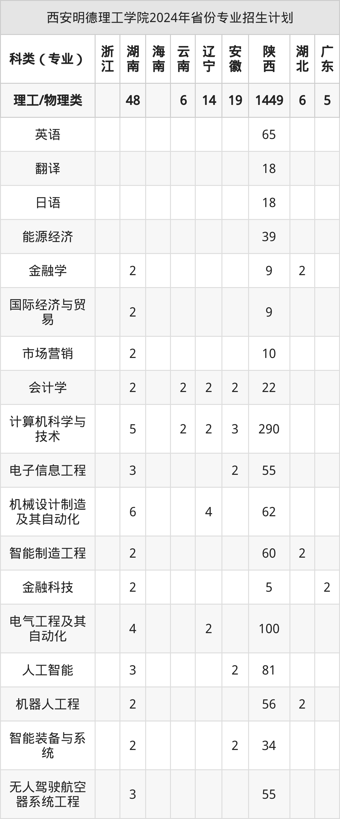 2025年西安明德理工学院本科招生计划待公布,下面附上2024年数据,暂供参考: