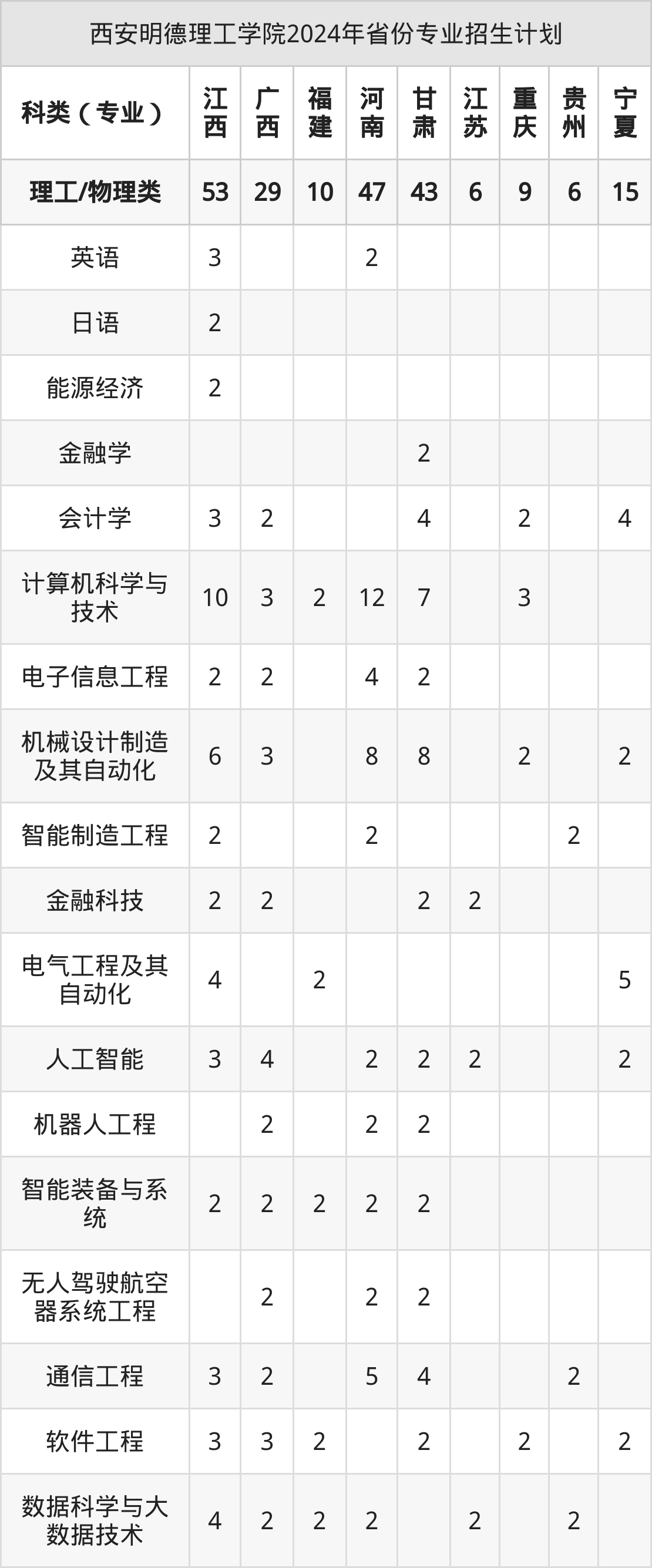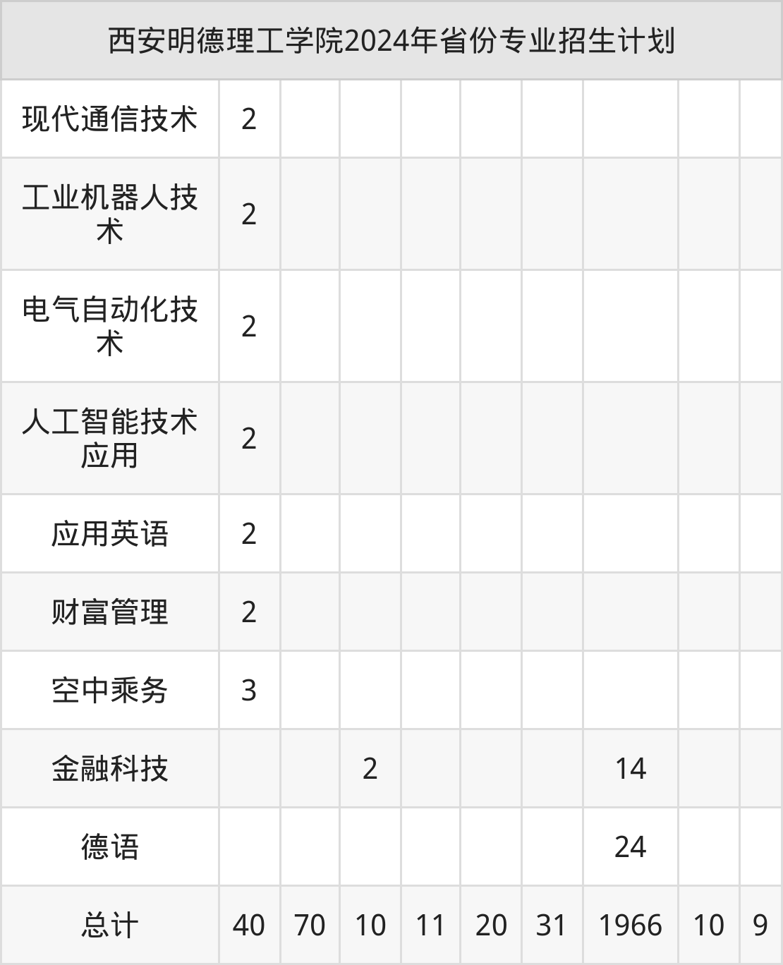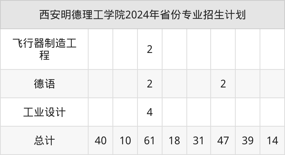 2025年西安明德理工学院本科招生计划待公布,下面附上2024年数据,暂供参考: