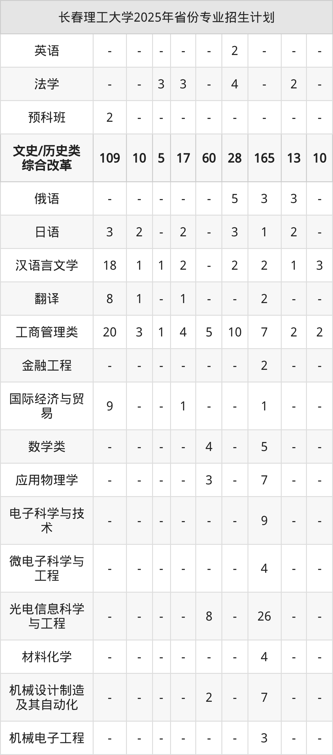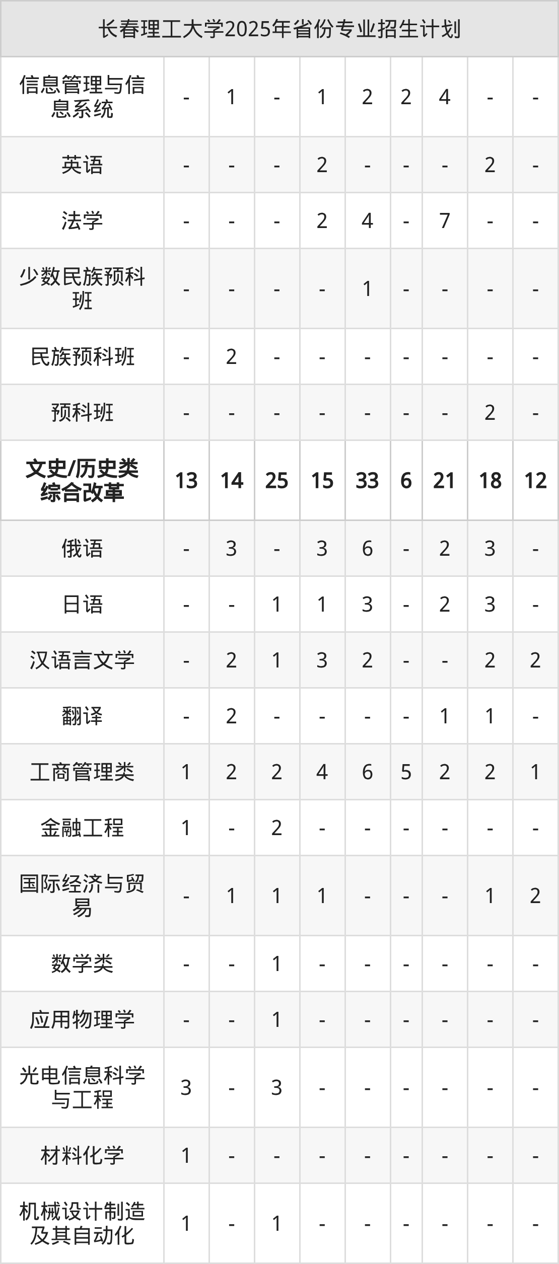 | 长春理工大学本科招生专业 | |