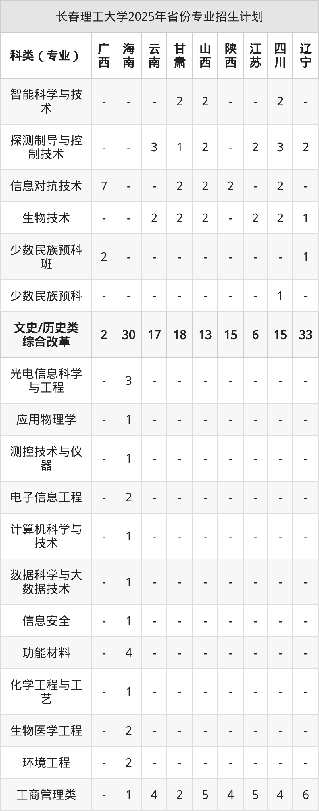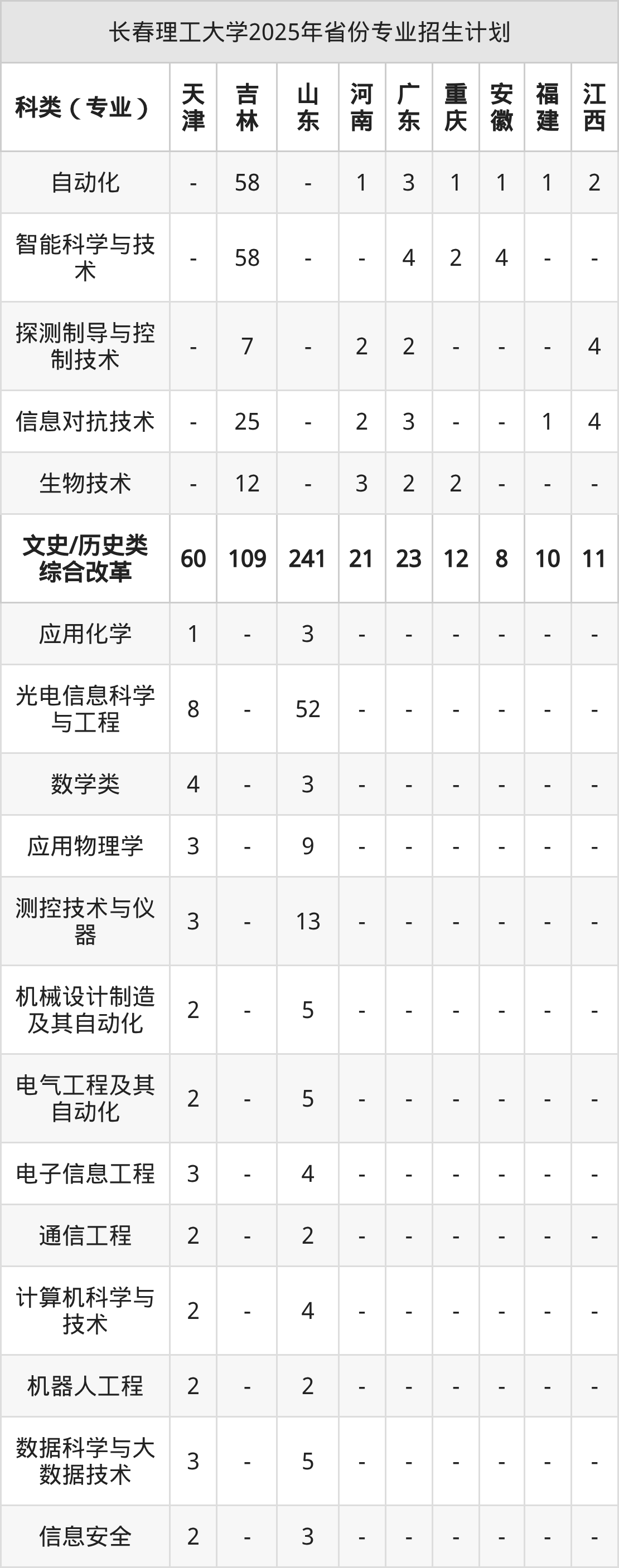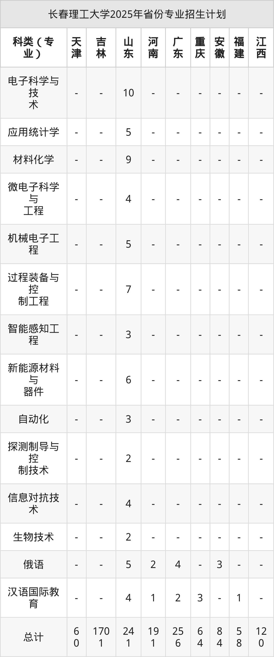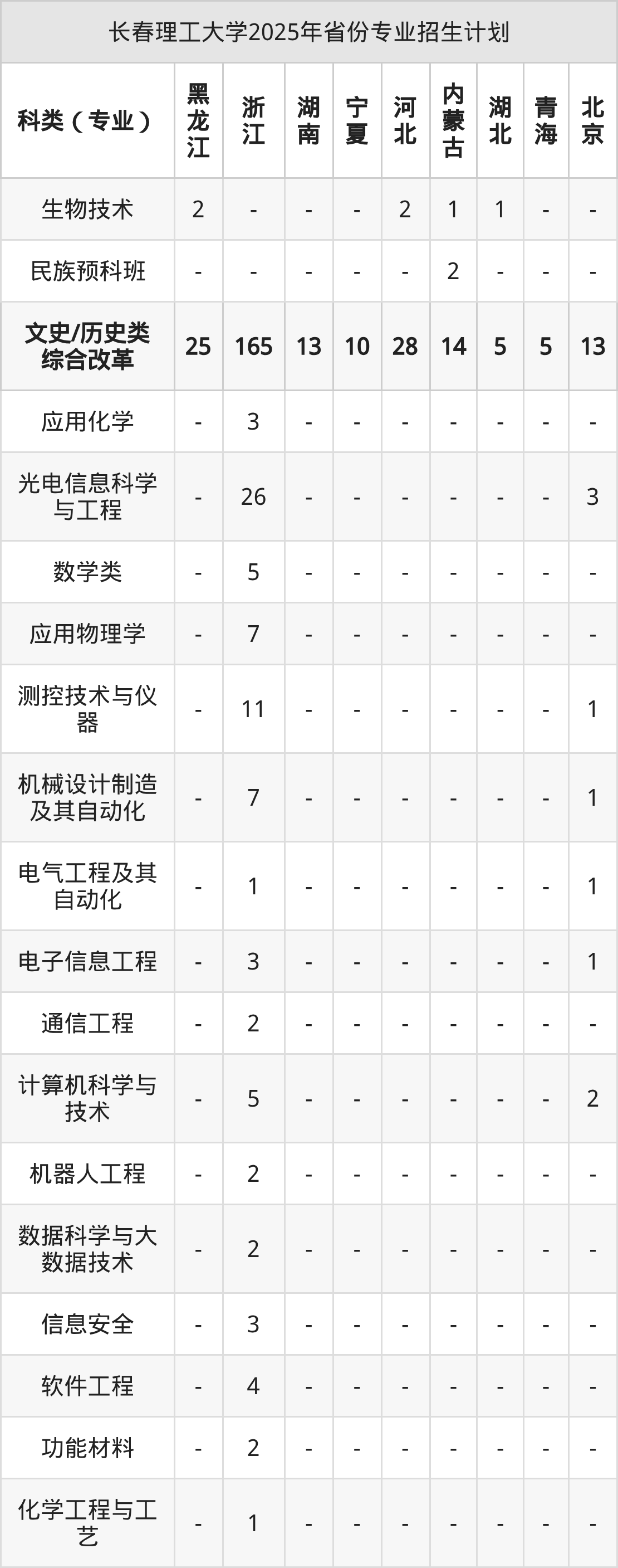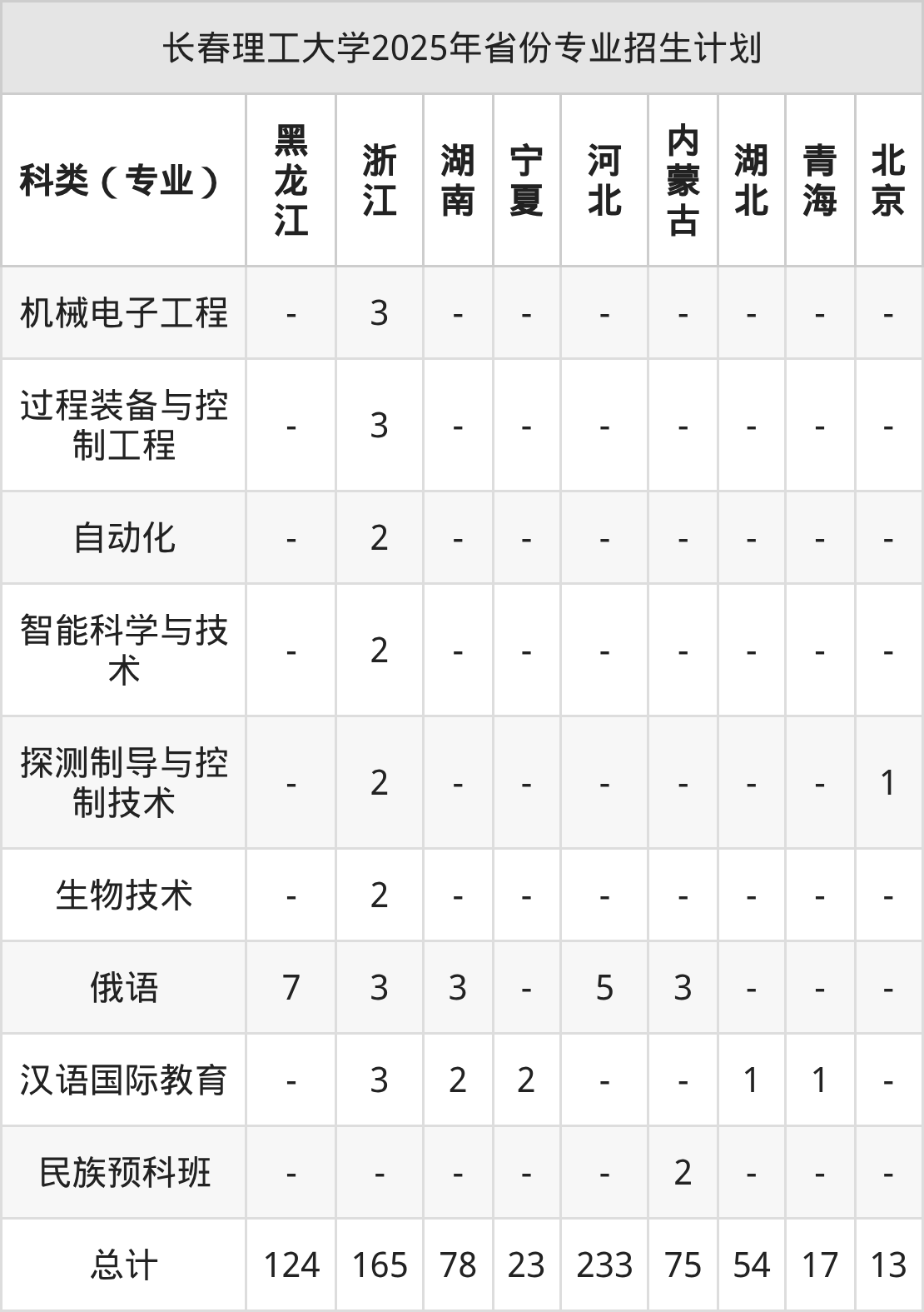2026年长春理工大学本科招生计划待公布,下面附上2025年数据,暂供参考: