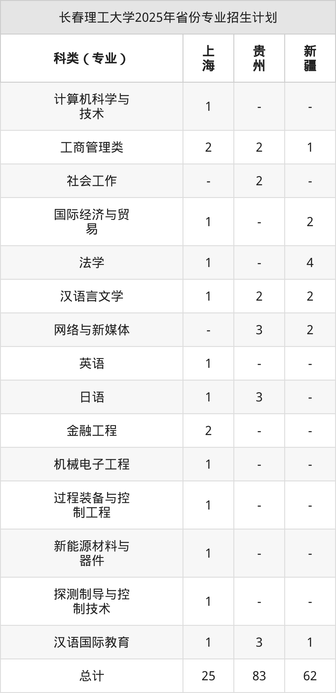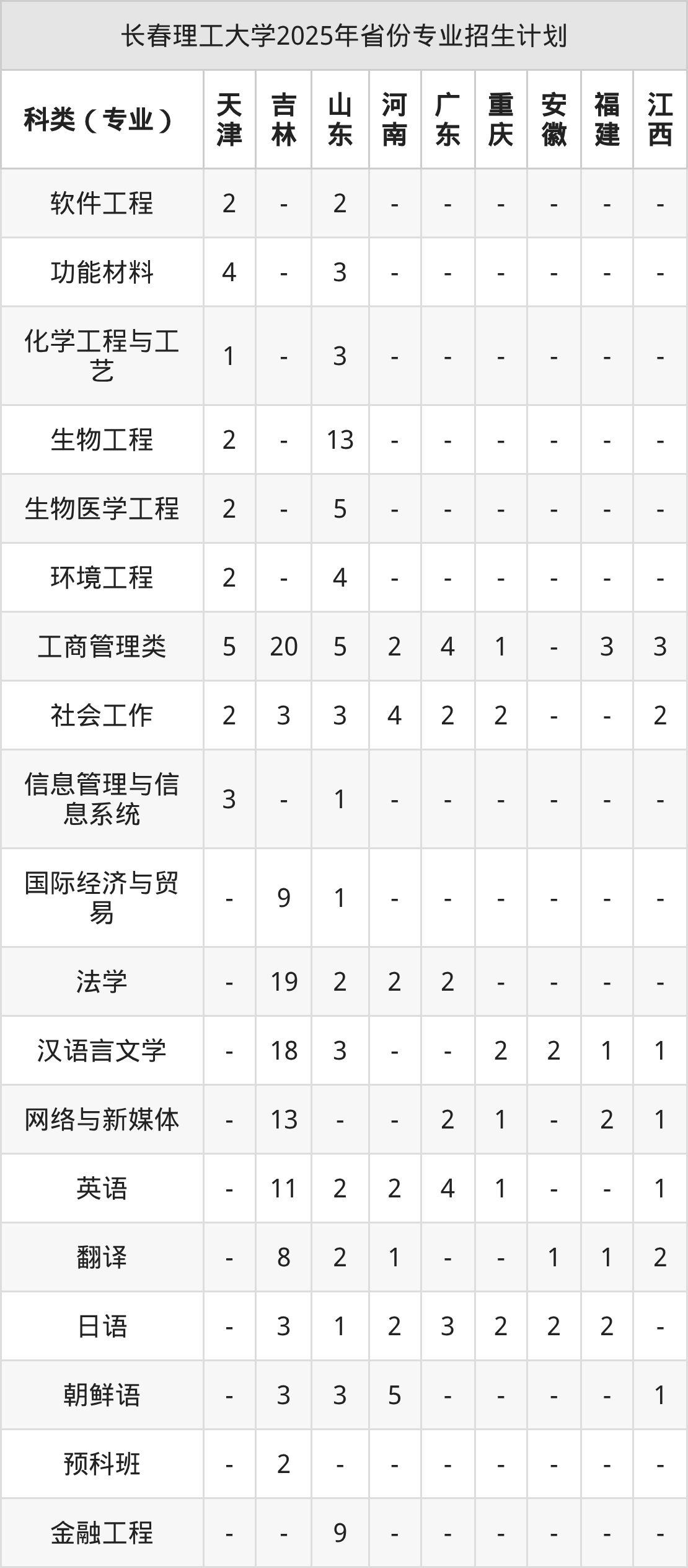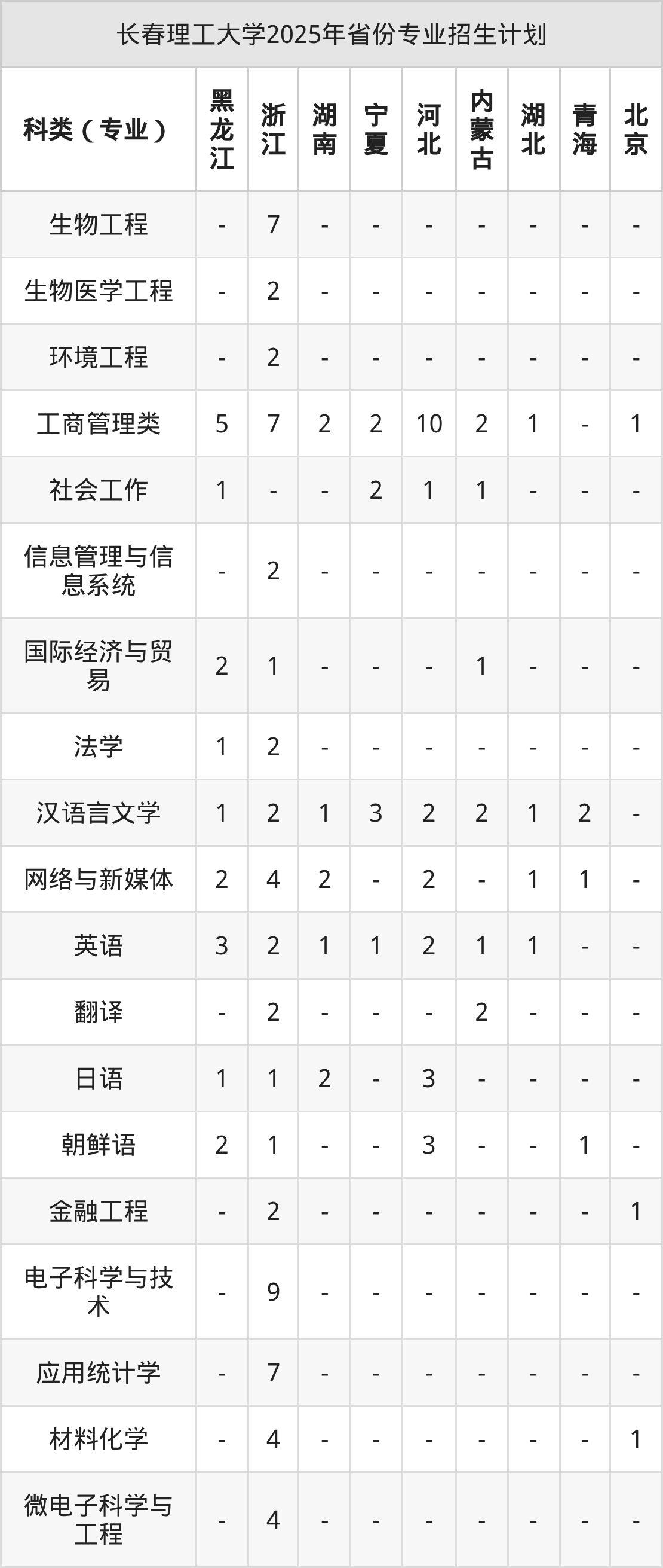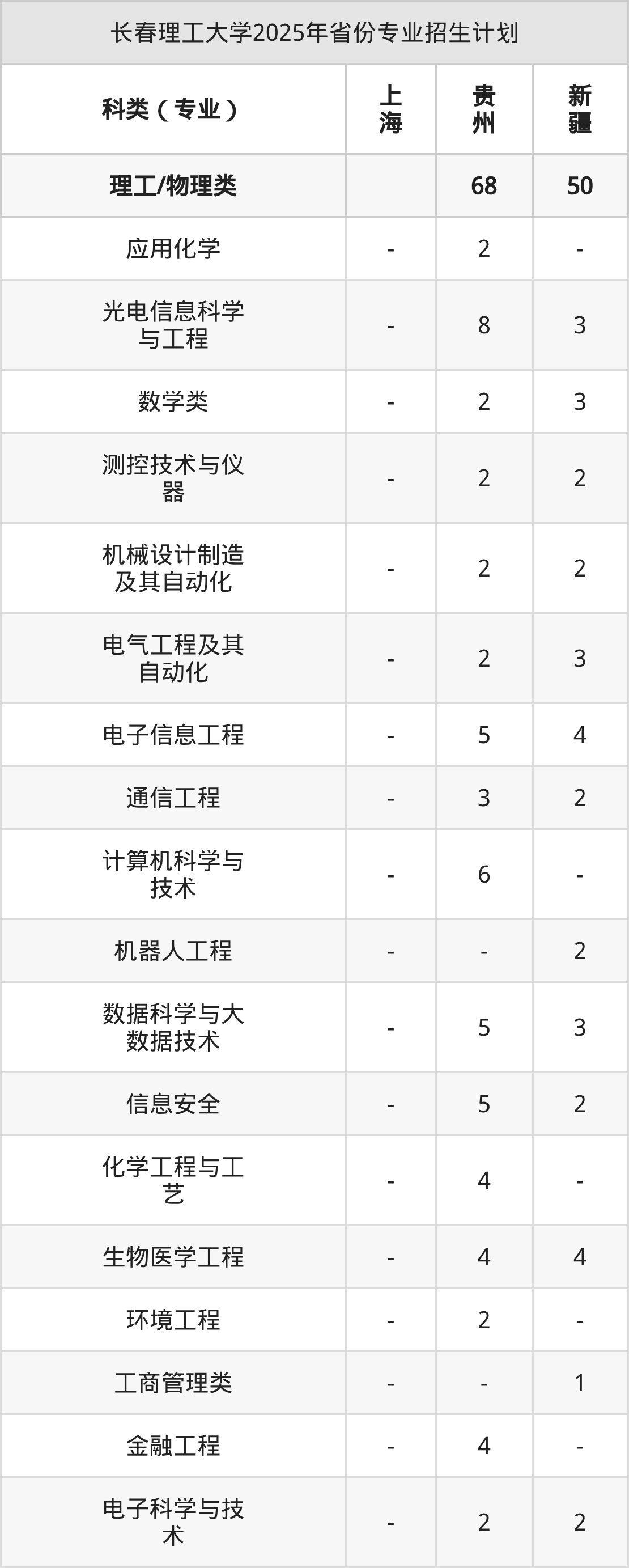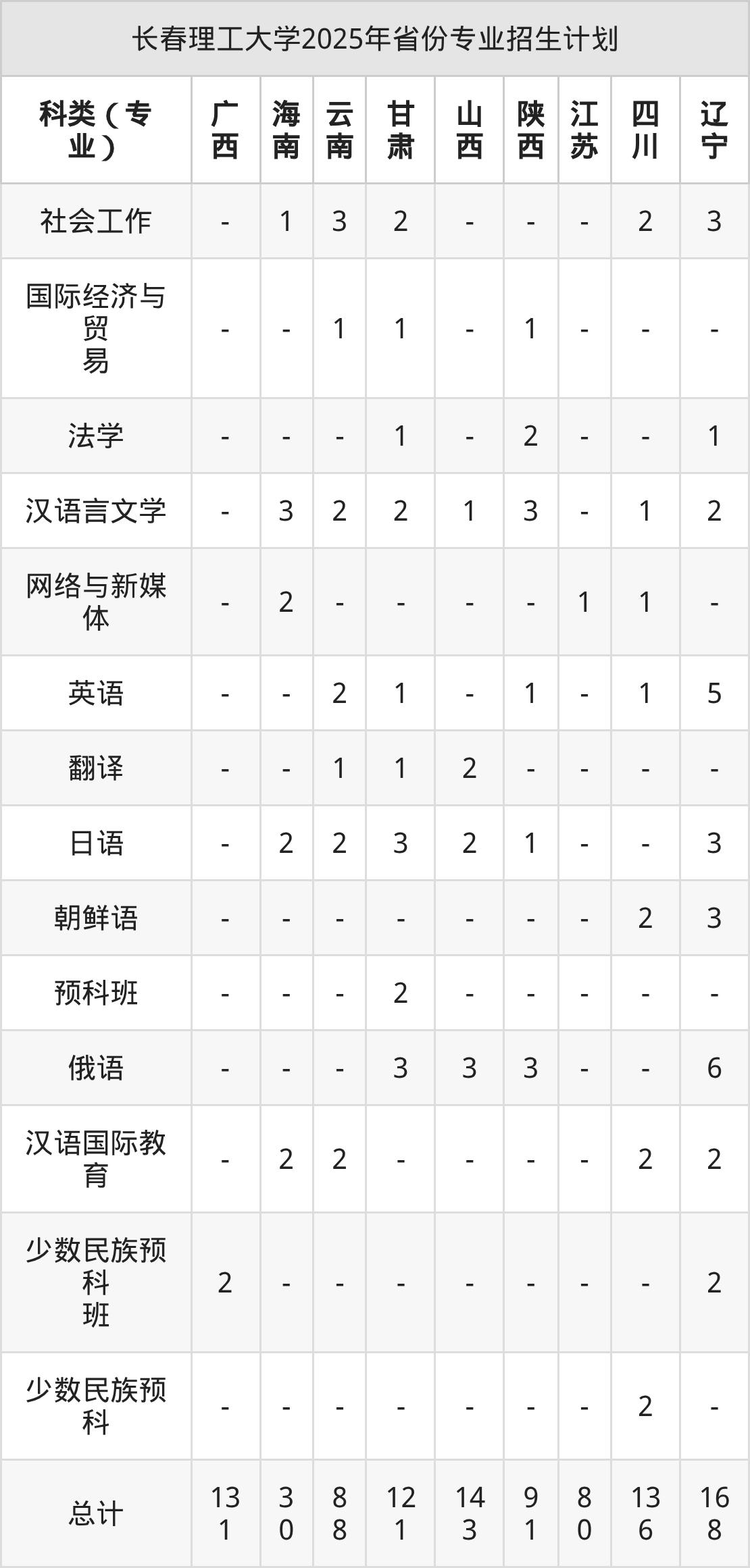 2026年长春理工大学本科招生计划待公布,下面附上2025年数据,暂供参考: