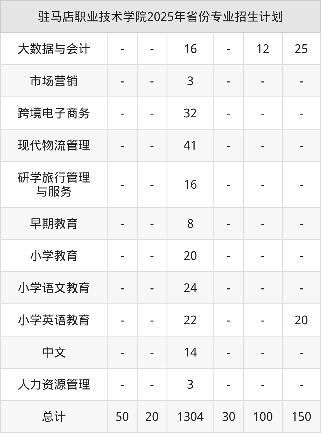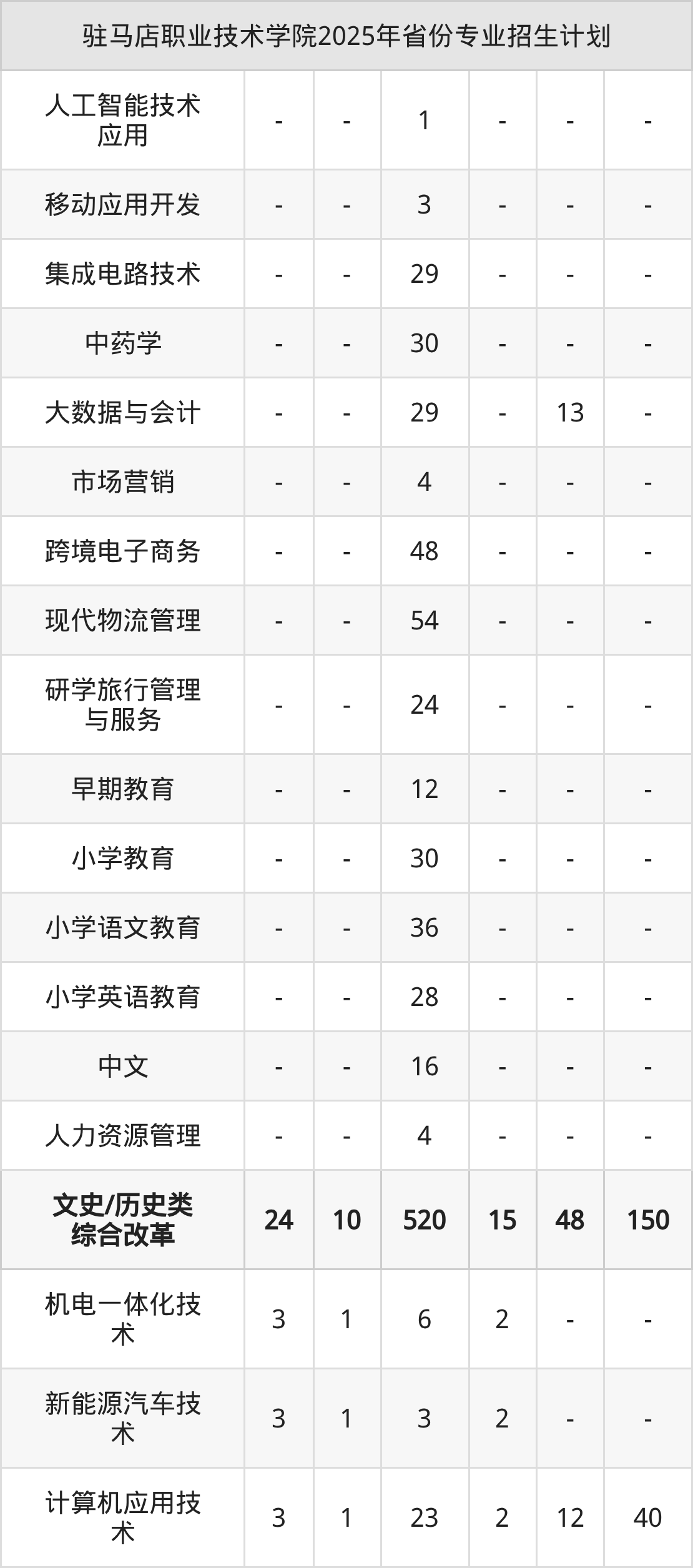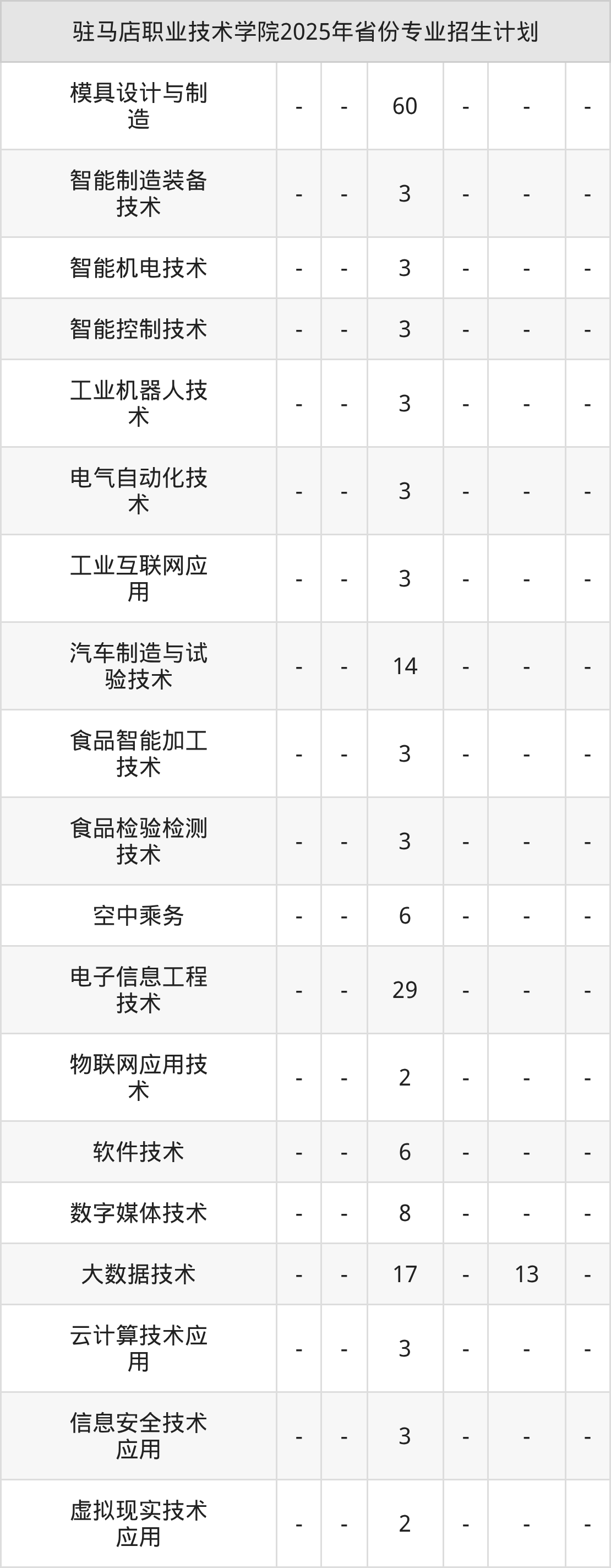 2026年驻马店职业技术学院专科招生计划待公布,下面附上2025年数据,暂供参考: