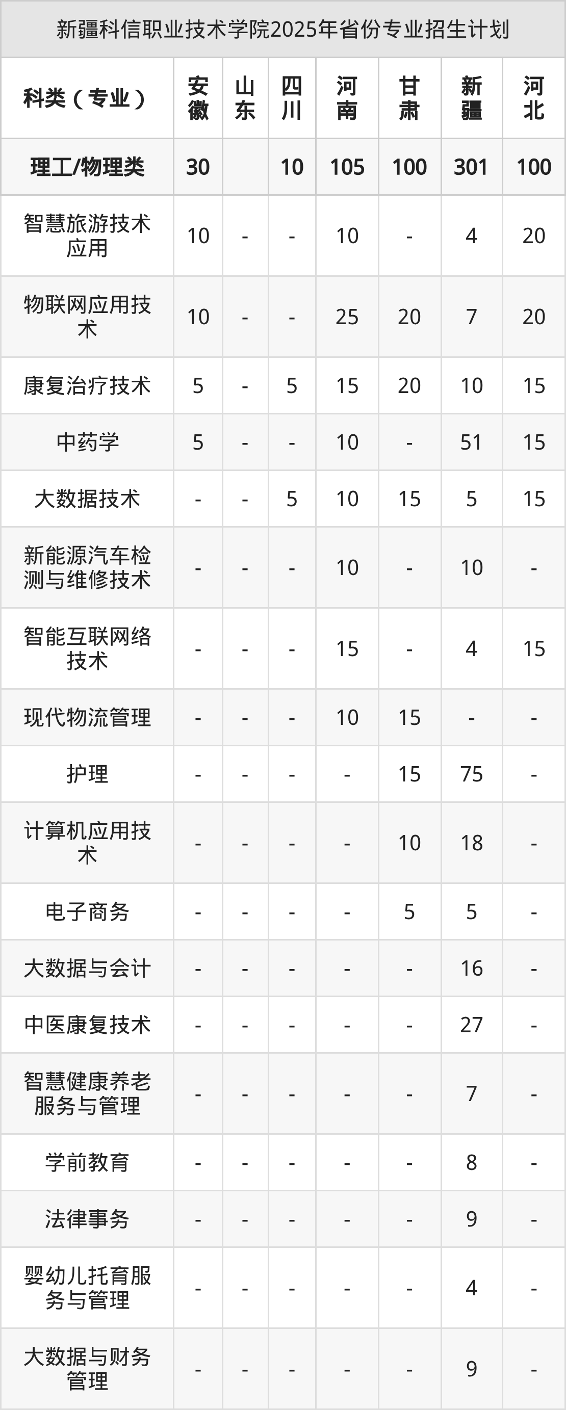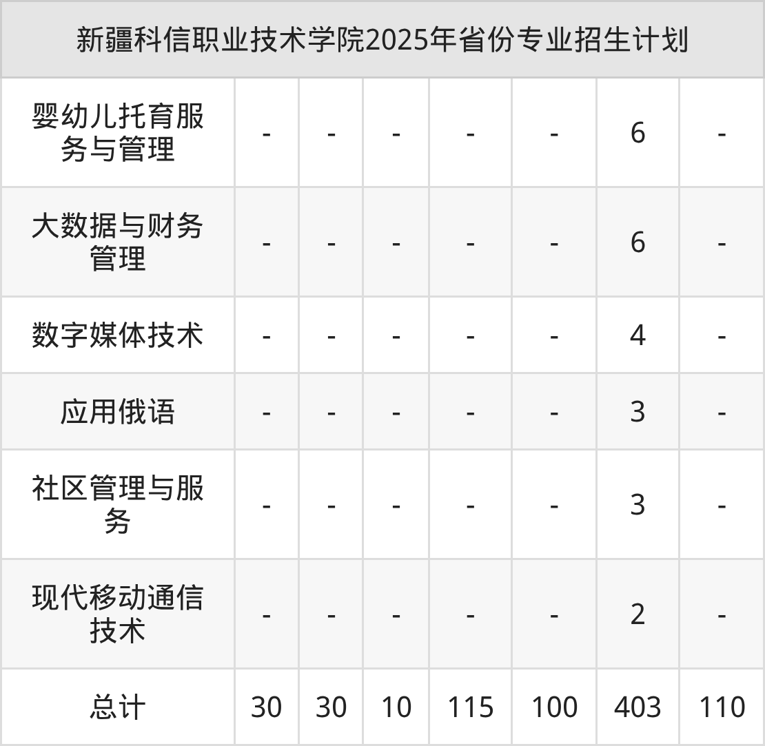 2026年新疆科信职业技术学院专科招生计划待公布,下面附上2025年数据,暂供参考: