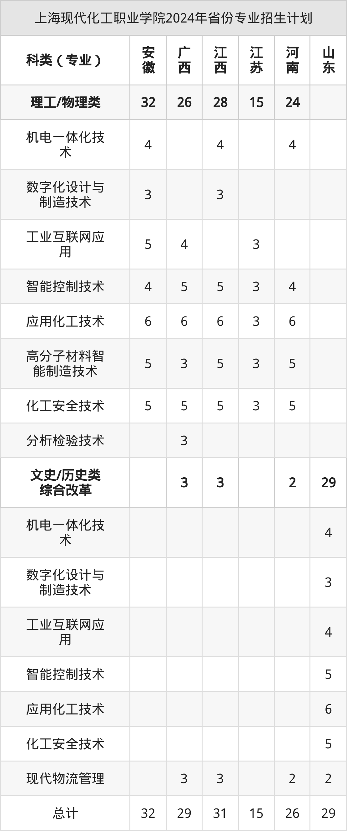 2025年上海现代化工职业学院专科招生计划待公布,下面附上2024年数据,暂供参考: