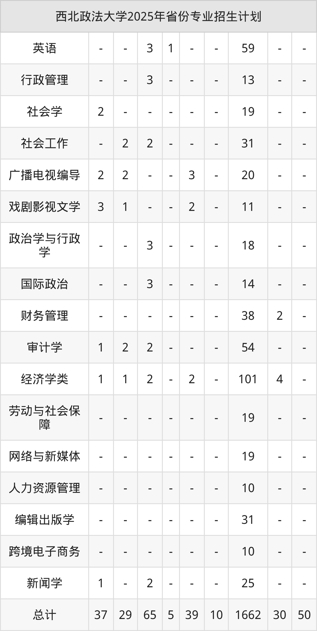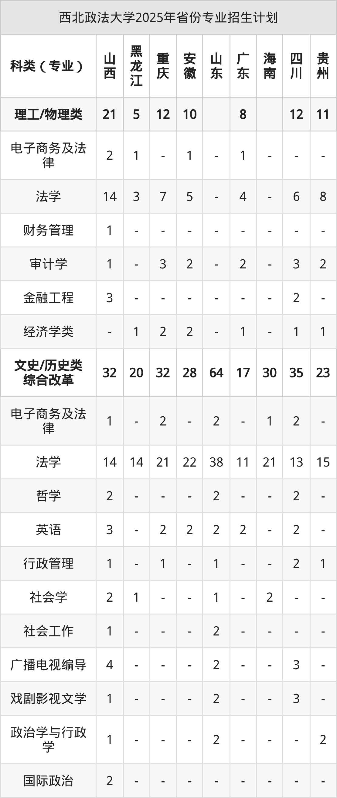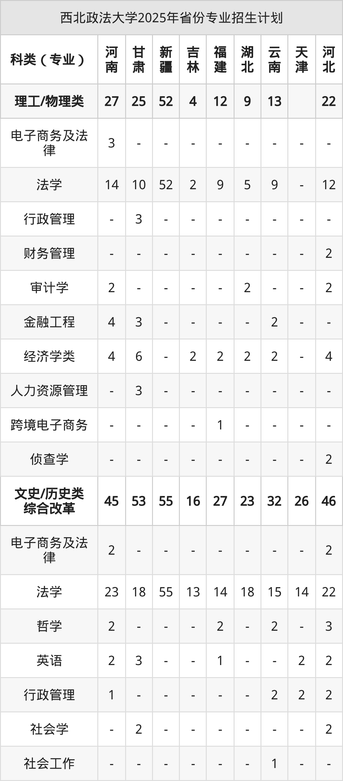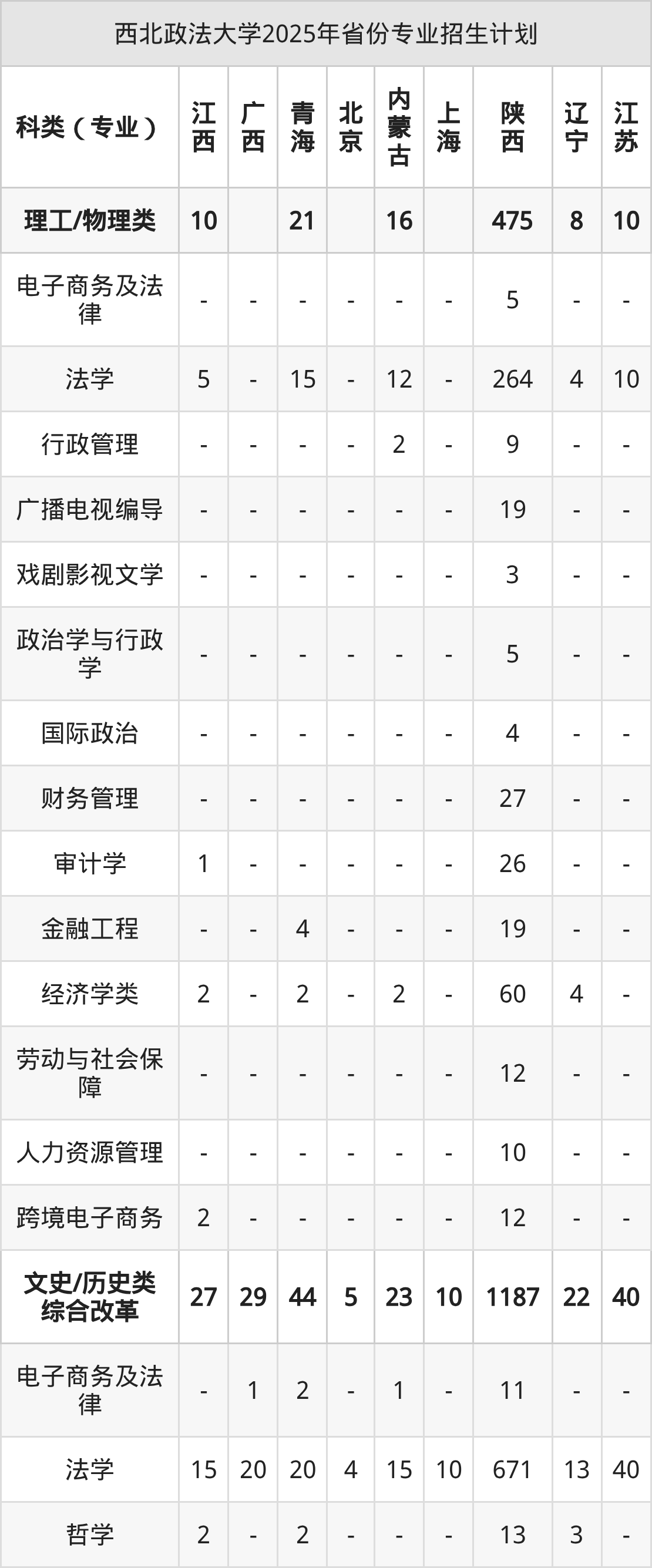 2026年西北政法大学本科招生计划待公布,下面附上2025年数据,暂供参考: