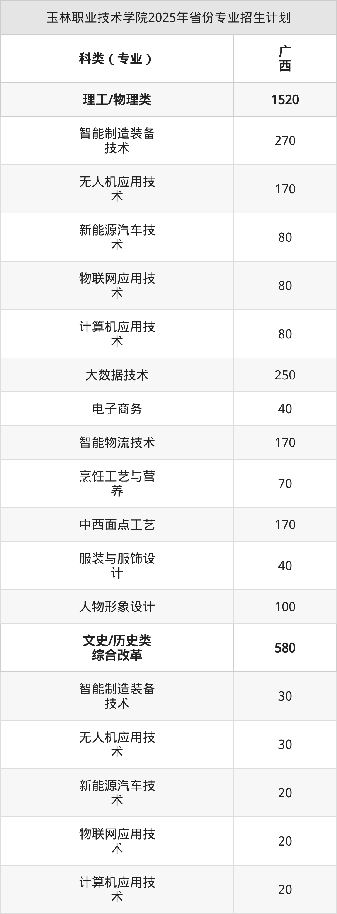 2026年玉林职业技术学院专科招生计划待公布,下面附上2025年数据,暂供参考: