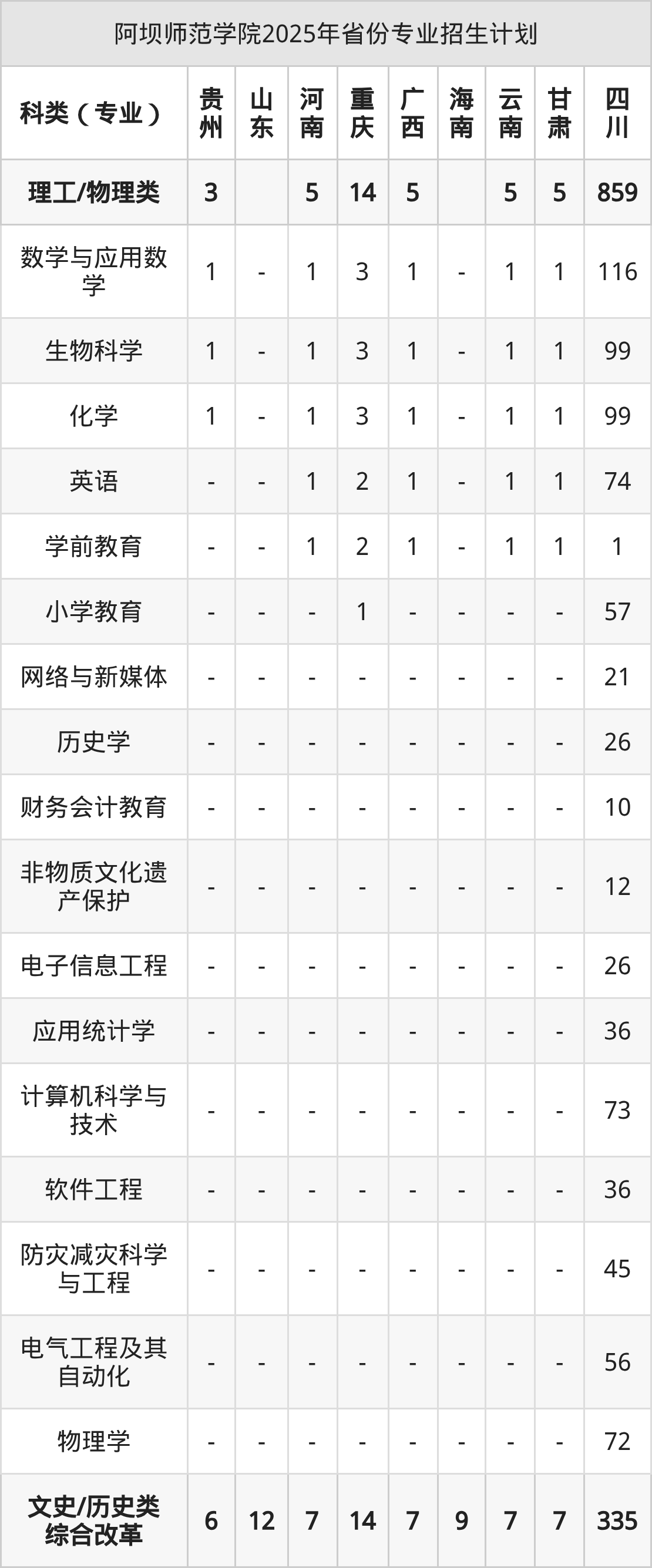 2026年阿坝师范学院本科招生计划待公布,下面附上2025年数据,暂供参考: