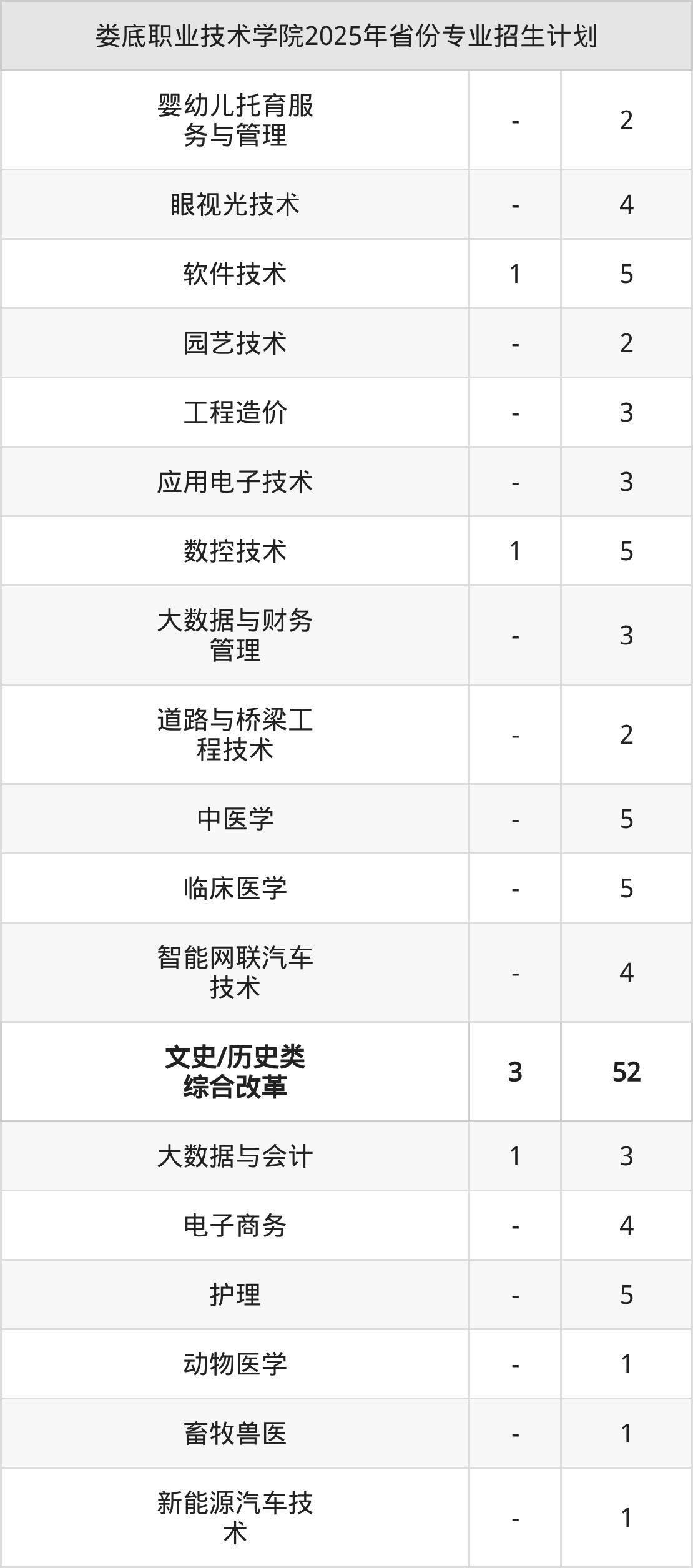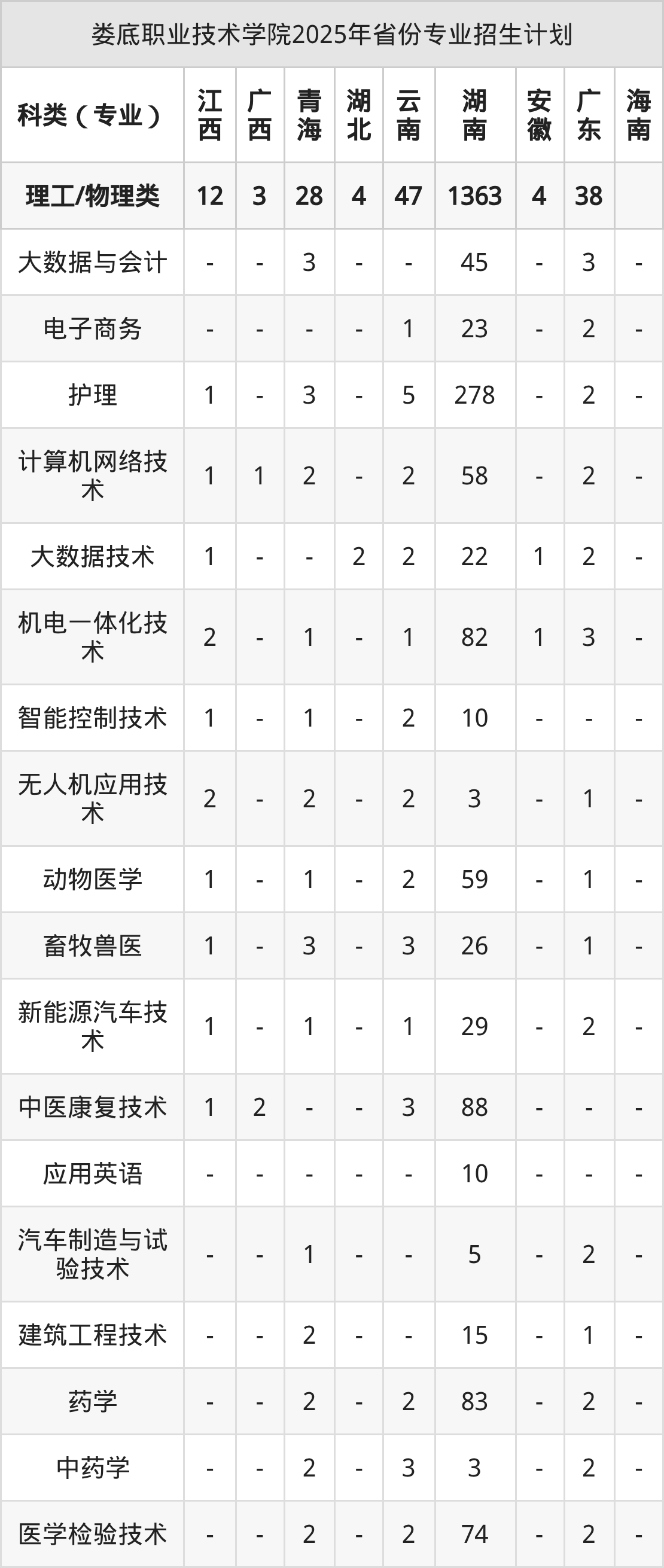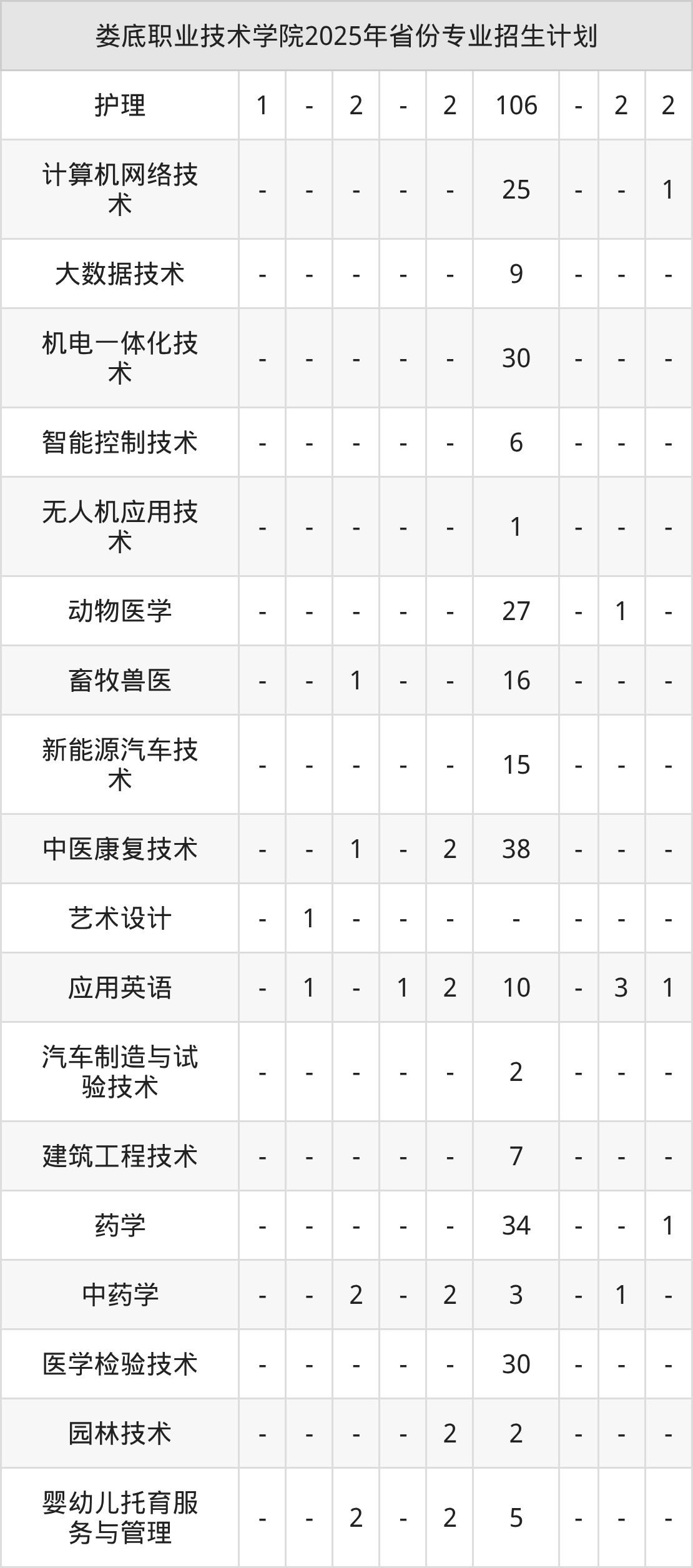 2026年娄底职业技术学院专科招生计划待公布,下面附上2025年数据,暂供参考: