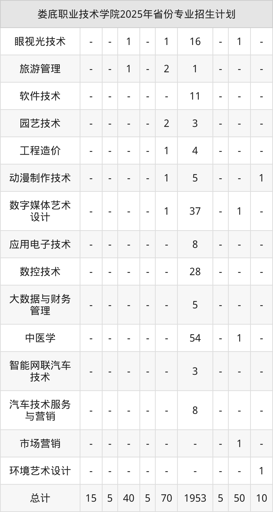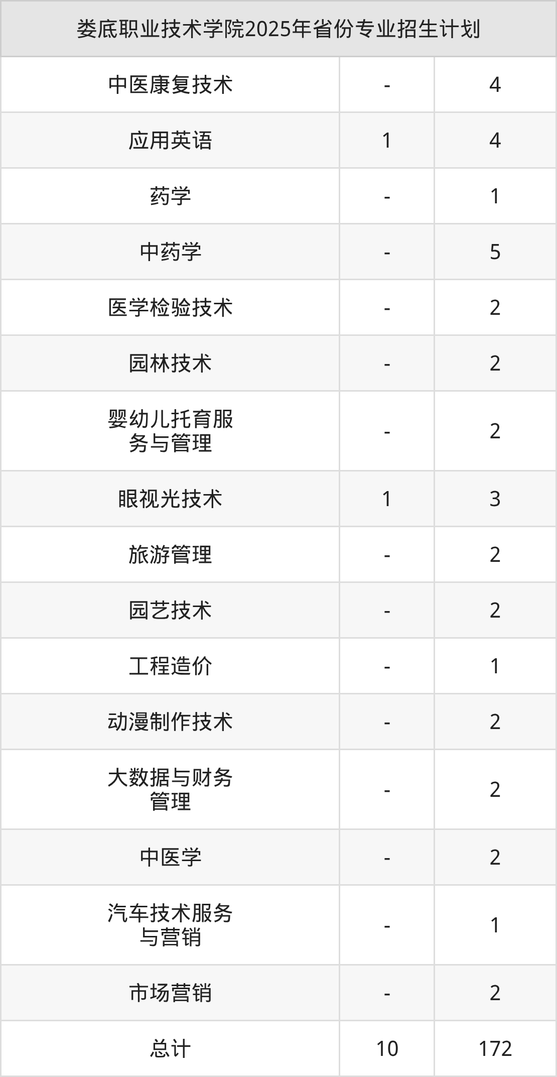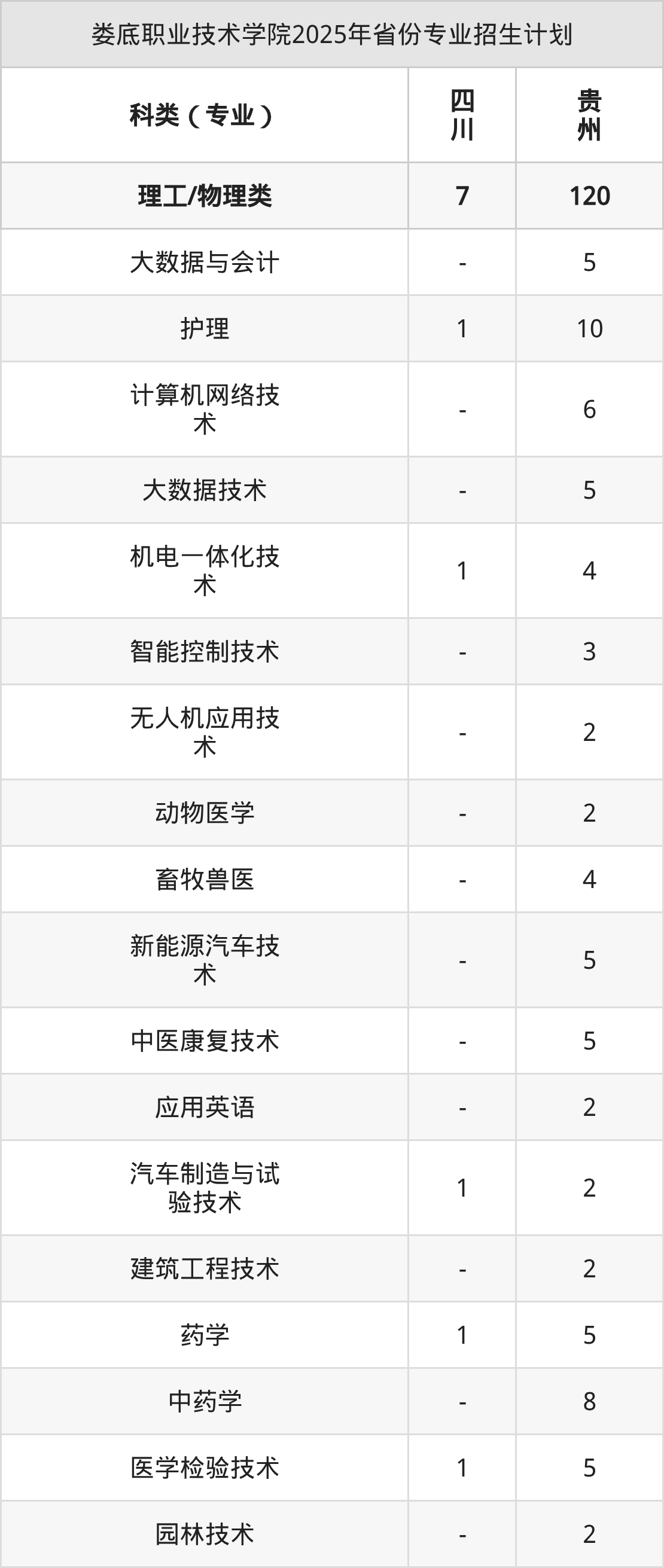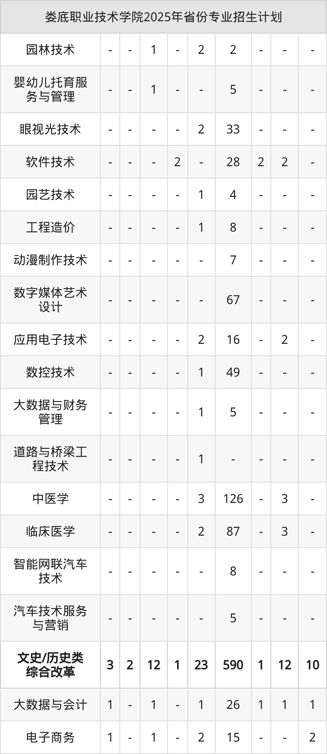 2026年娄底职业技术学院专科招生计划待公布,下面附上2025年数据,暂供参考: