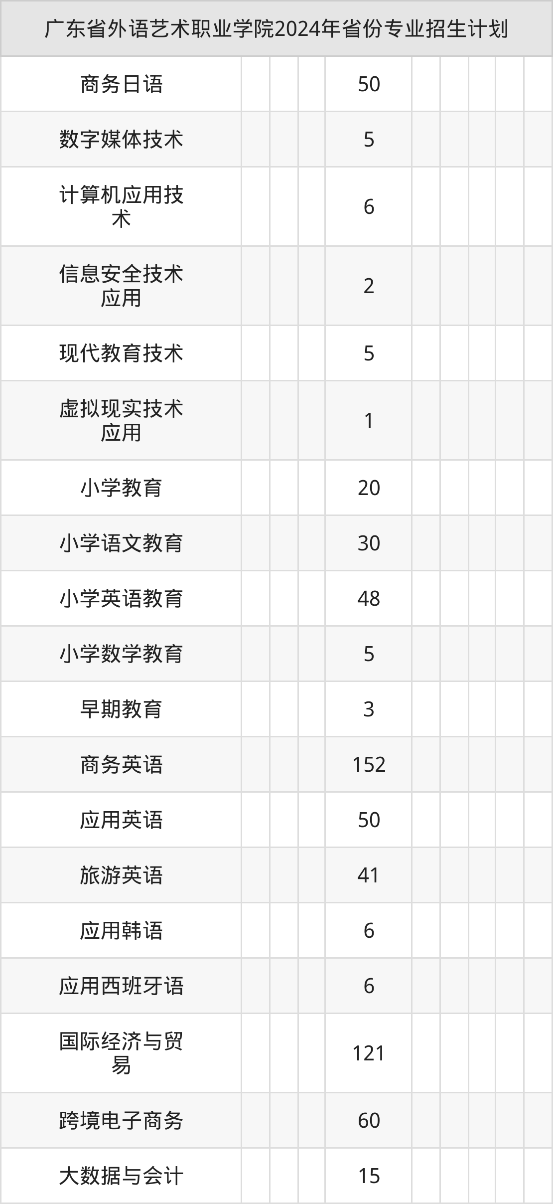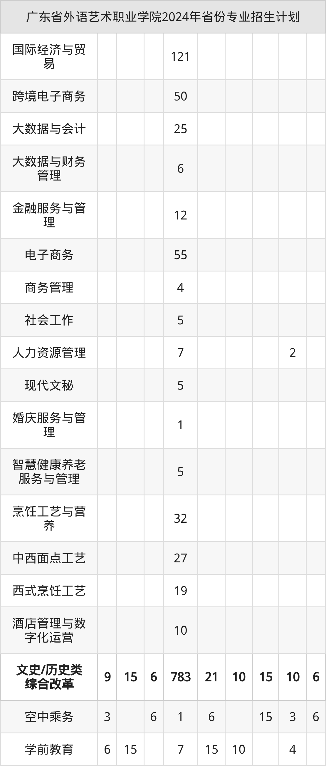 二、广东省外语艺术职业学院2025年招生计划