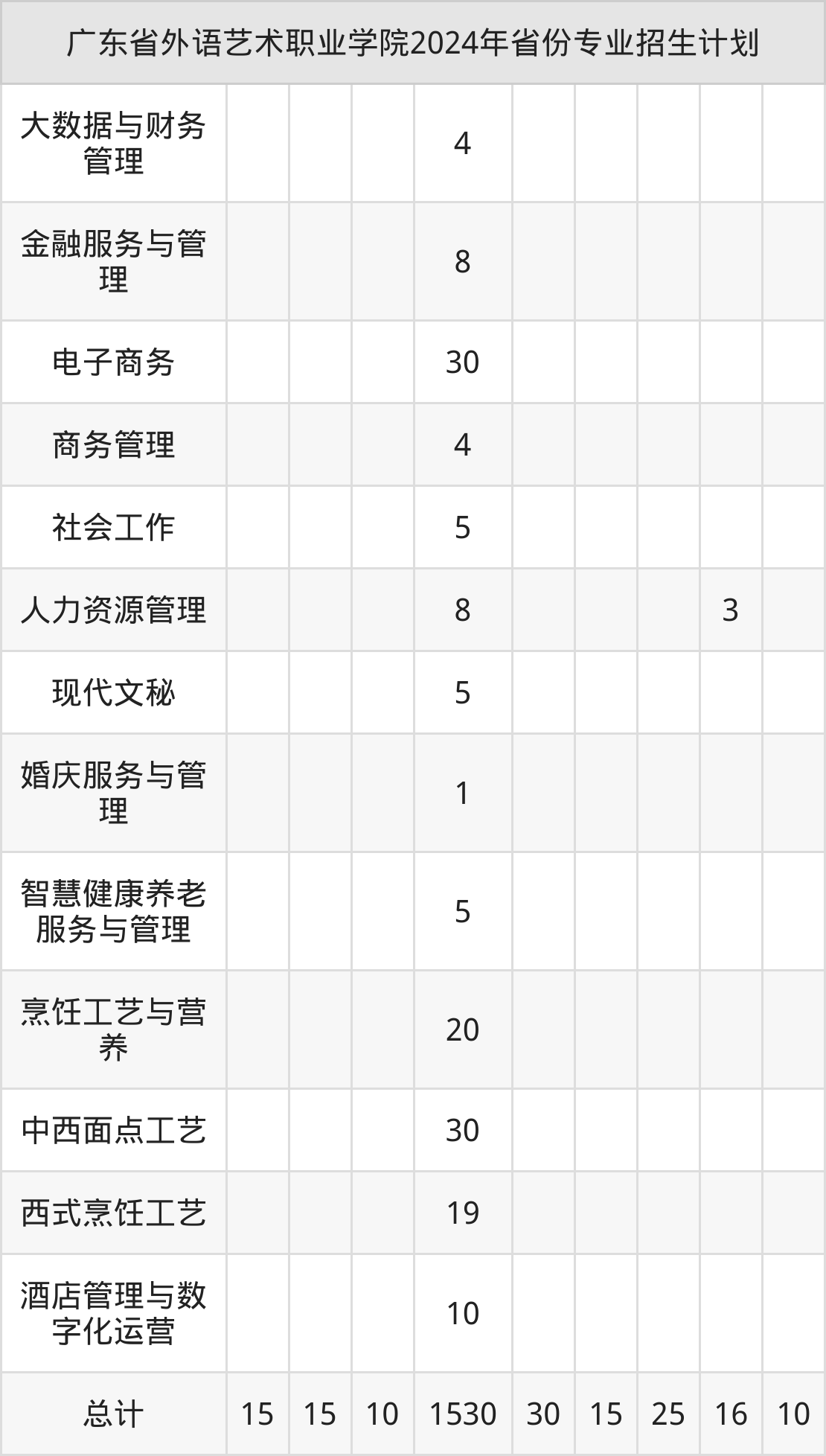 而各省份的招生计划数为湖南15人,海南15人,湖北10人,广东1530人,广西15人等。