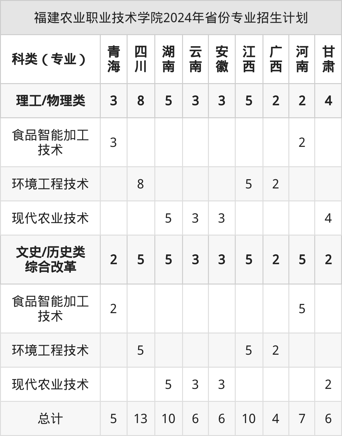 2025年福建农业职业技术学院专科招生计划待公布,下面附上2024年数据,暂供参考:
