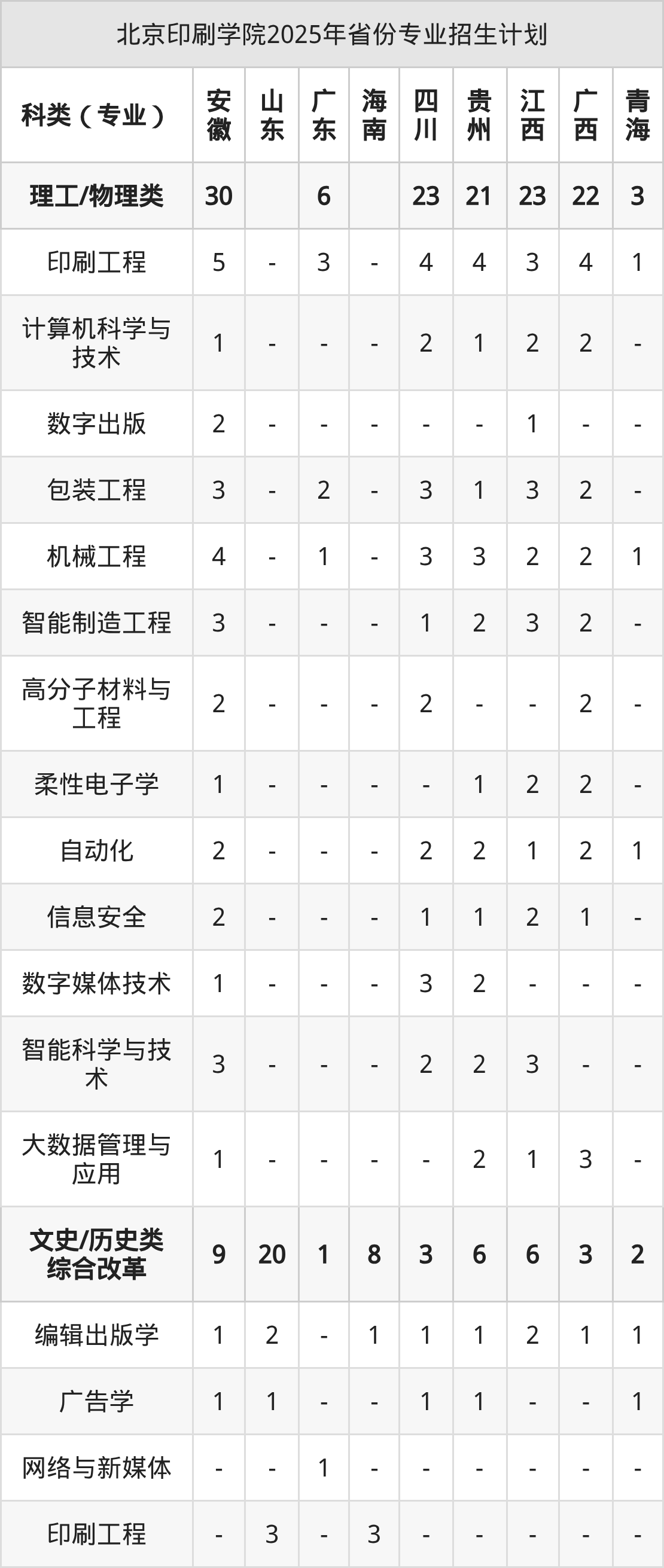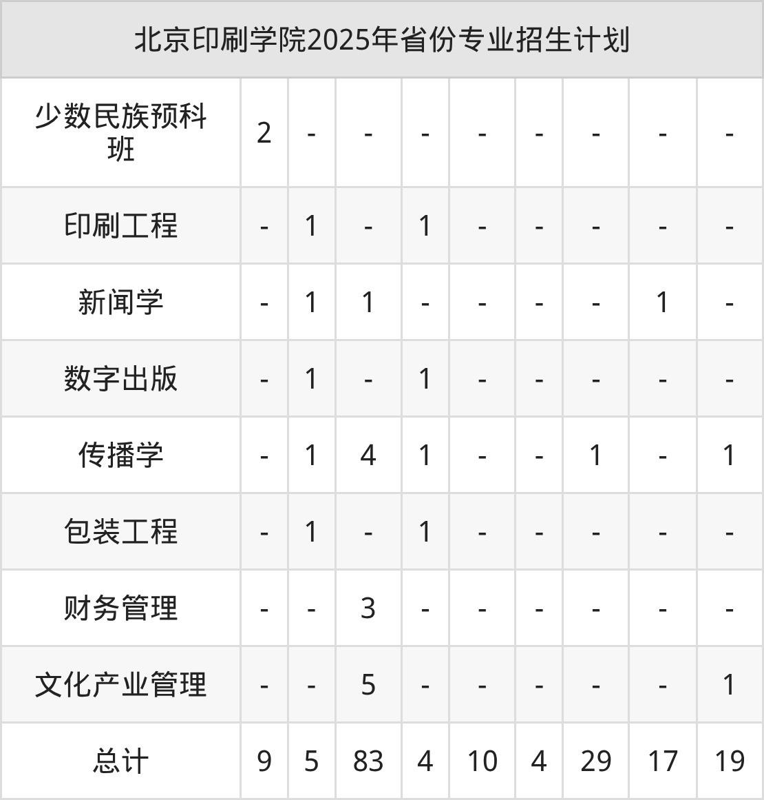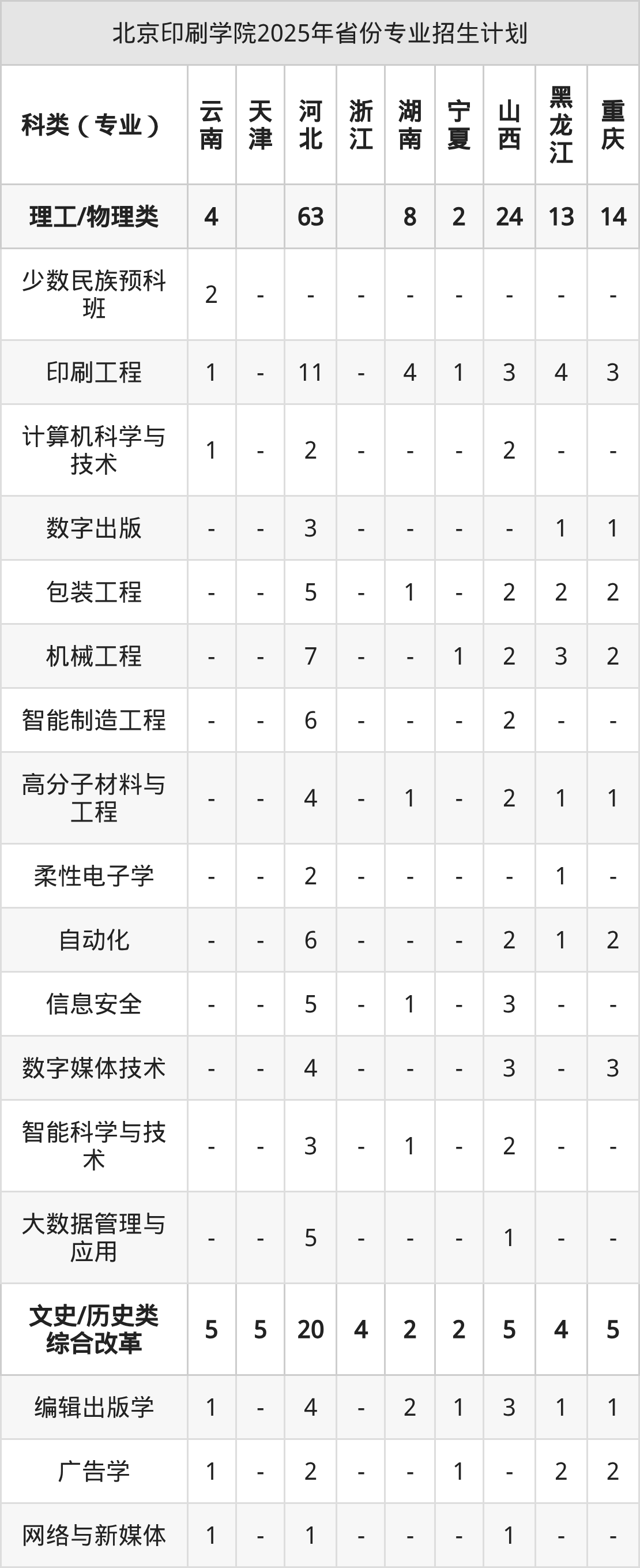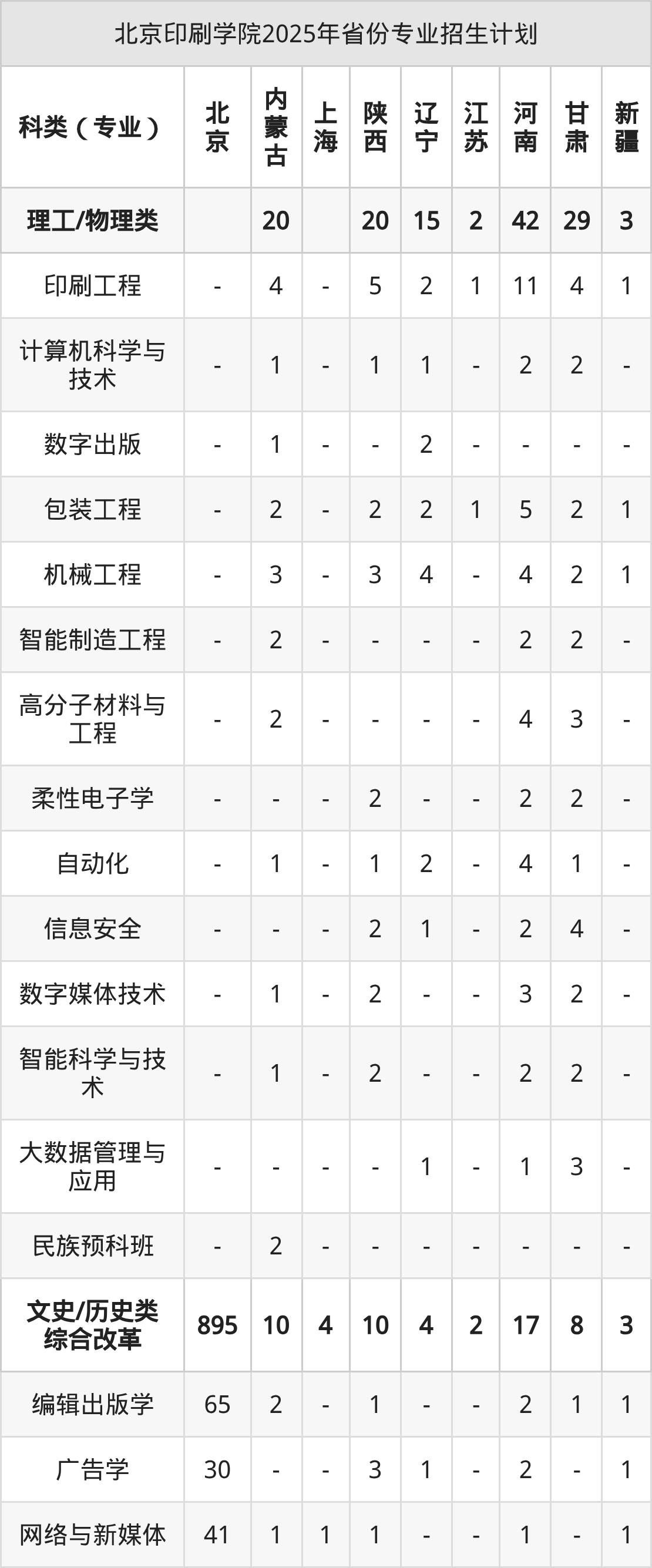 2026年北京印刷学院本科招生计划待公布,下面附上2025年数据,暂供参考: