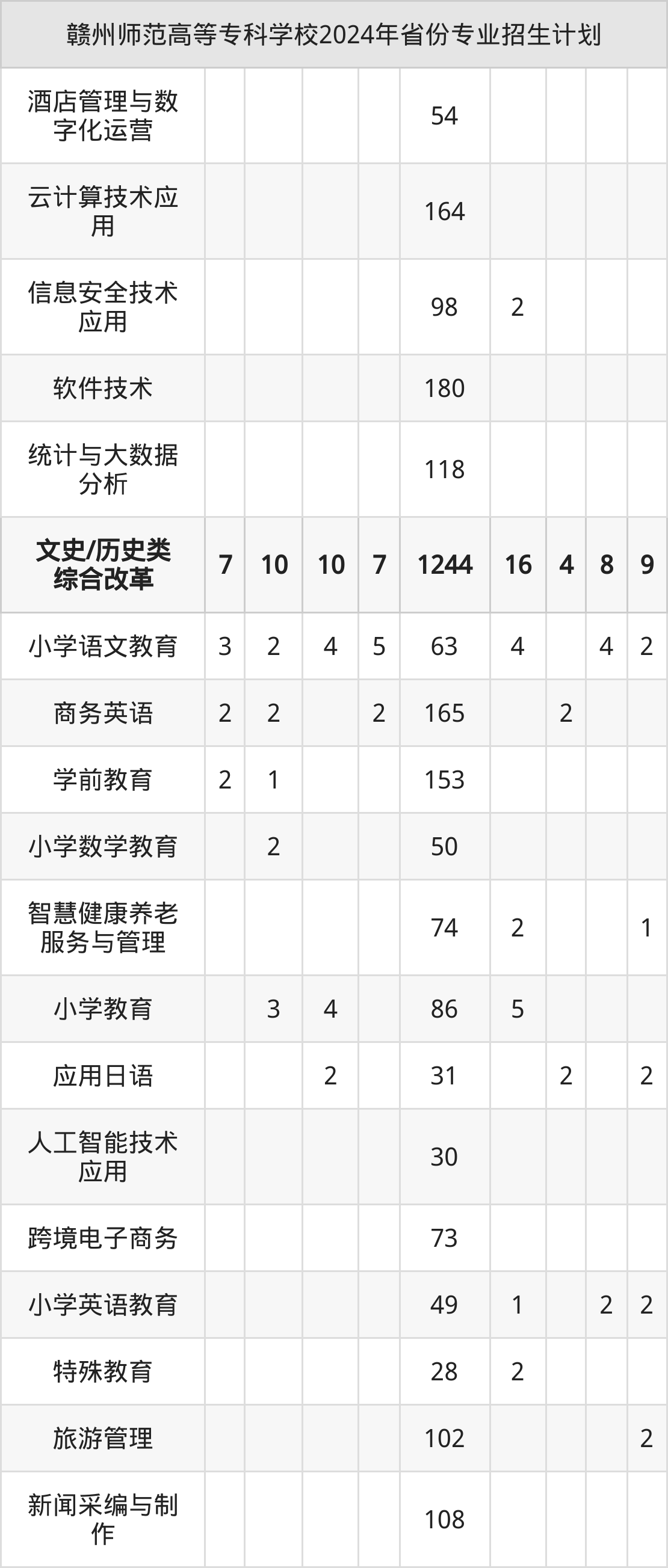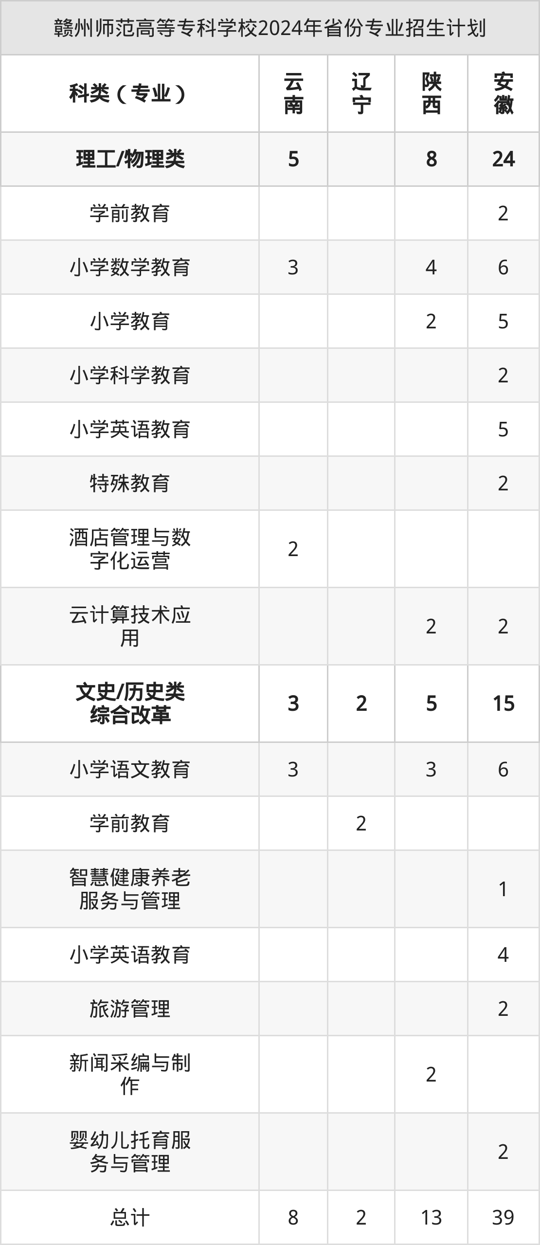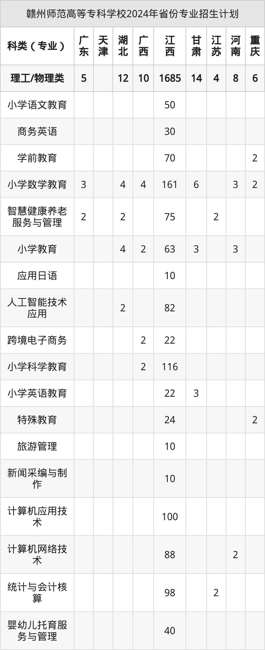 2025年赣州师范高等专科学校专科招生计划待公布,下面附上2024年数据,暂供参考:
