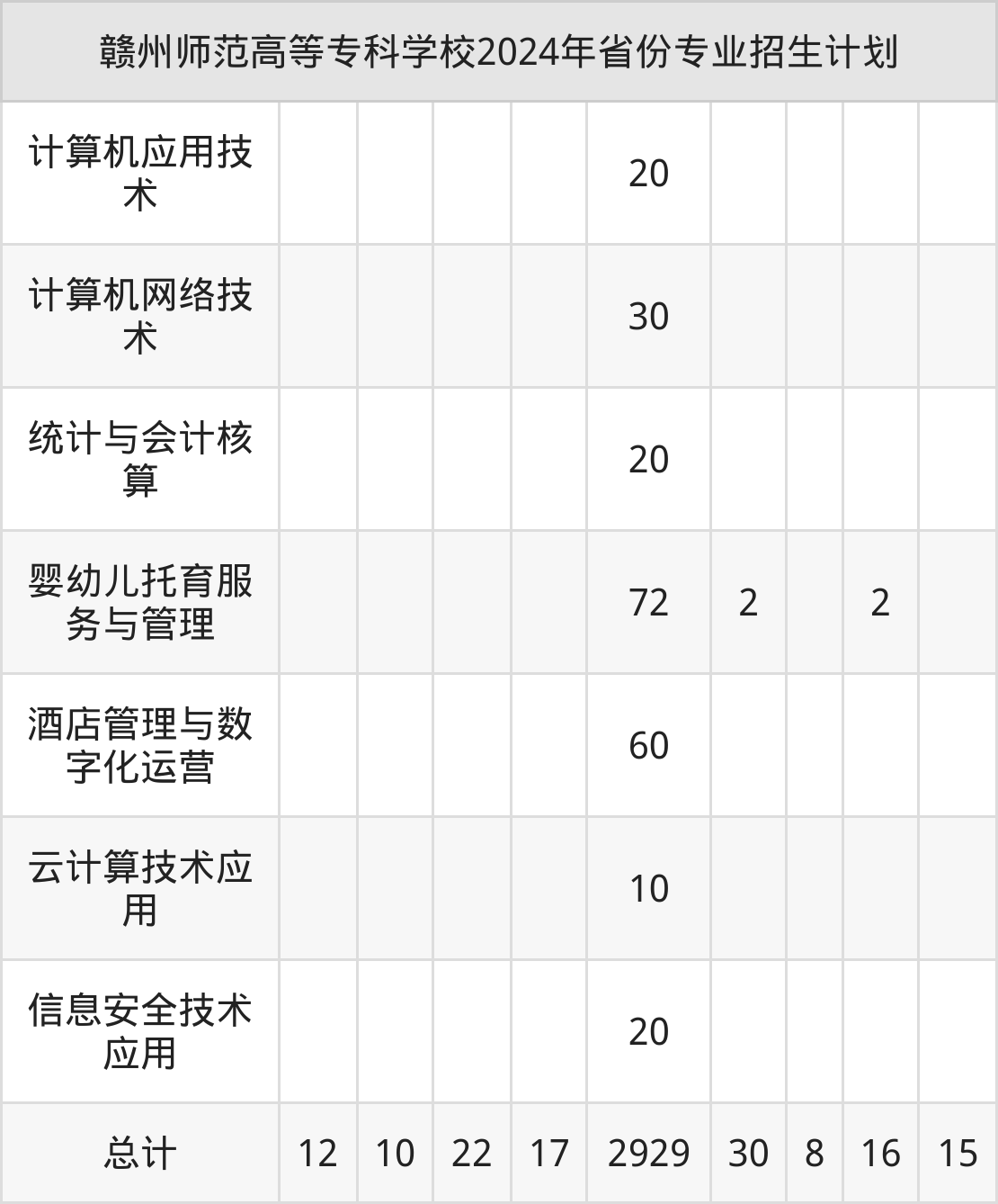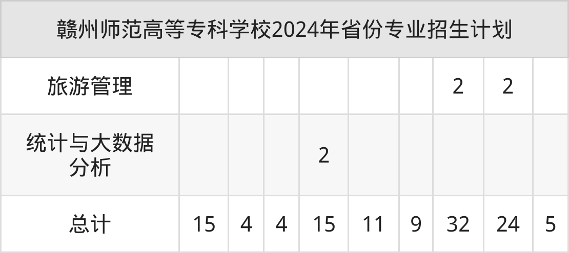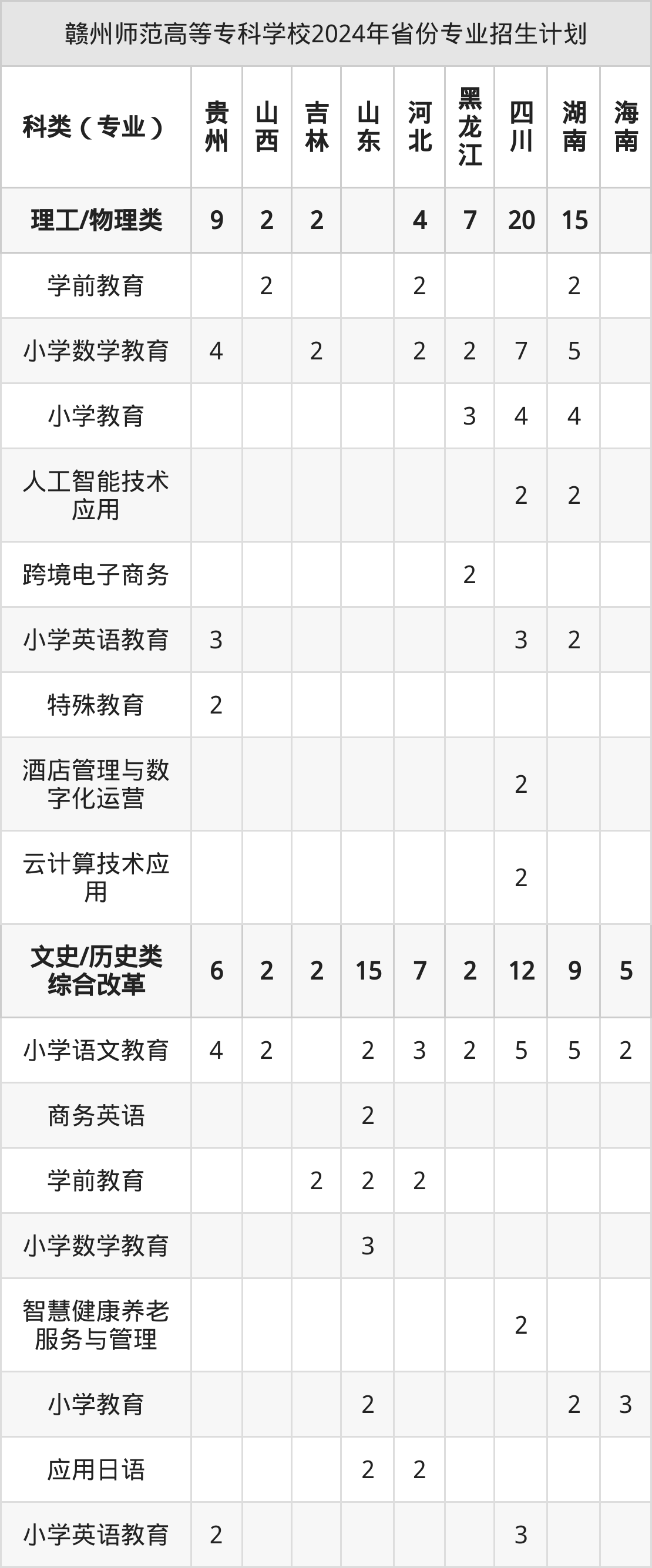 2025年赣州师范高等专科学校专科招生计划待公布,下面附上2024年数据,暂供参考: