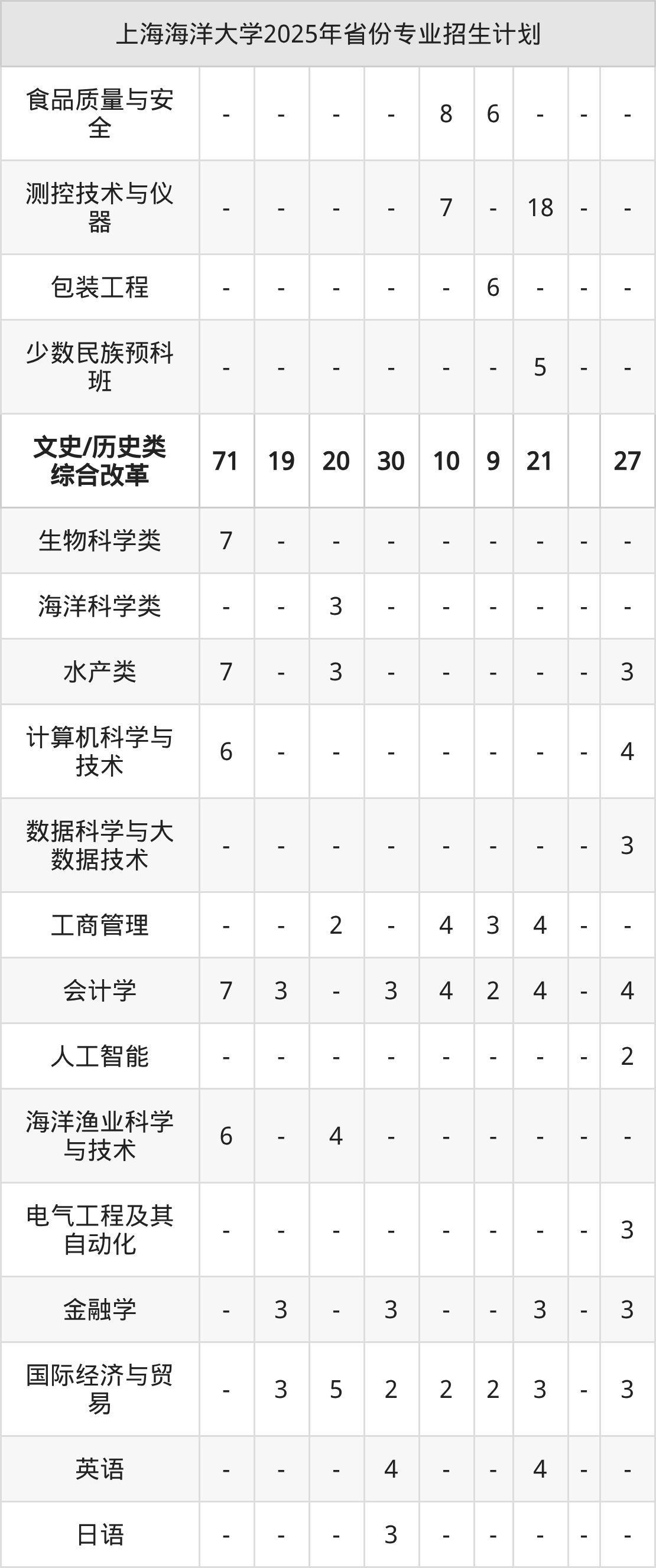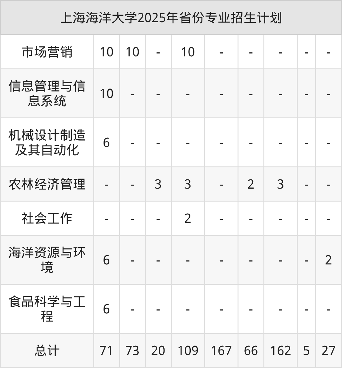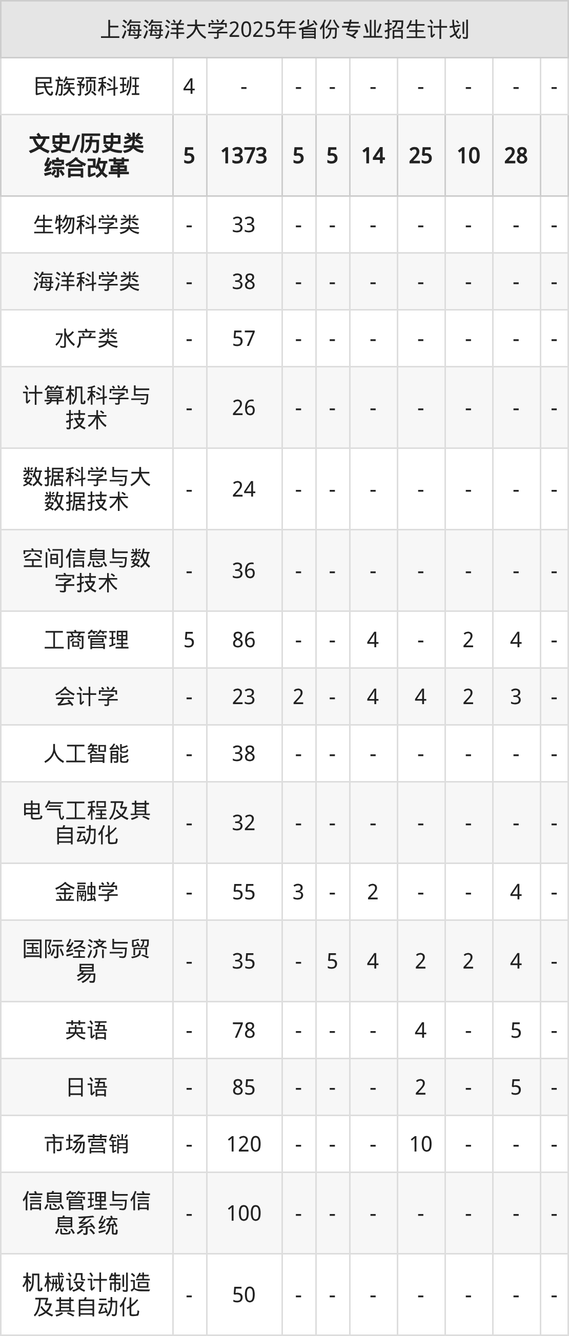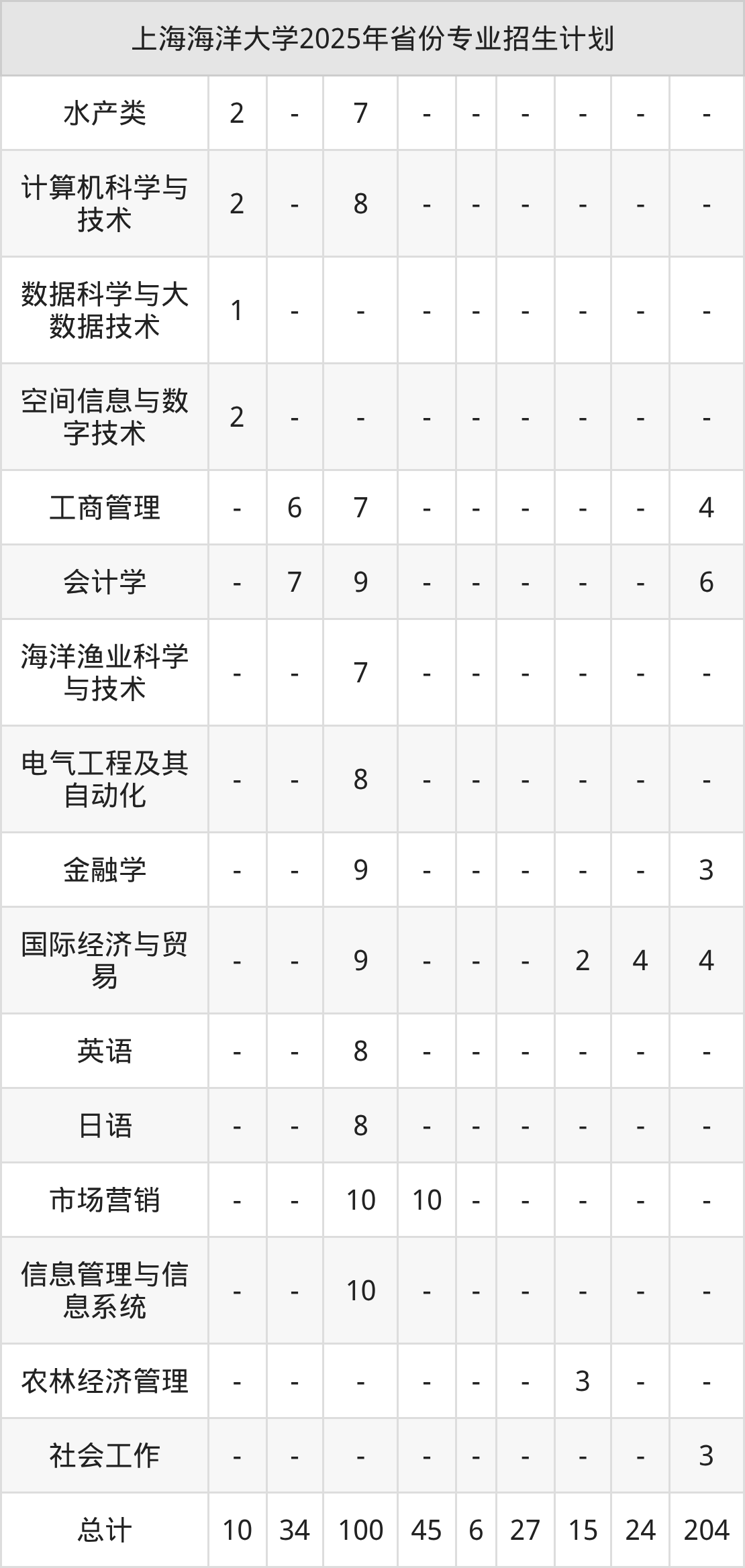 2026年上海海洋大学本科招生计划待公布,下面附上2025年数据,暂供参考: