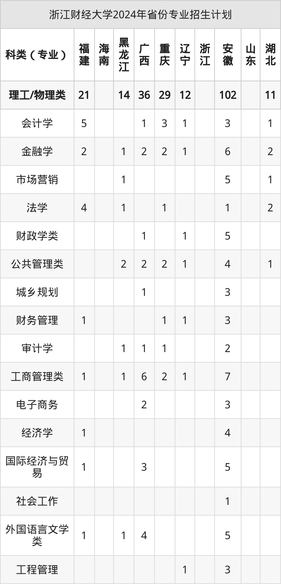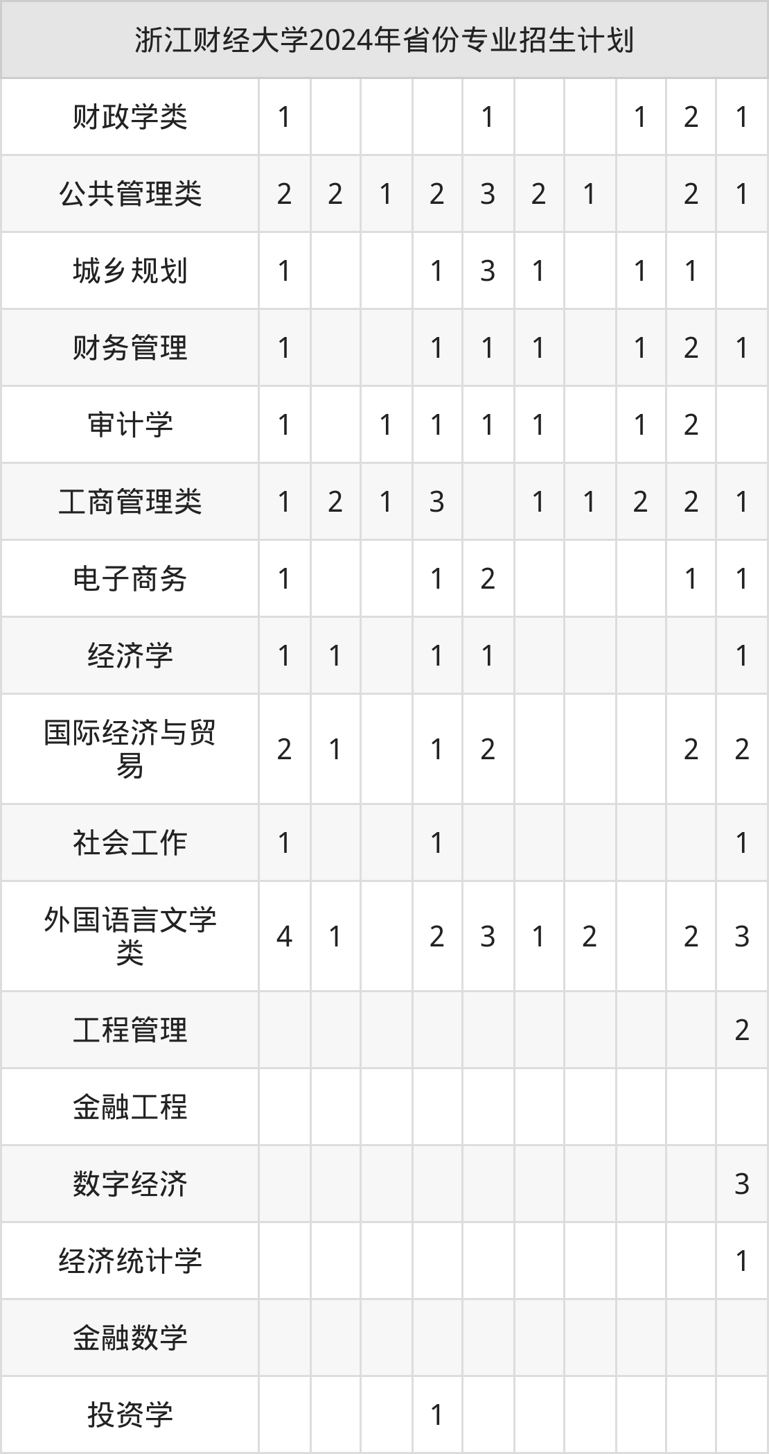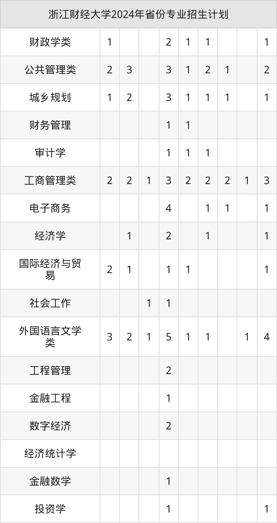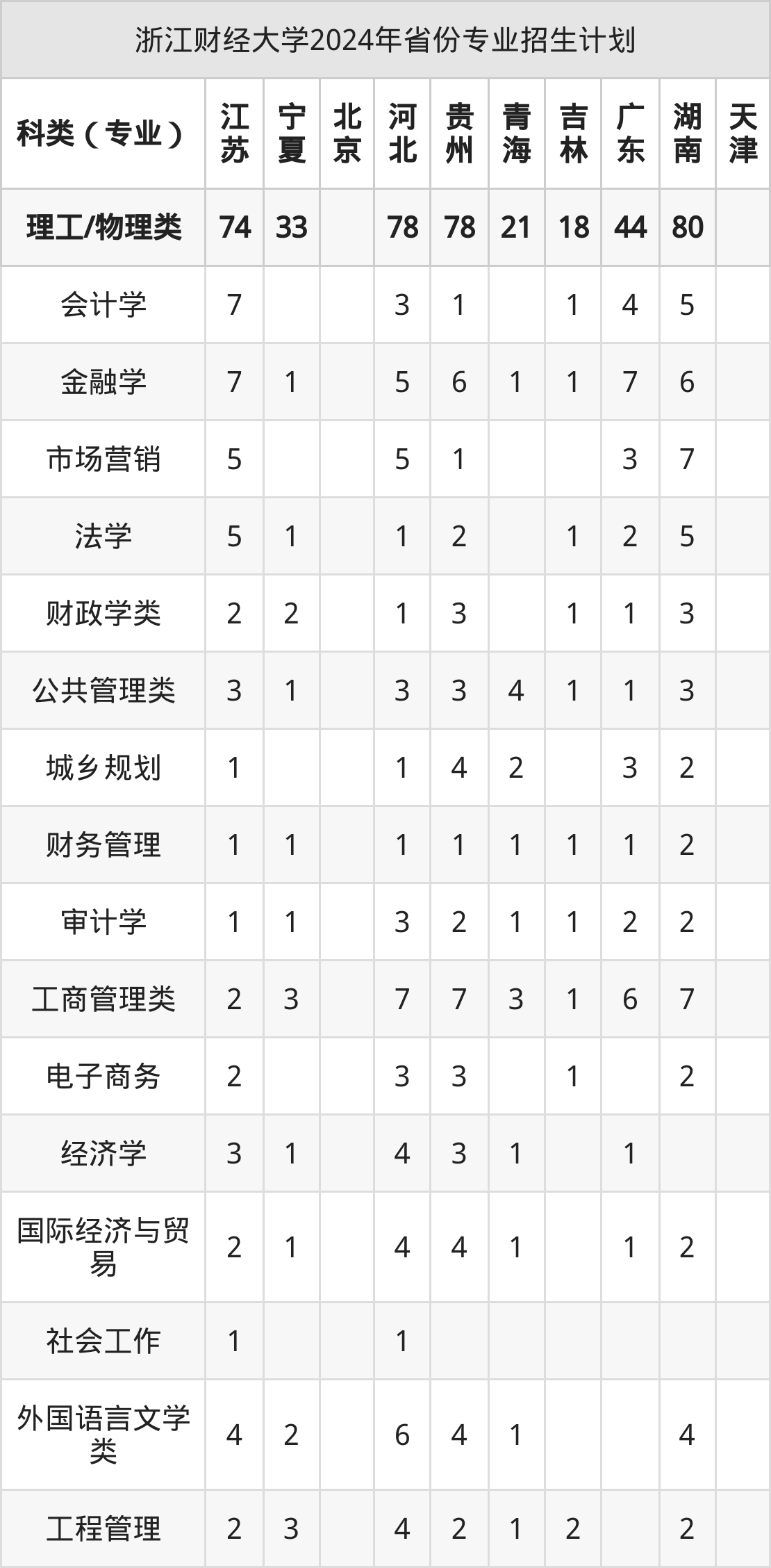 二、浙江财经大学2025年招生计划