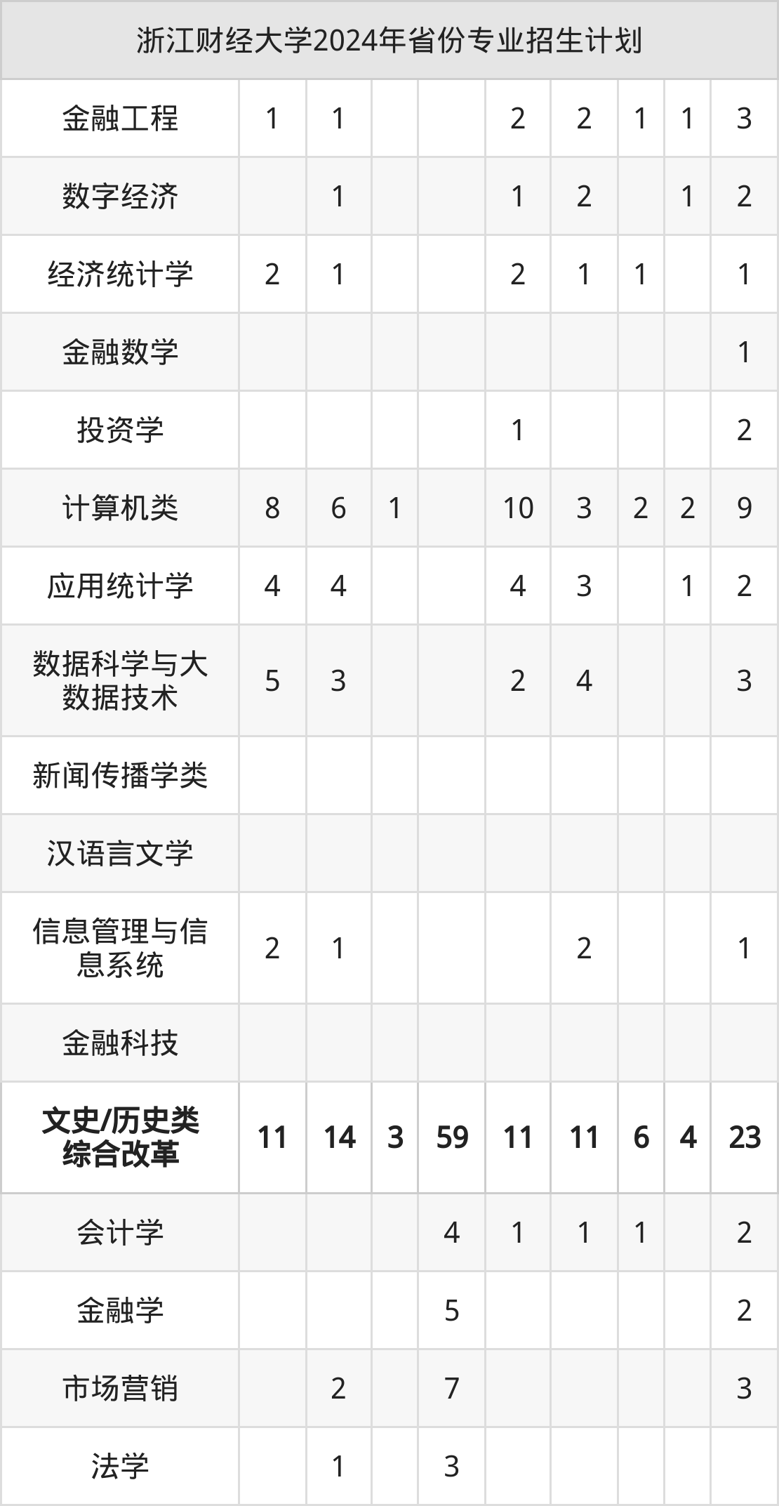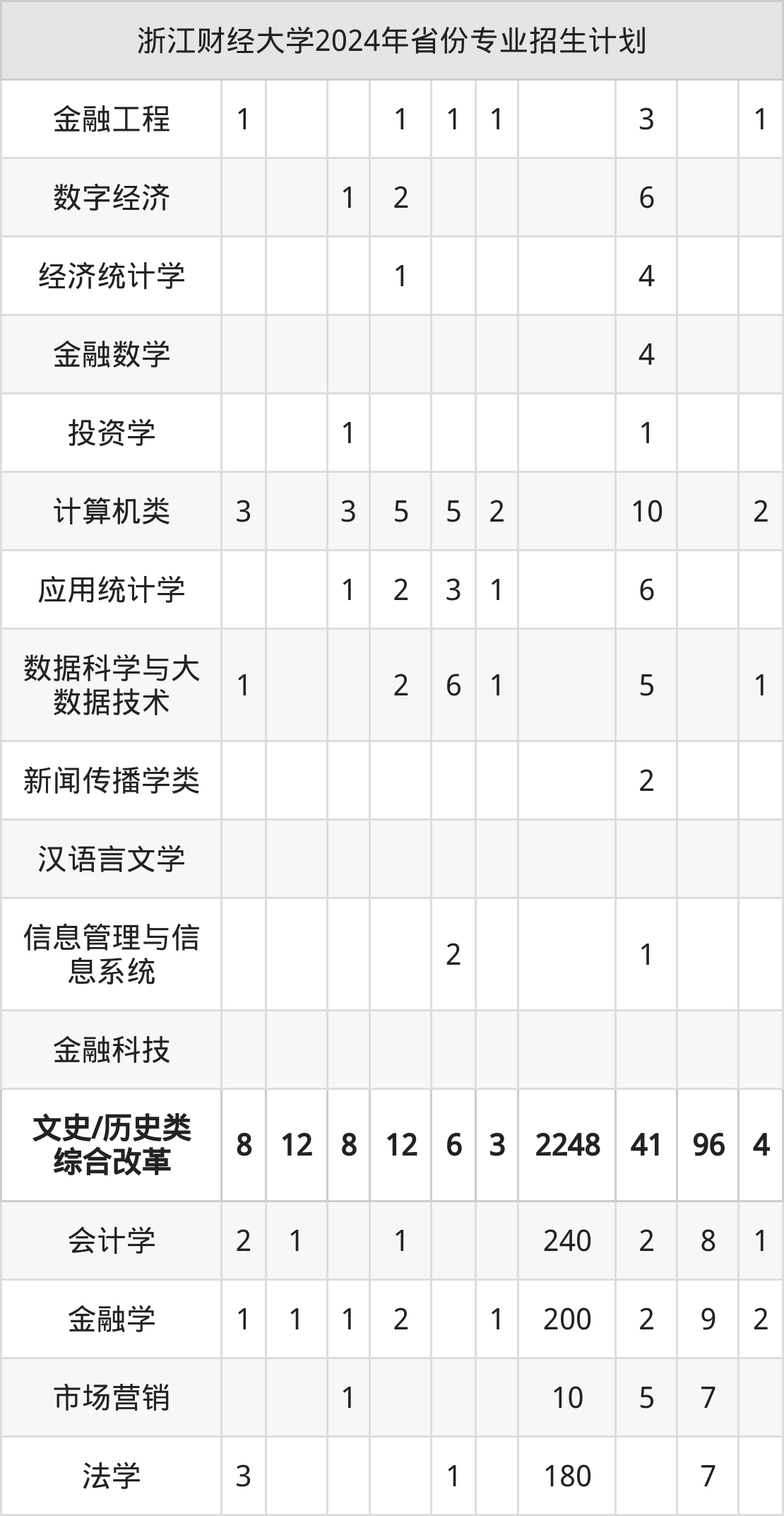 2025年浙江财经大学本科招生计划待公布,下面附上2024年数据,暂供参考: