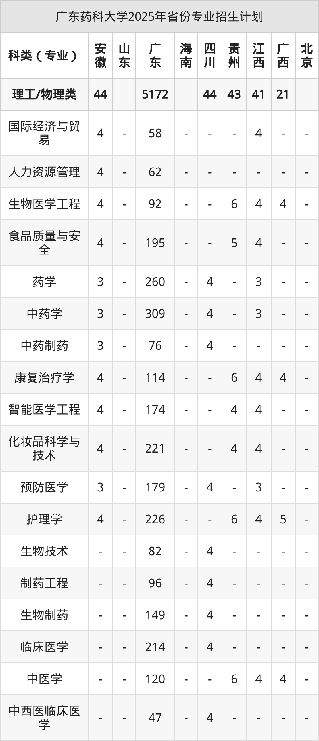 2026年广东药科大学本科招生计划待公布,下面附上2025年数据,暂供参考: