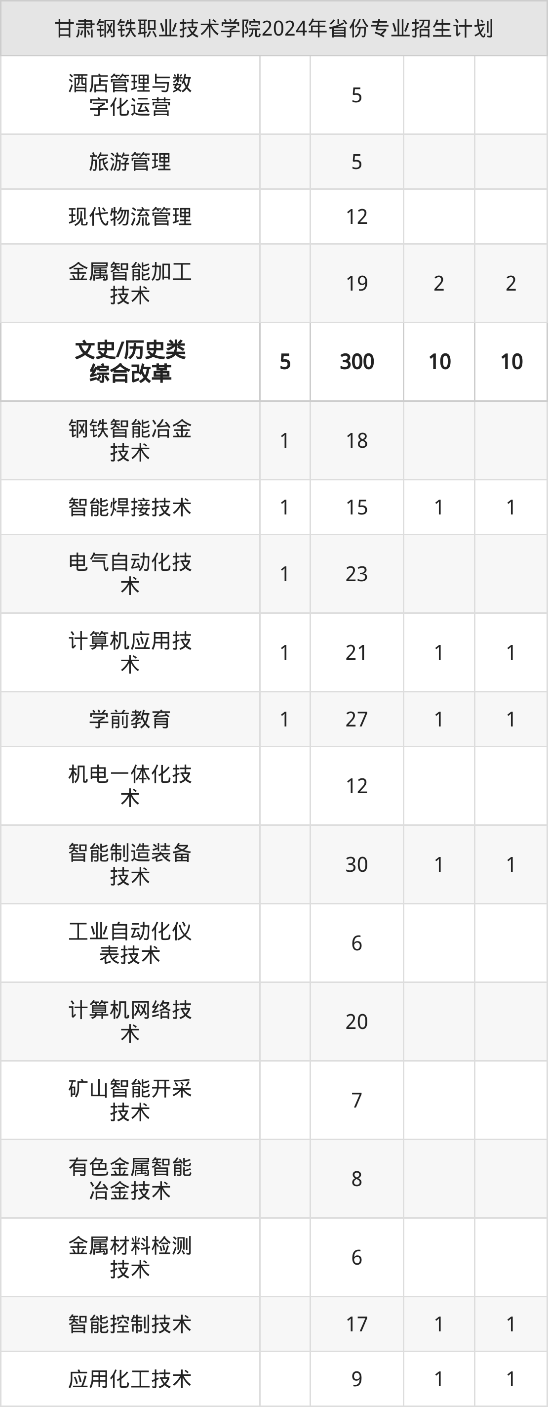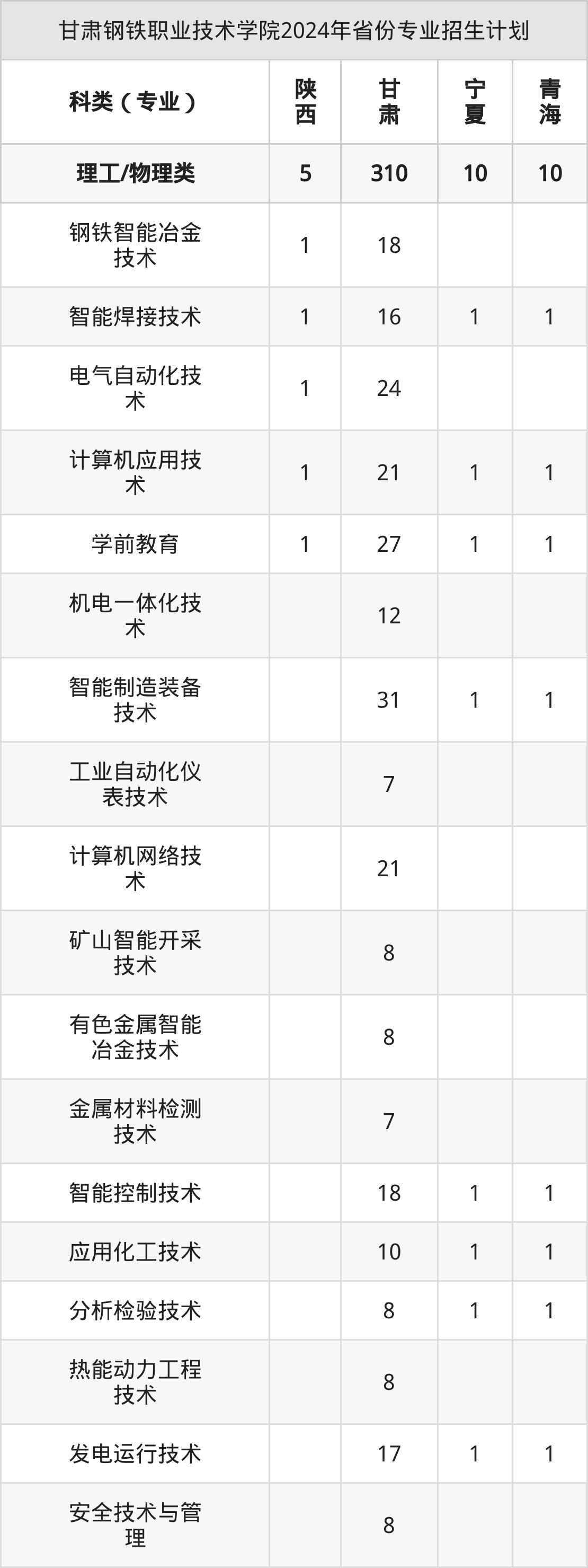 2025年甘肃钢铁职业技术学院专科招生计划待公布,下面附上2024年数据,暂供参考: