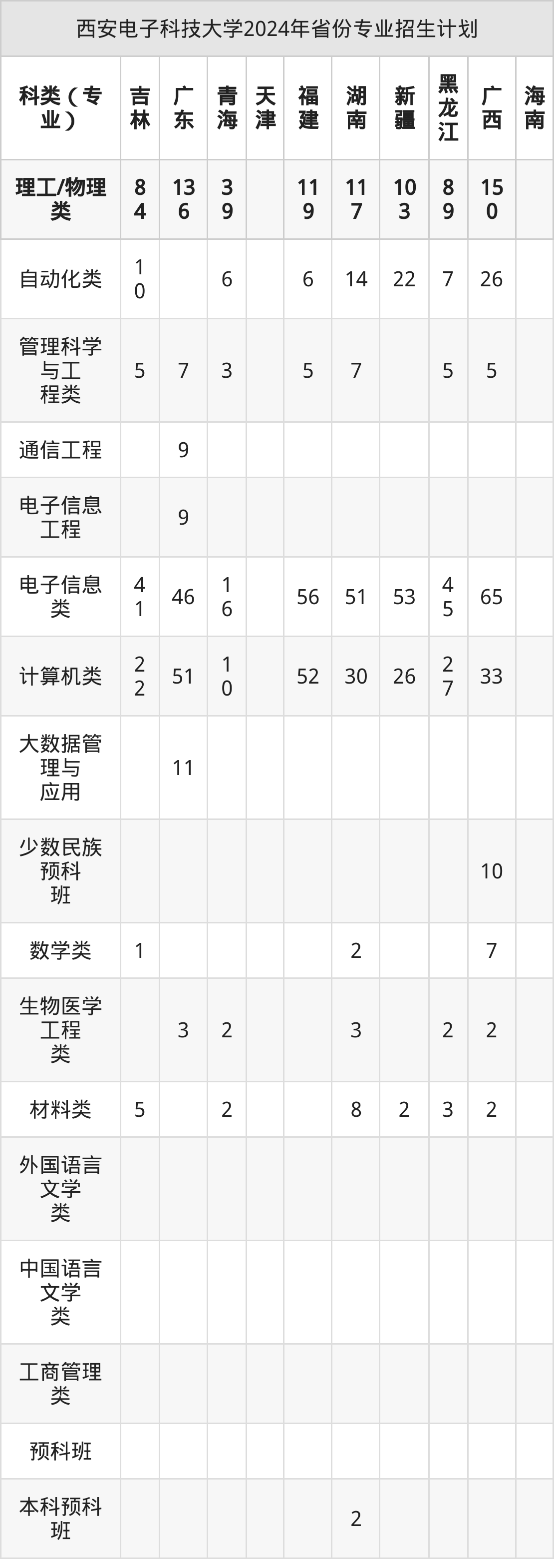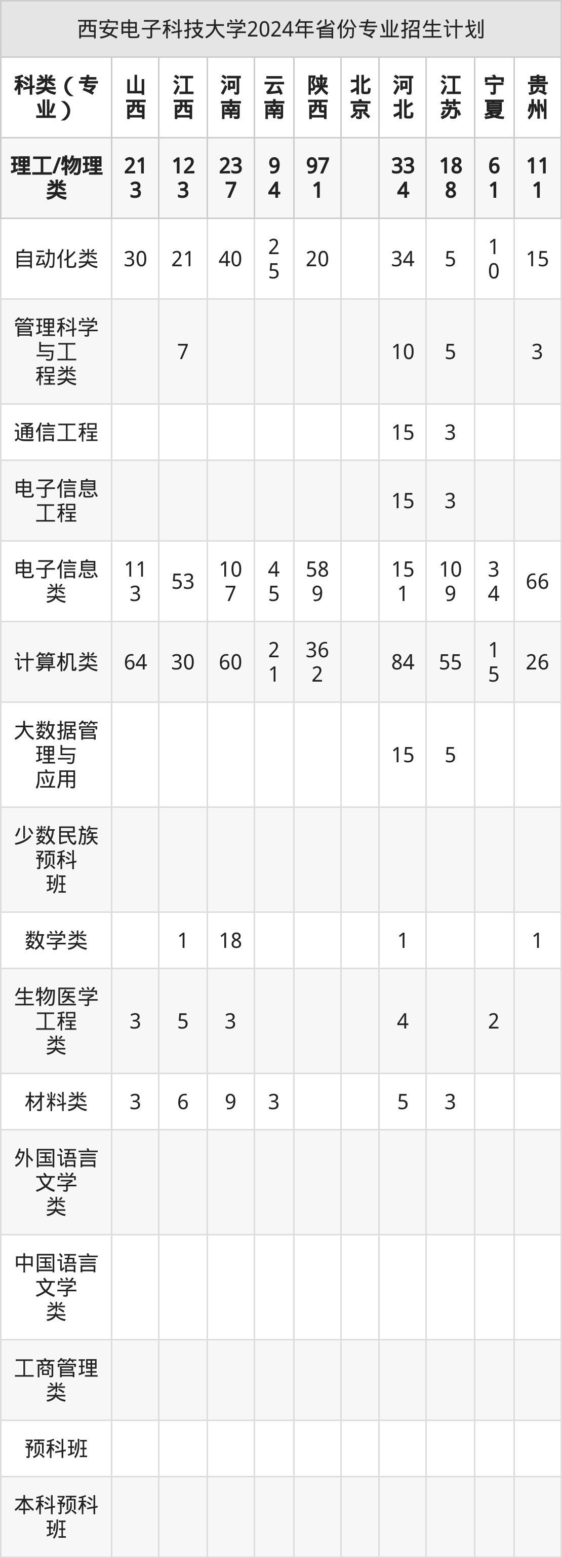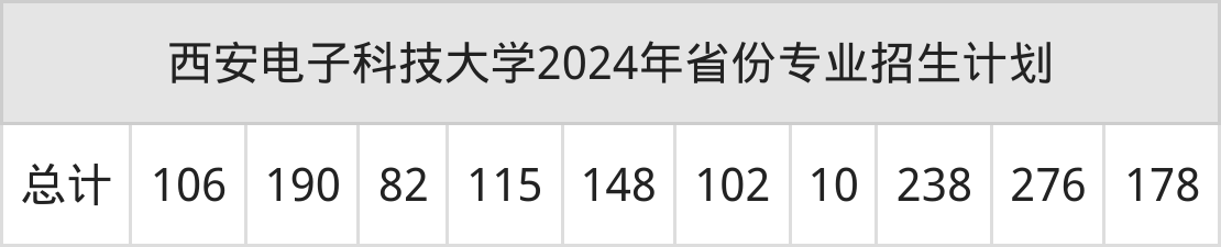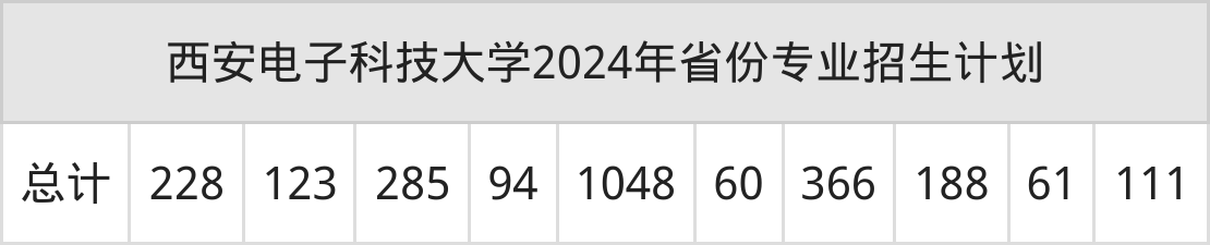 2025年西安电子科技大学本科招生计划待公布,下面附上2024年数据,暂供参考: