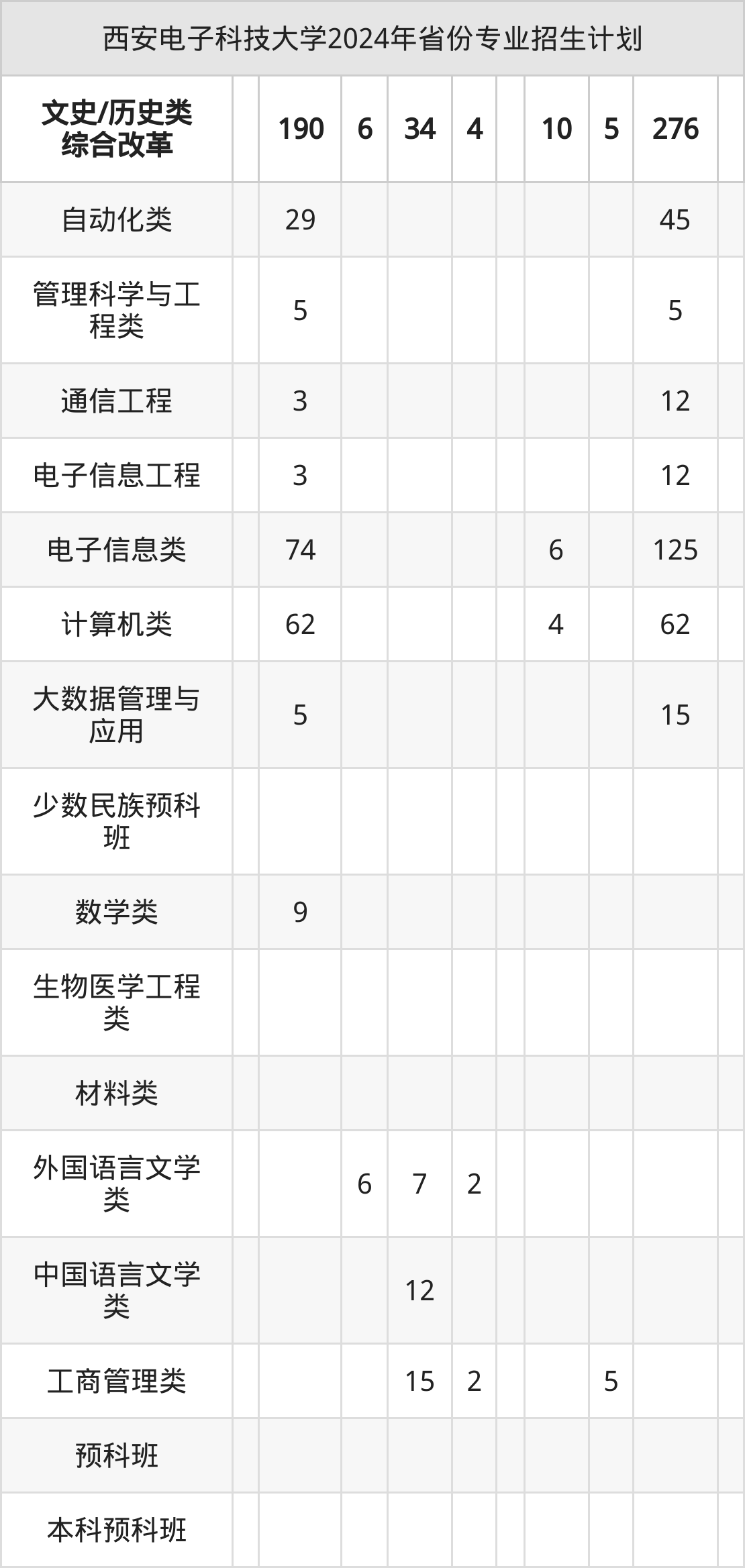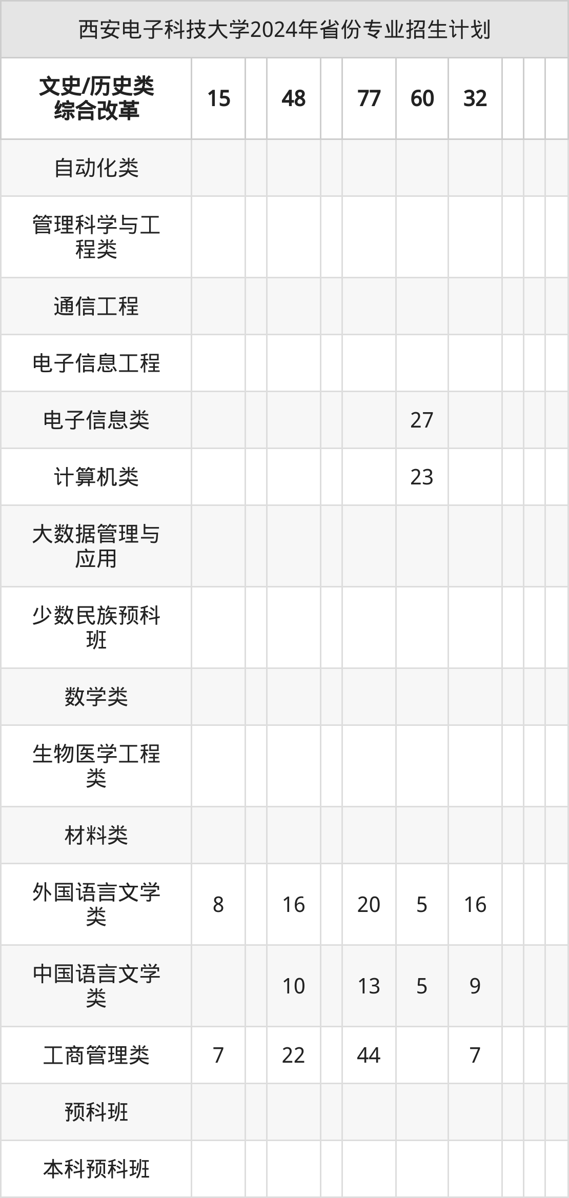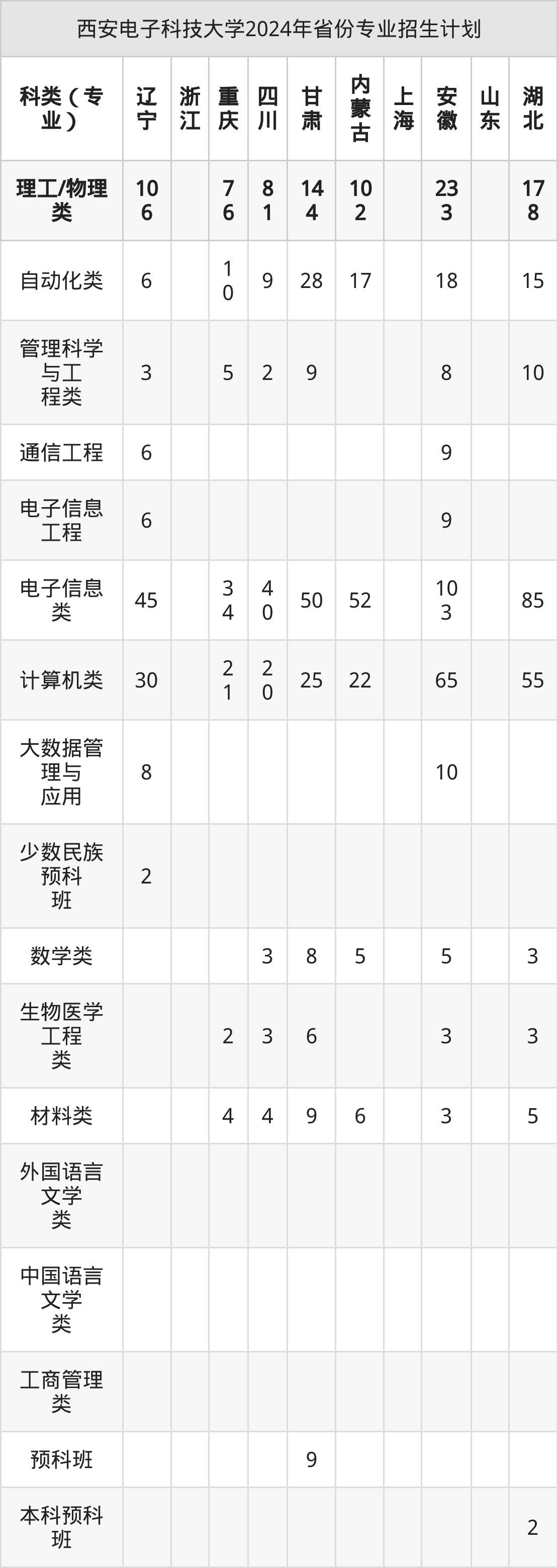 2025年西安电子科技大学本科招生计划待公布,下面附上2024年数据,暂供参考: