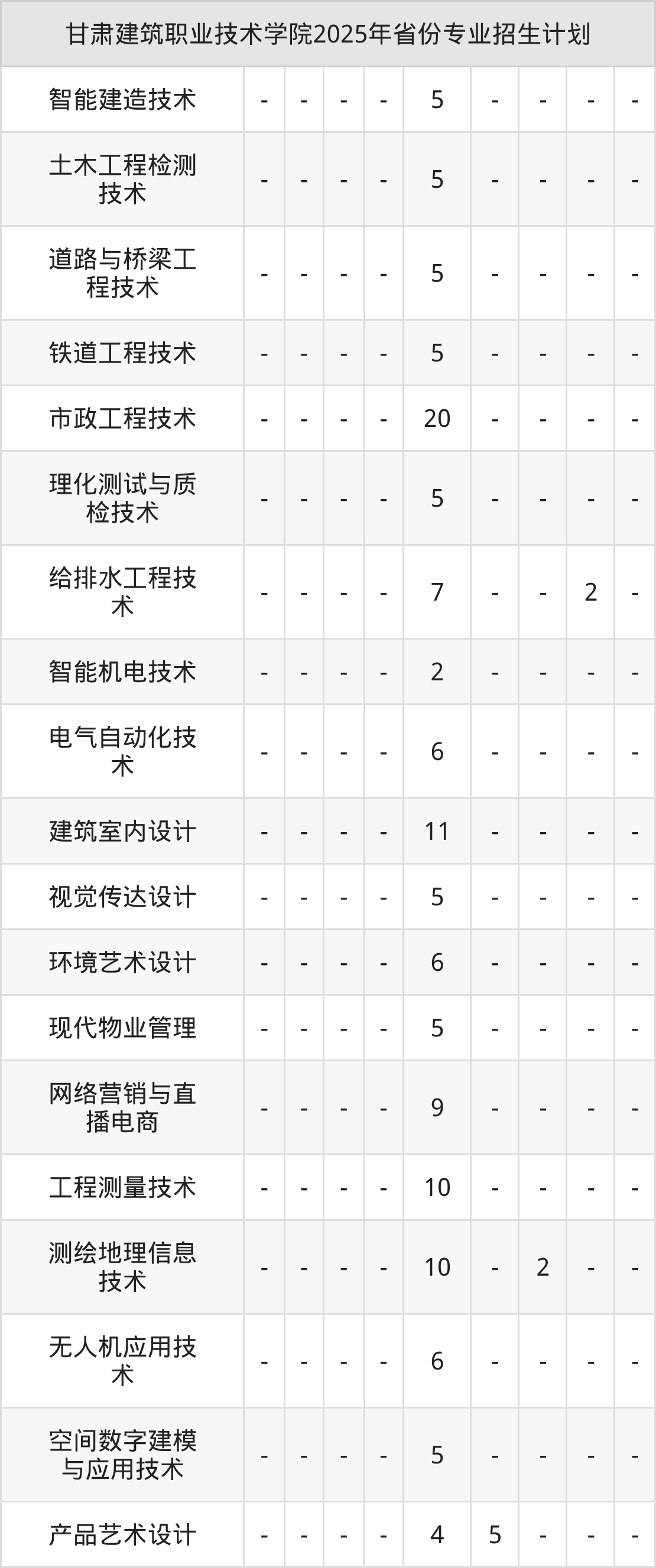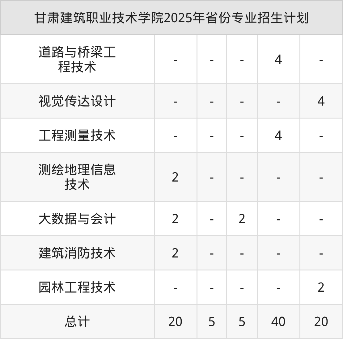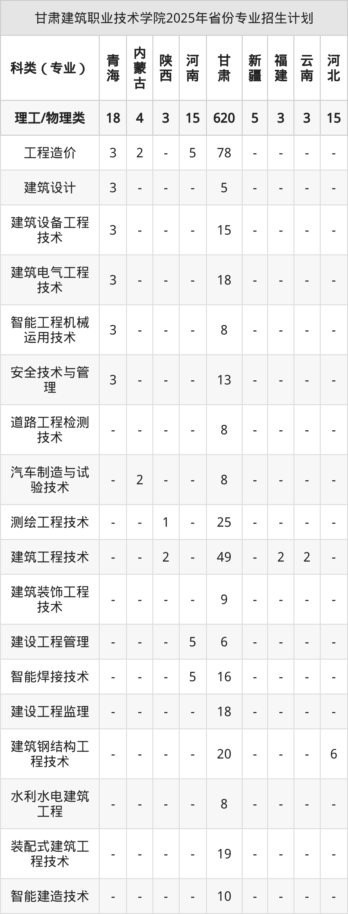 2026年甘肃建筑职业技术学院专科招生计划待公布,下面附上2025年数据,暂供参考: