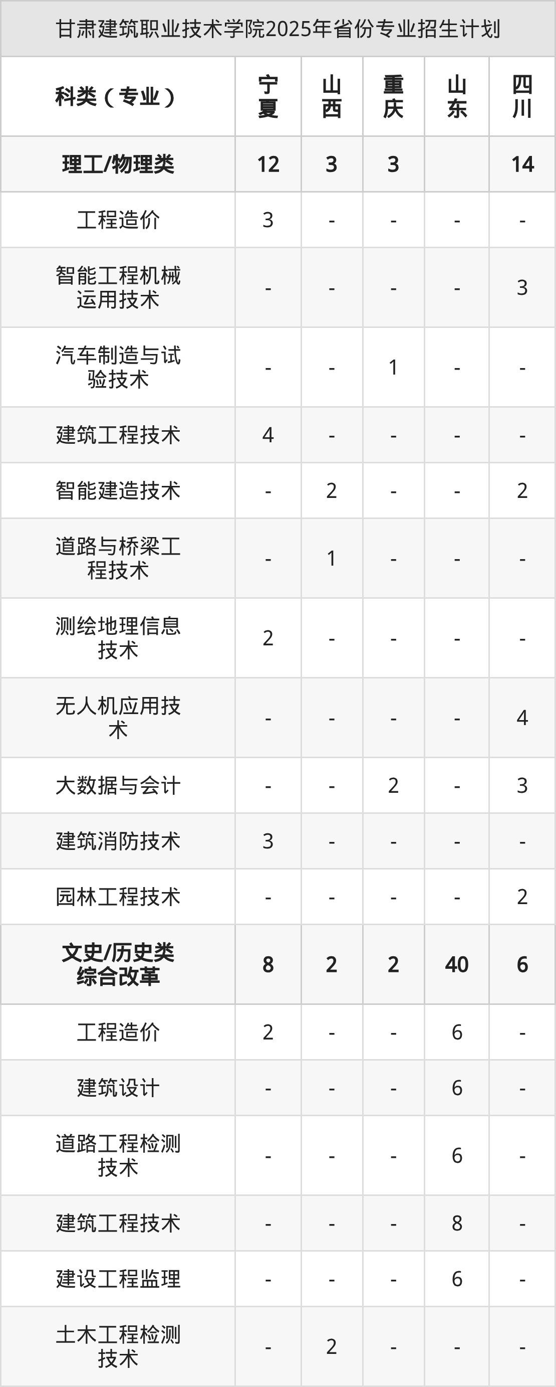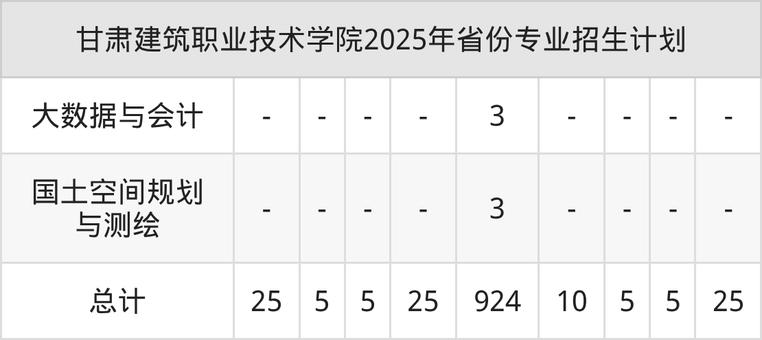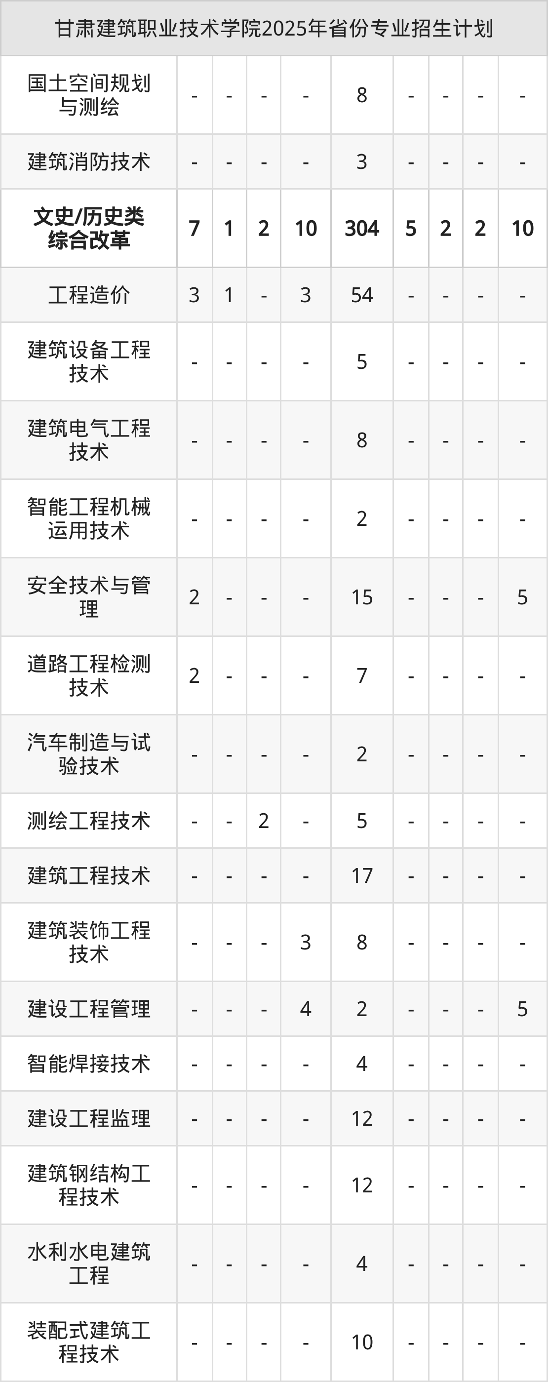 2026年甘肃建筑职业技术学院专科招生计划待公布,下面附上2025年数据,暂供参考: