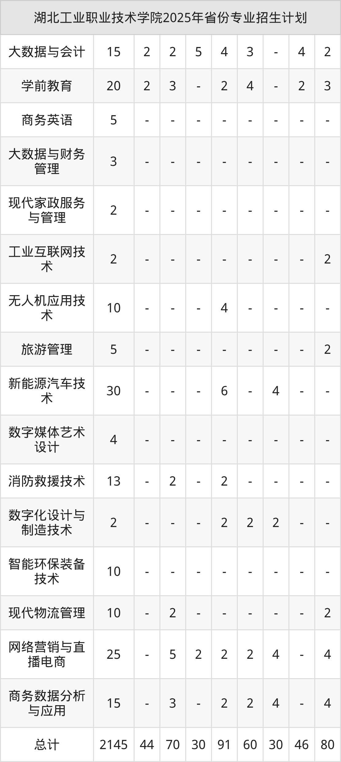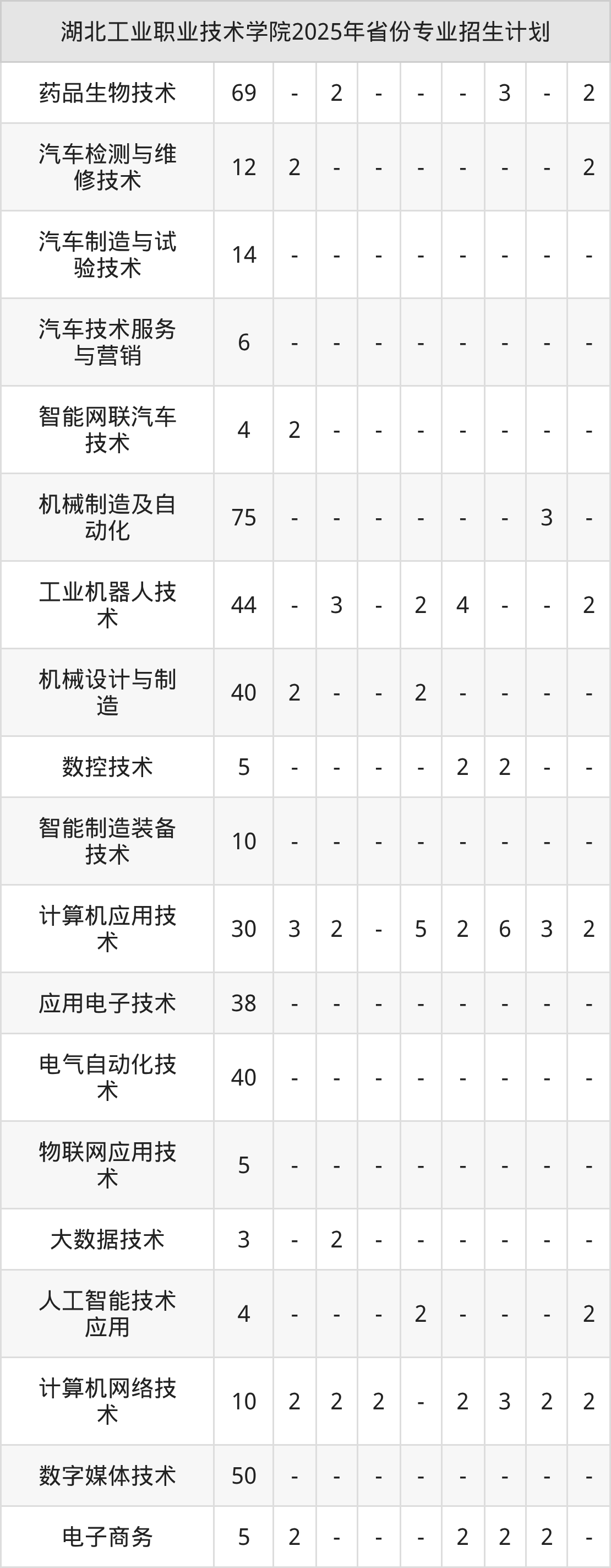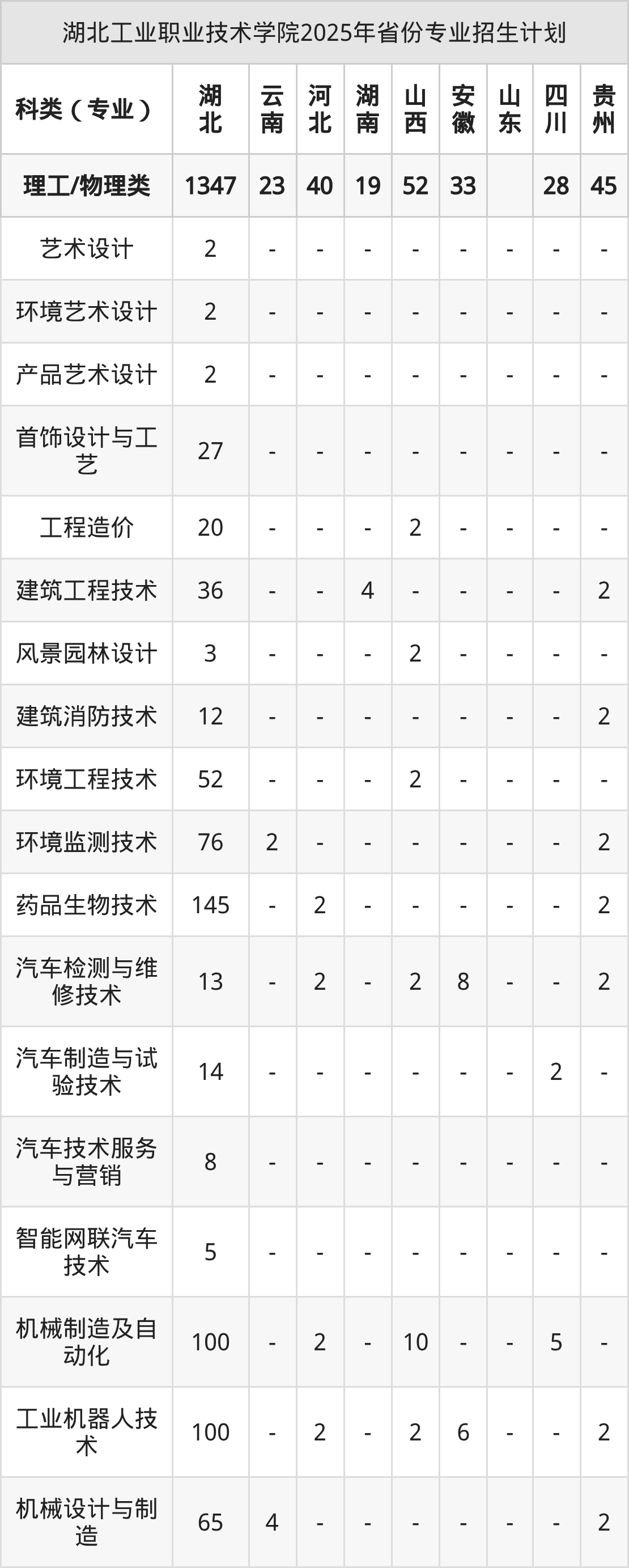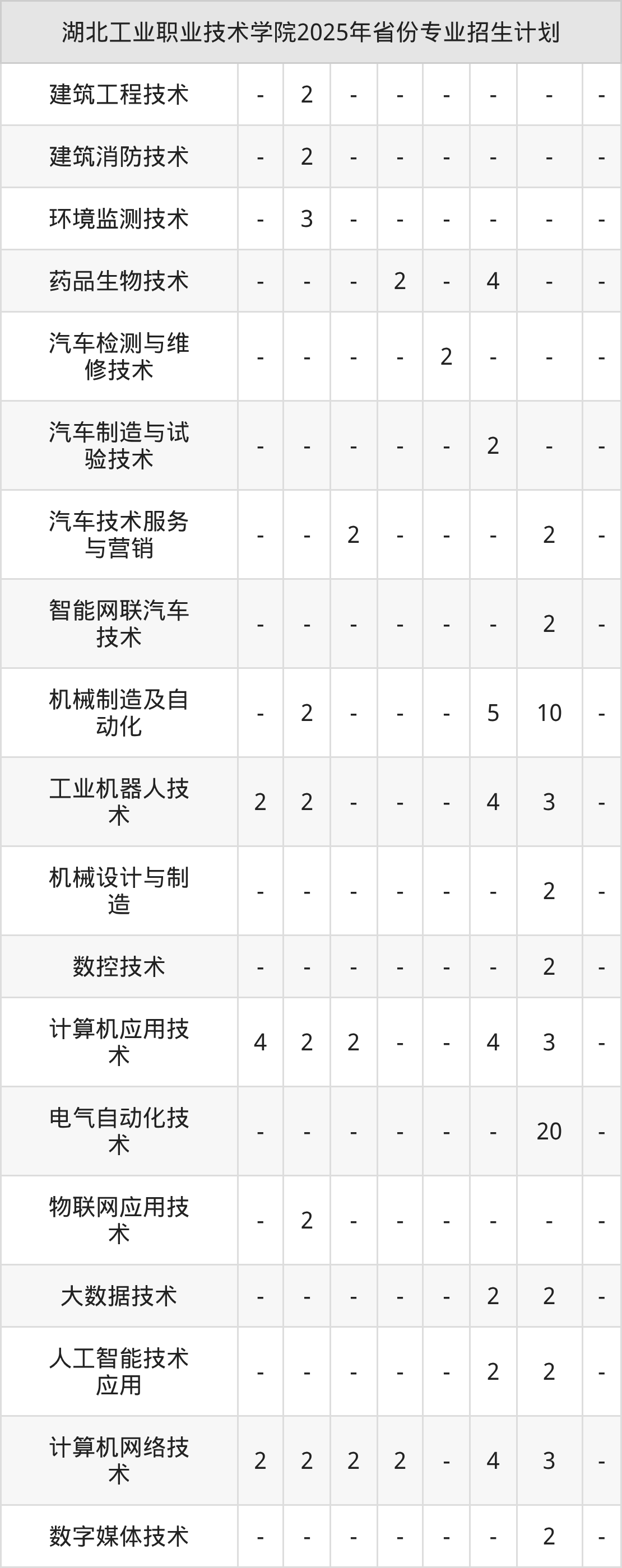2026年湖北工业职业技术学院专科招生计划待公布,下面附上2025年数据,暂供参考: