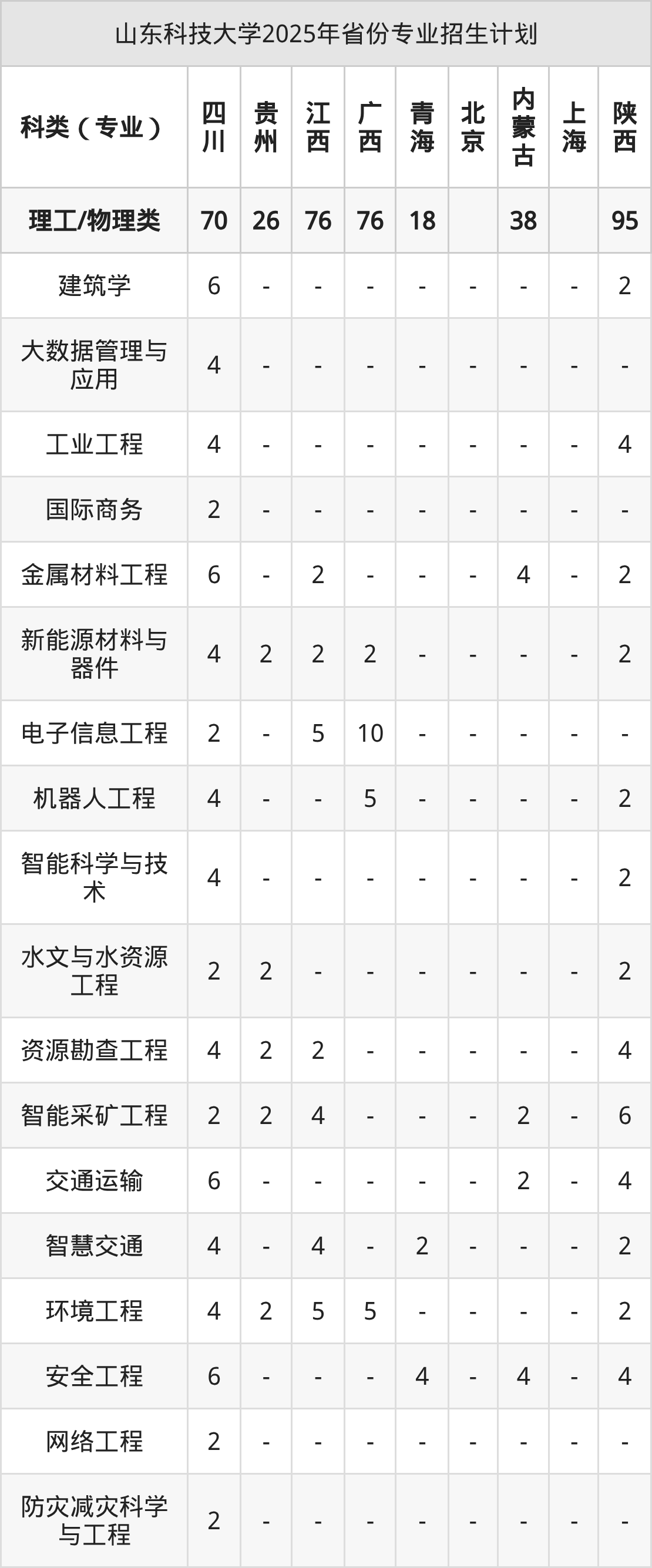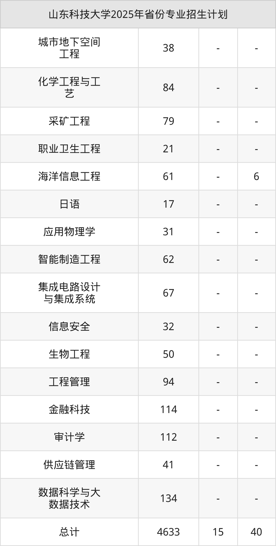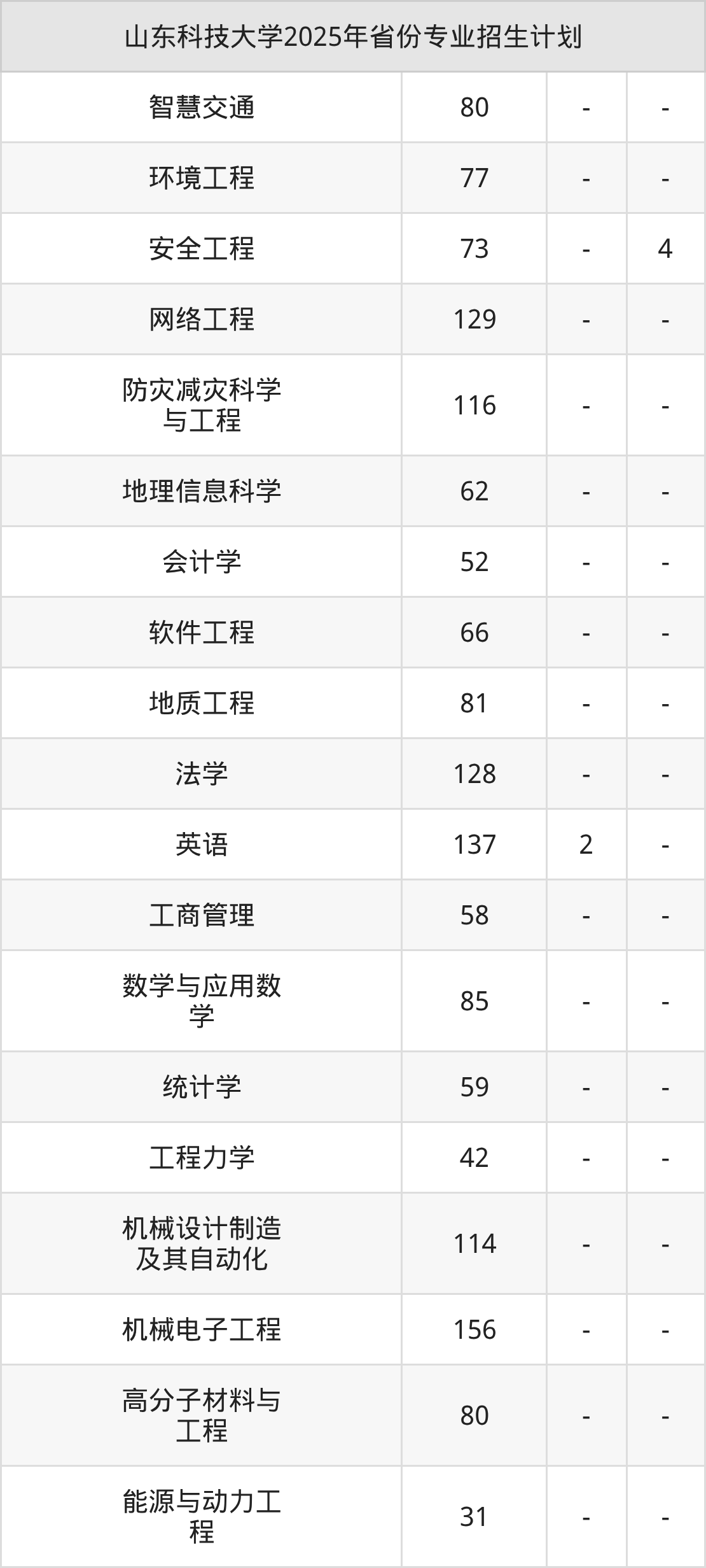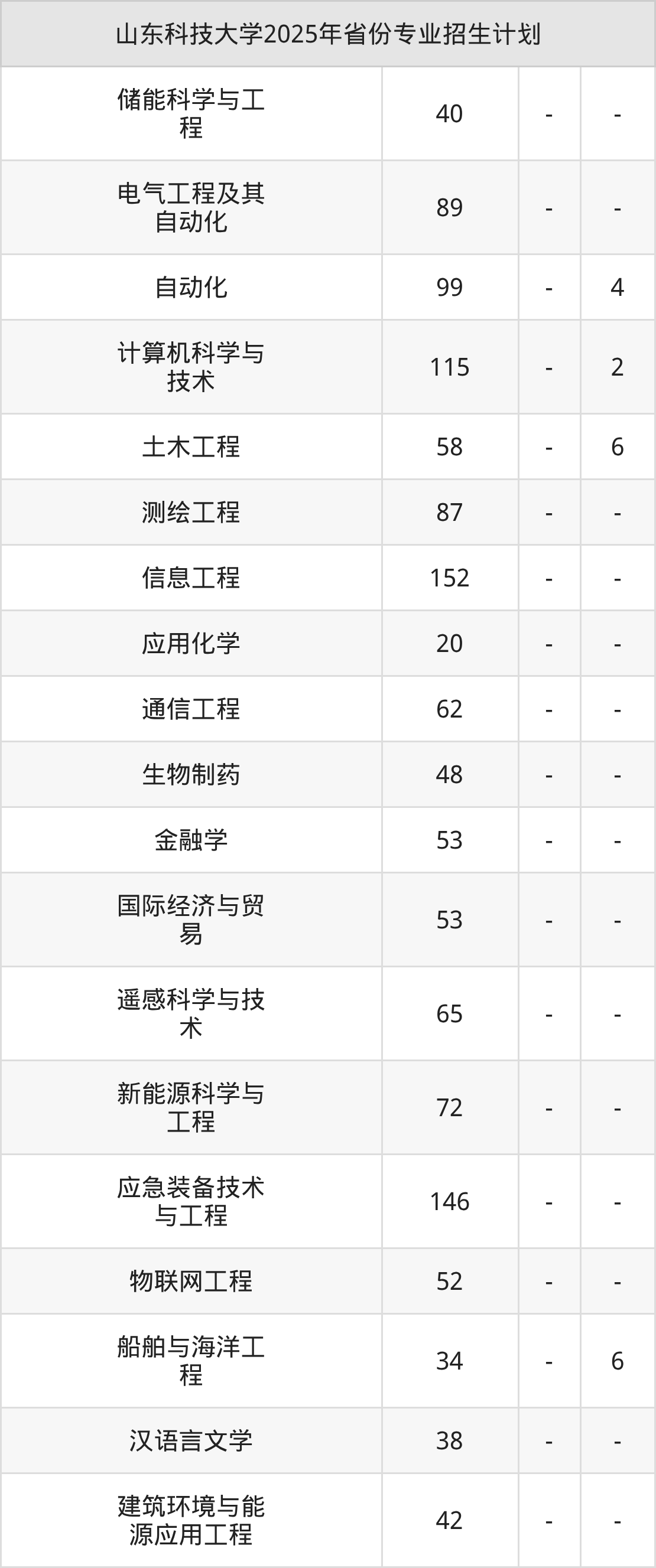 2026年山东科技大学本科招生计划待公布,下面附上2025年数据,暂供参考:
