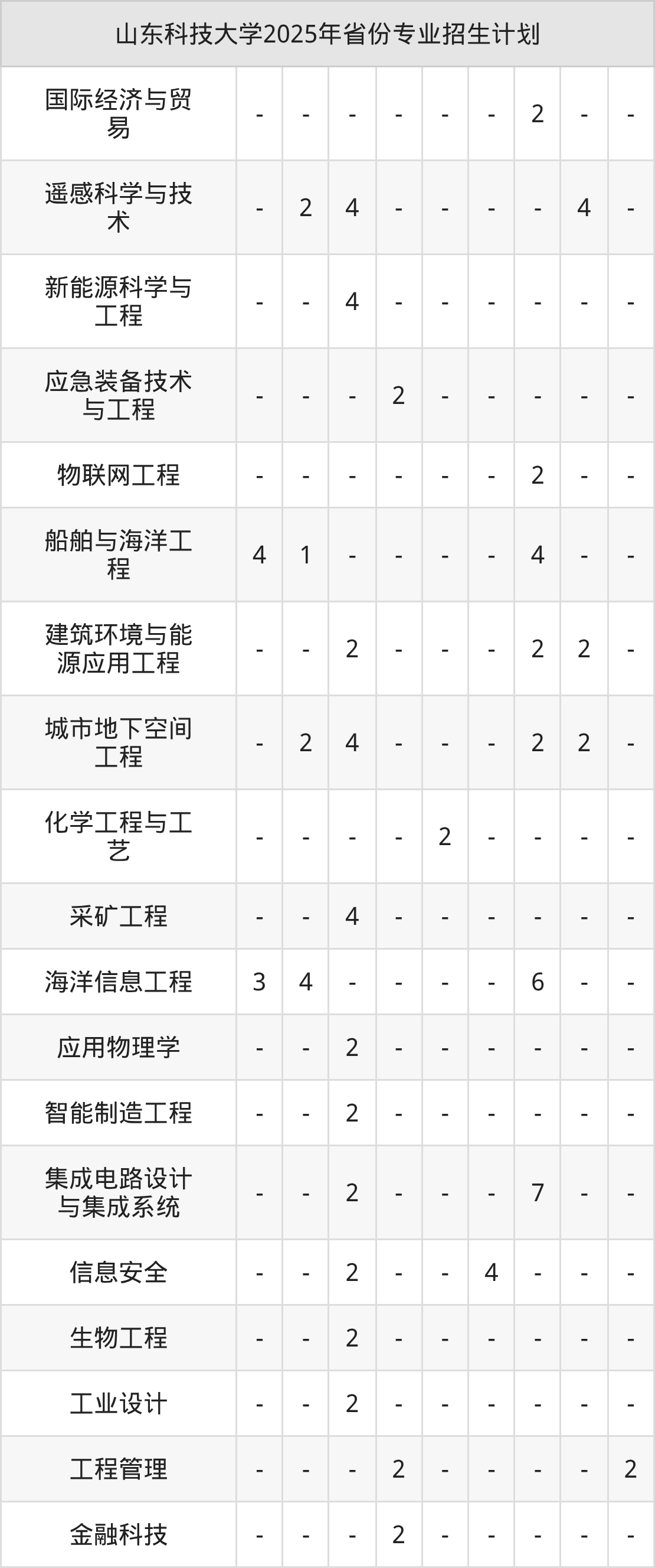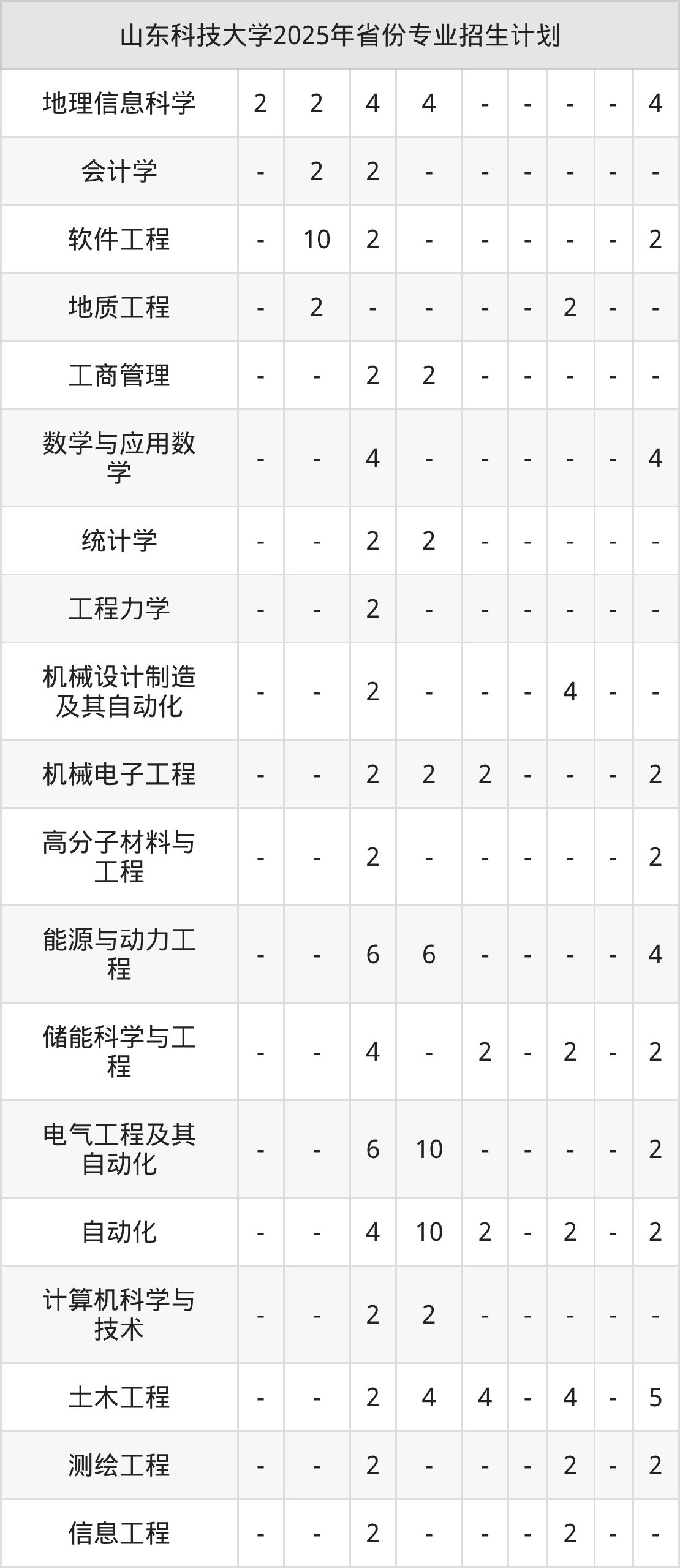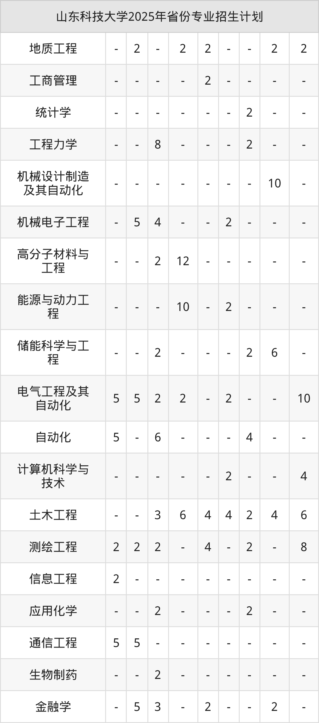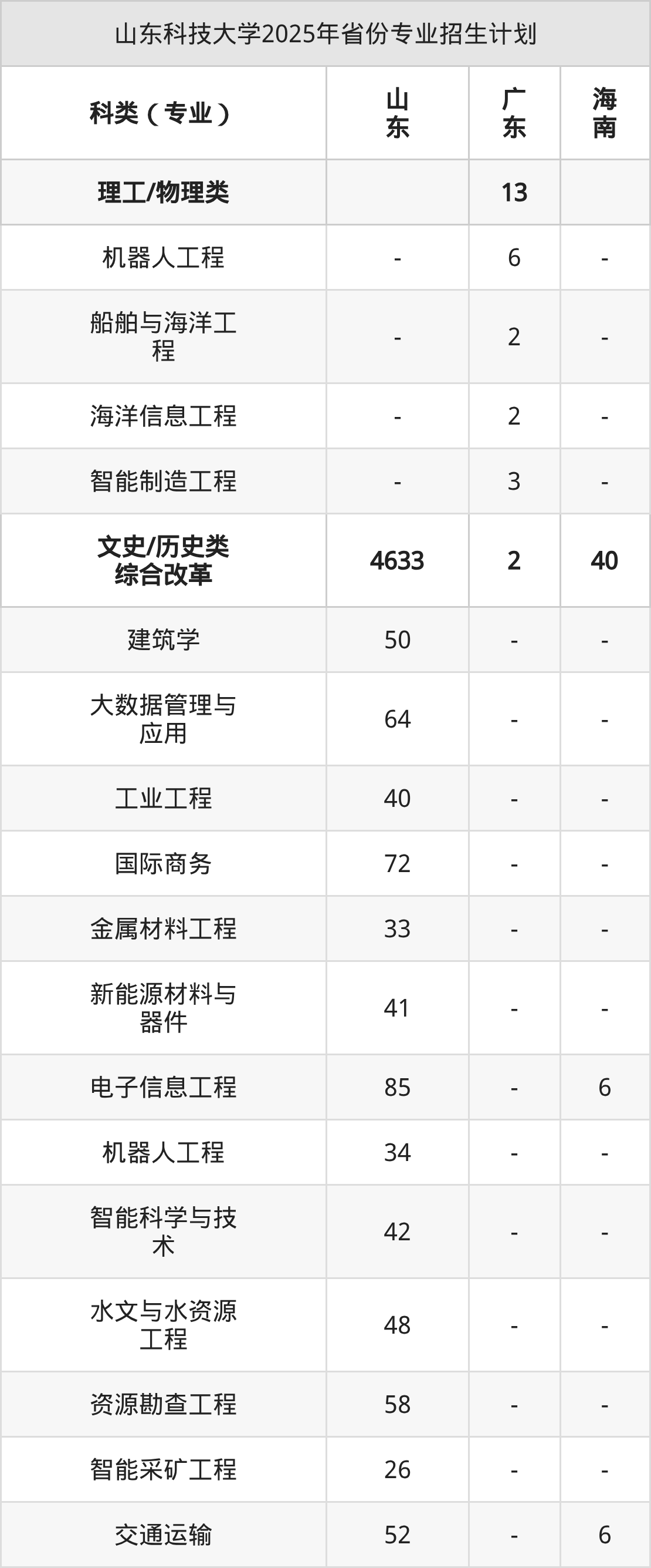 2026年山东科技大学本科招生计划待公布,下面附上2025年数据,暂供参考: