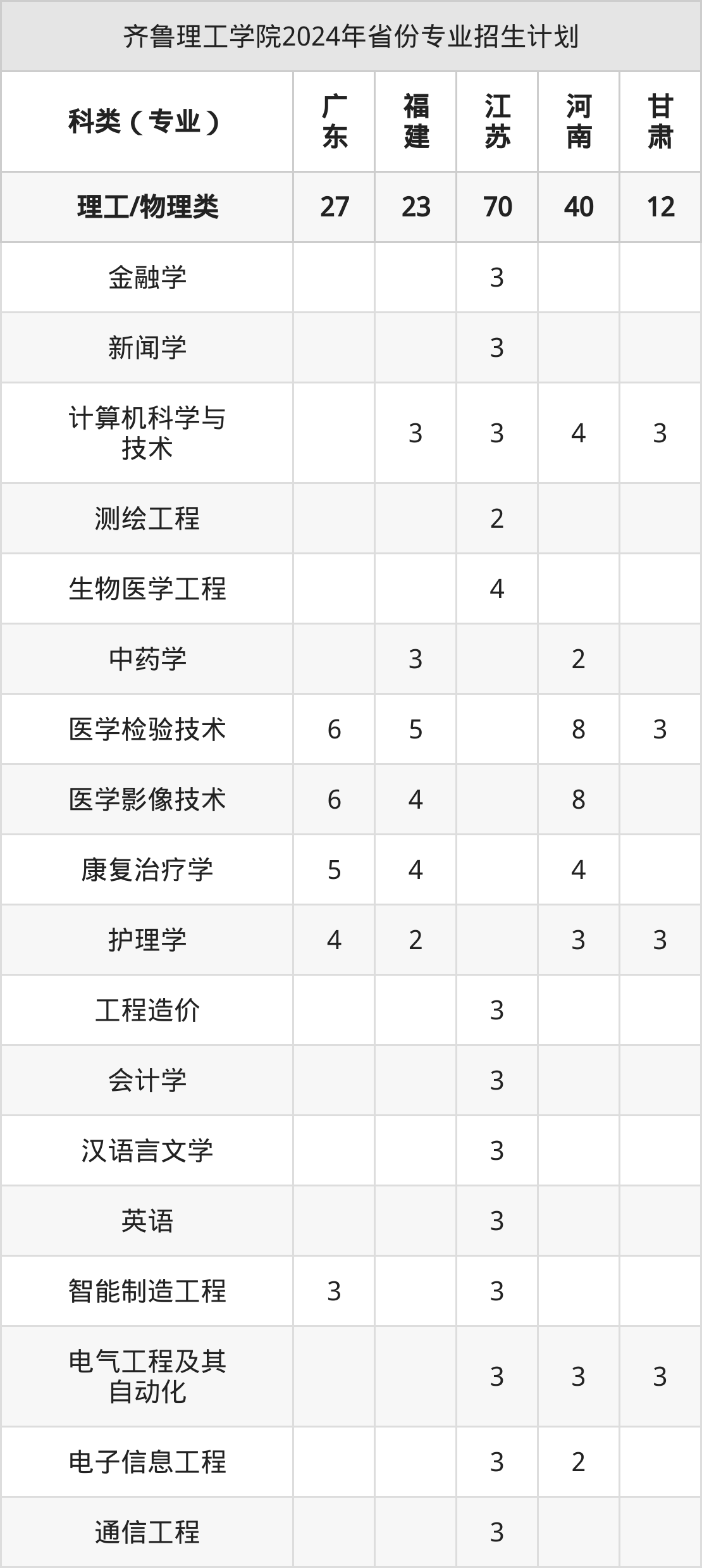 2025年齐鲁理工学院本科招生计划待公布,下面附上2024年数据,暂供参考: