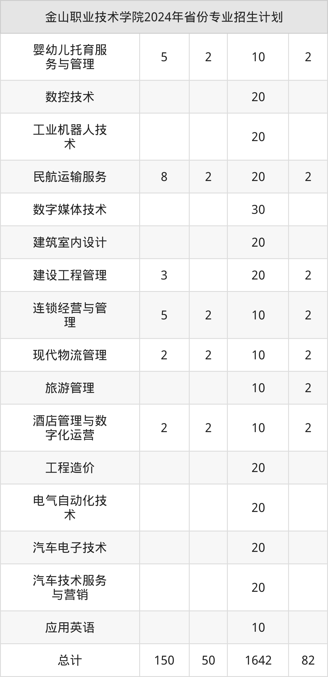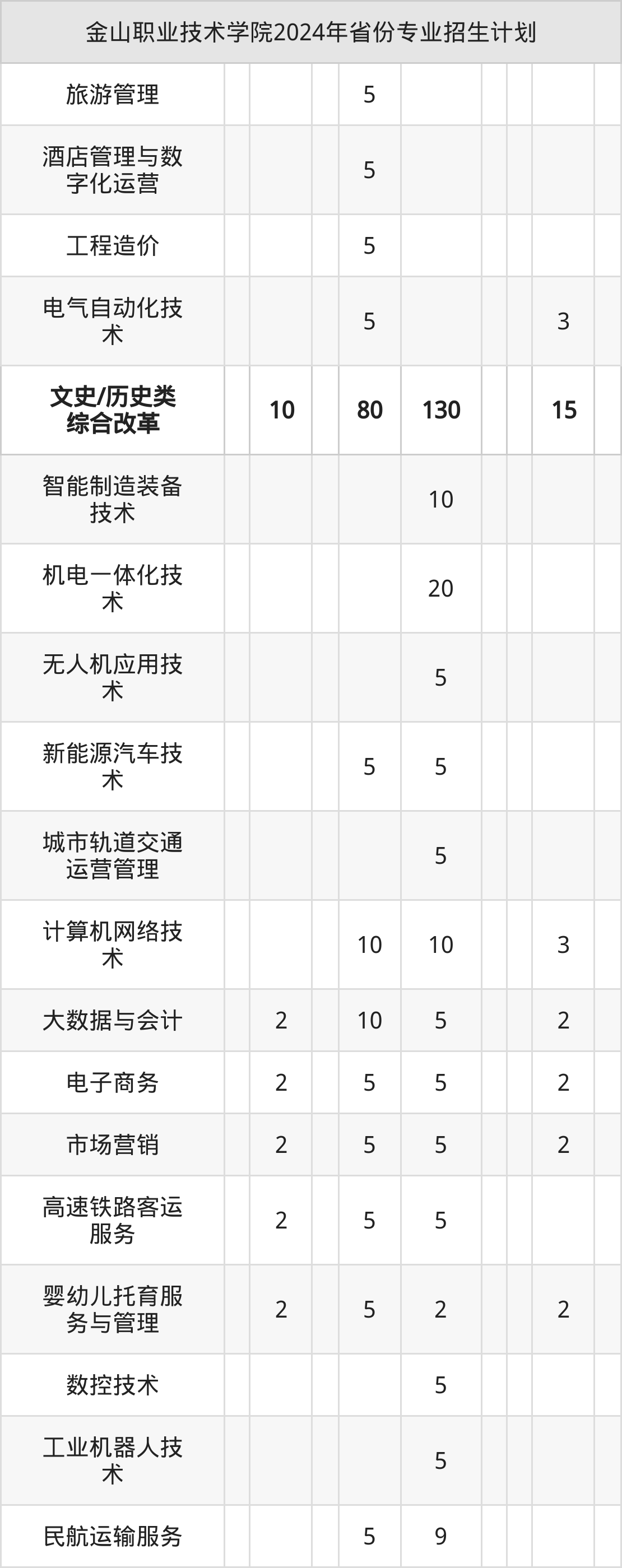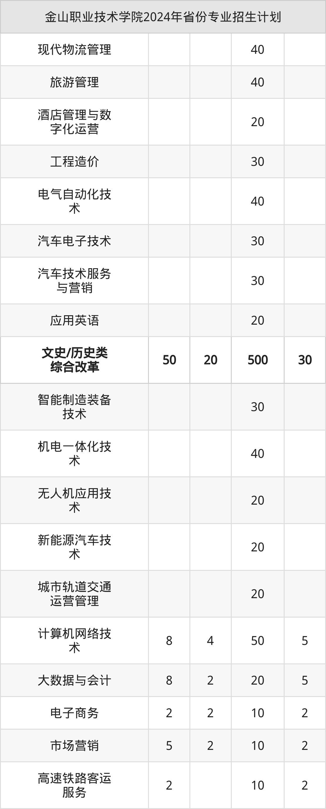 2025年金山职业技术学院专科招生计划待公布,下面附上2024年数据,暂供参考: