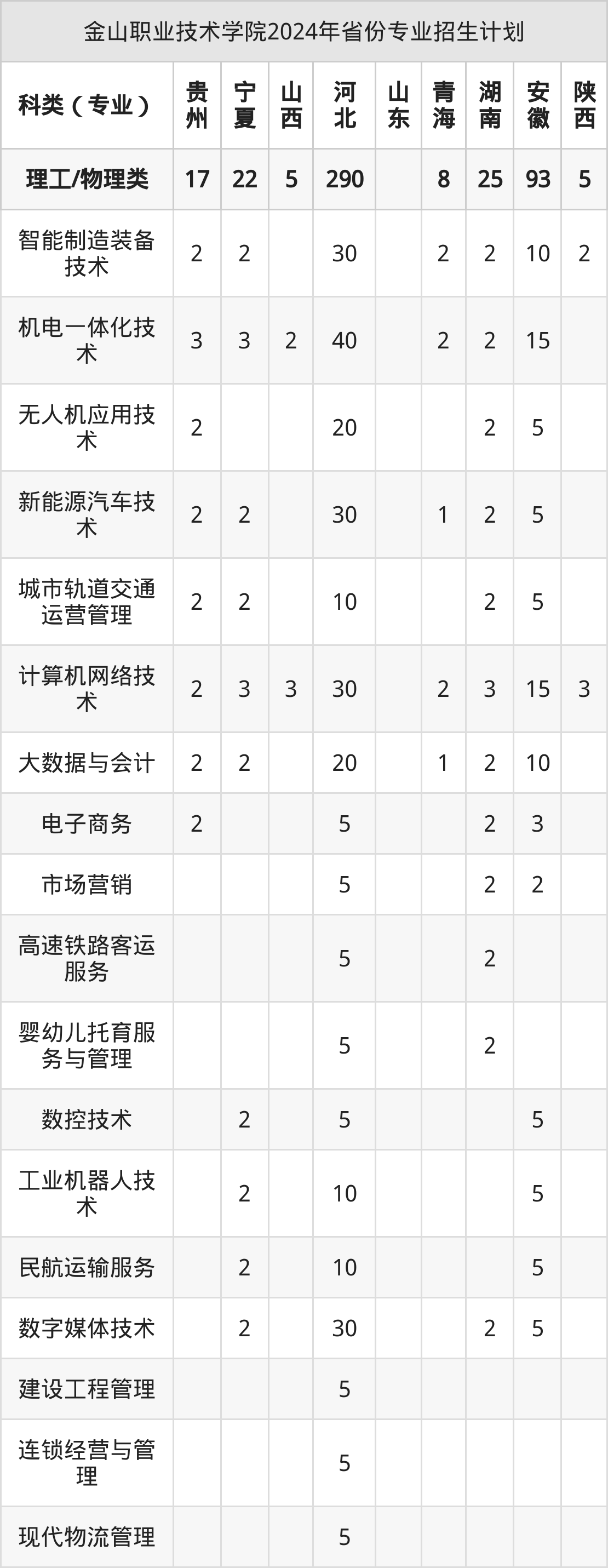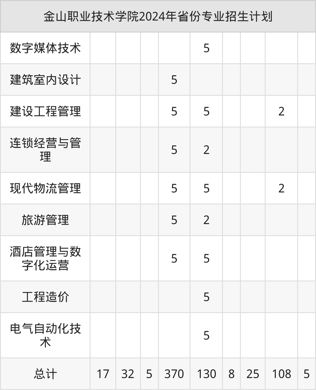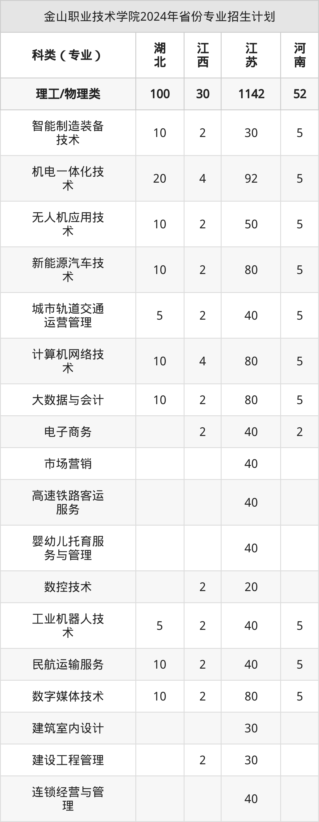 2025年金山职业技术学院专科招生计划待公布,下面附上2024年数据,暂供参考: