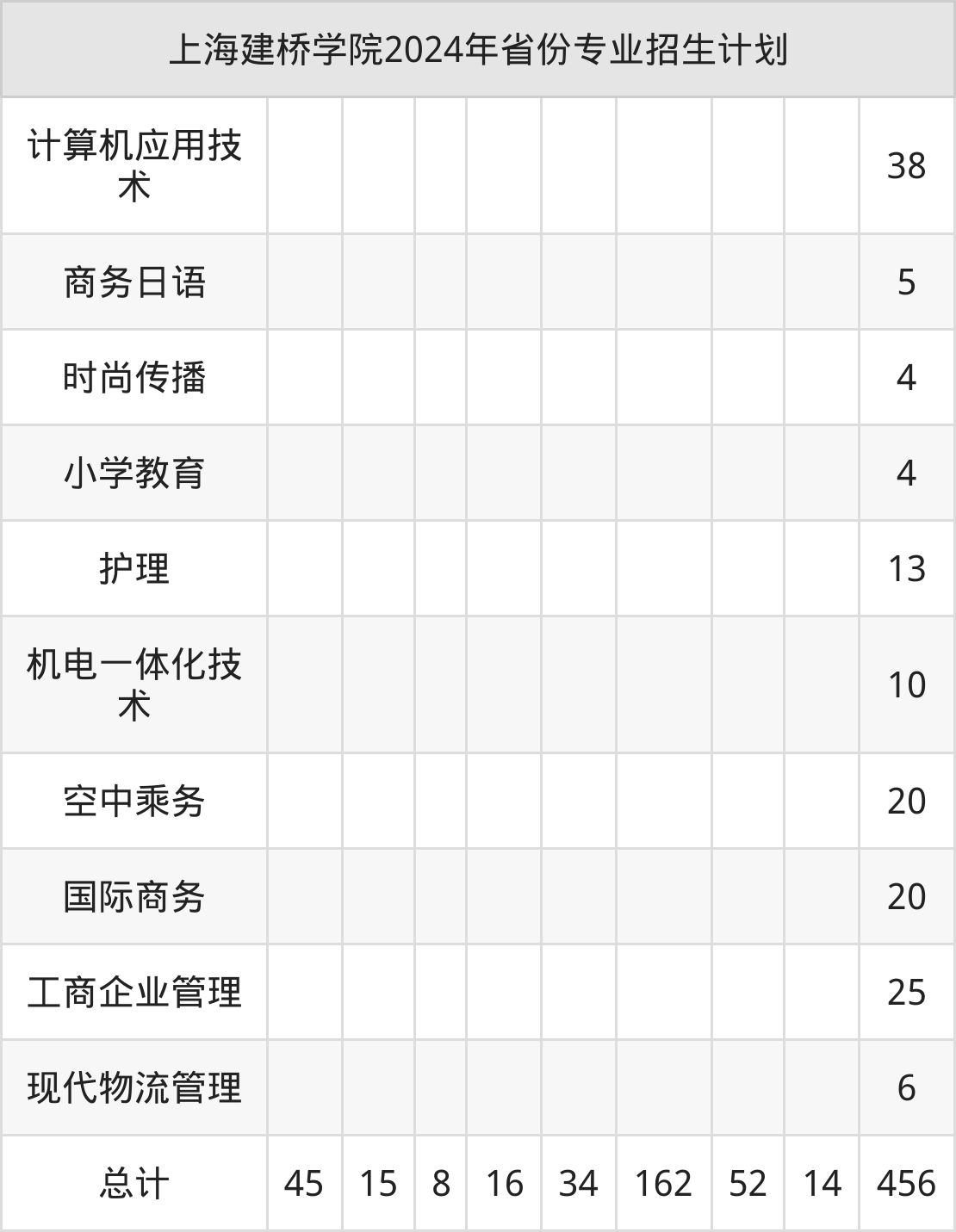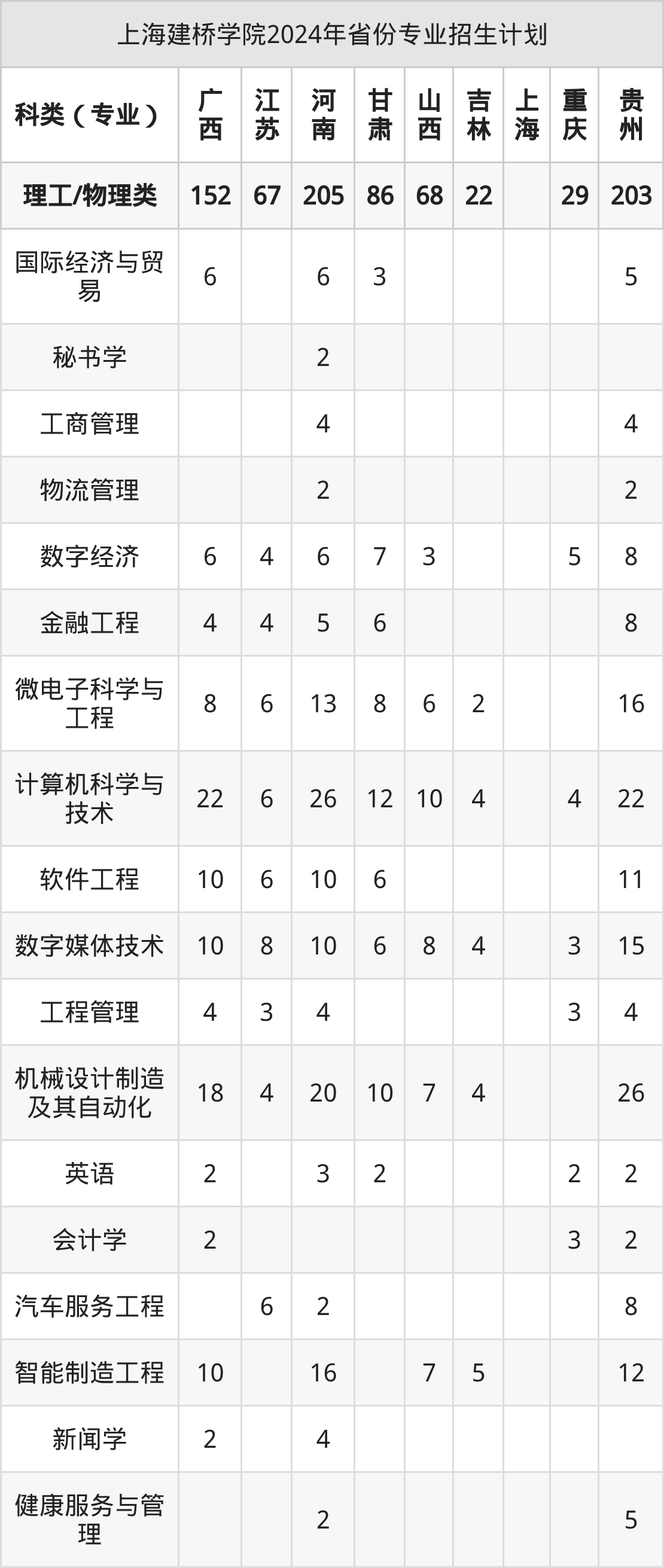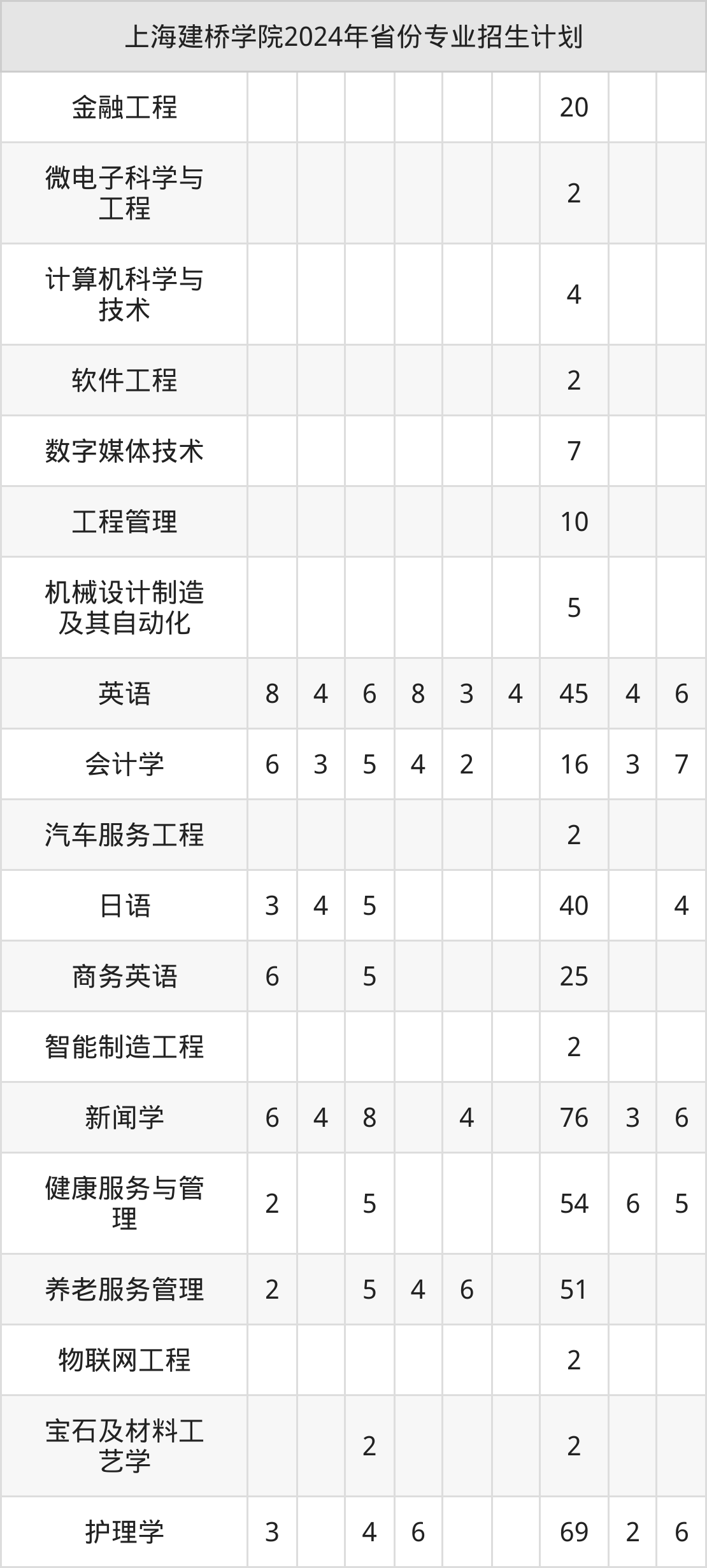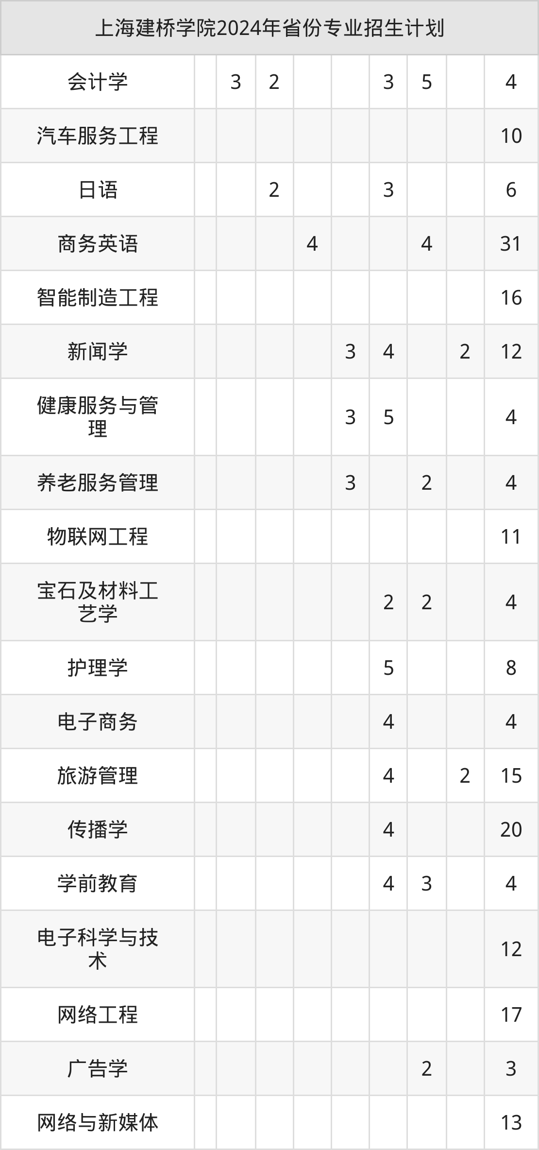 2025年上海建桥学院本科招生计划待公布,下面附上2024年数据,暂供参考: