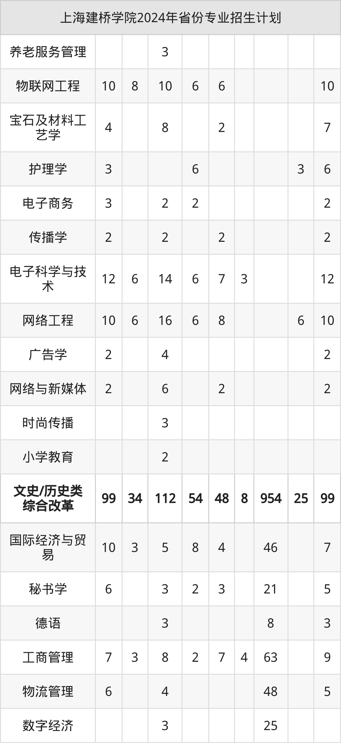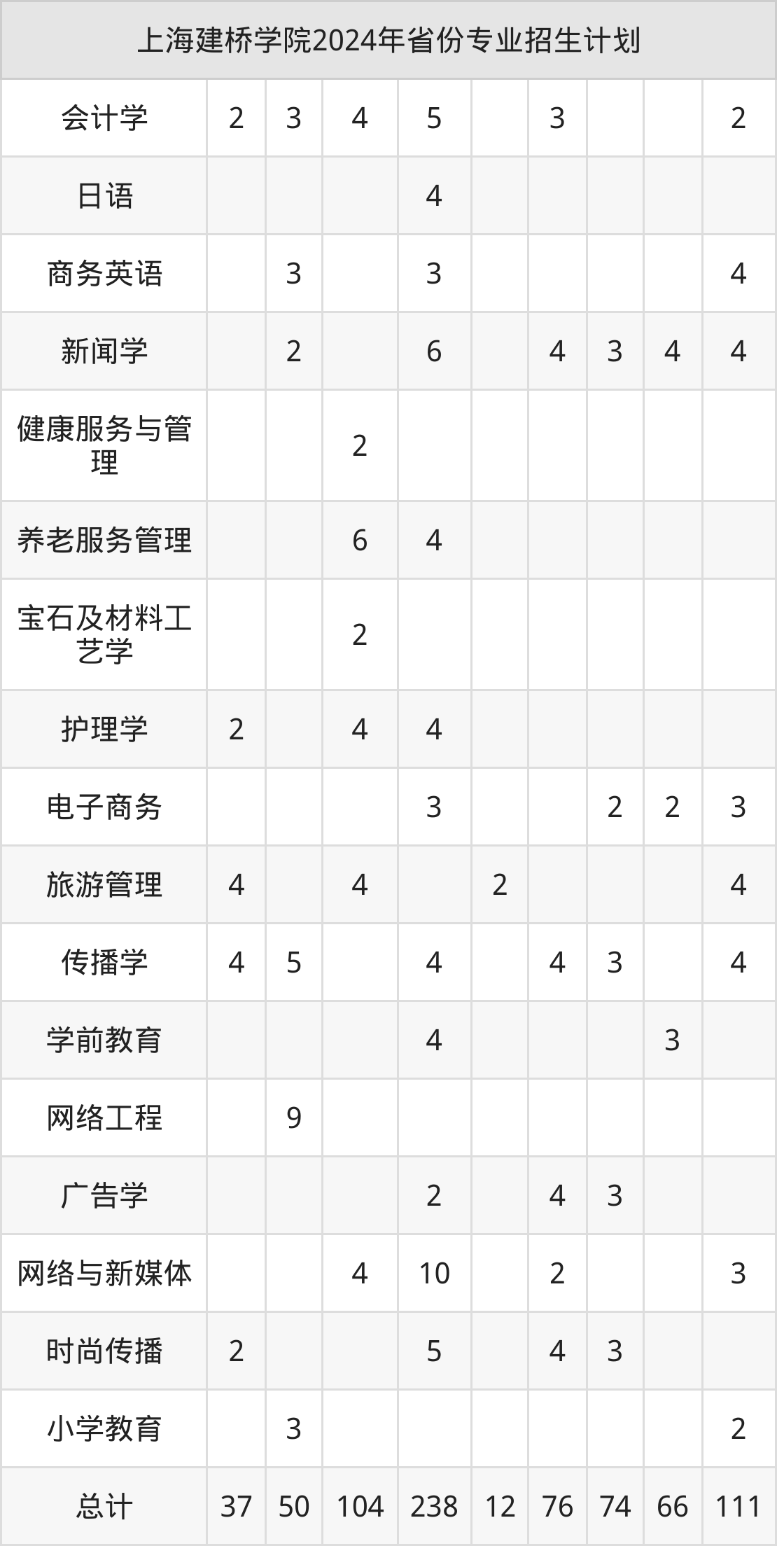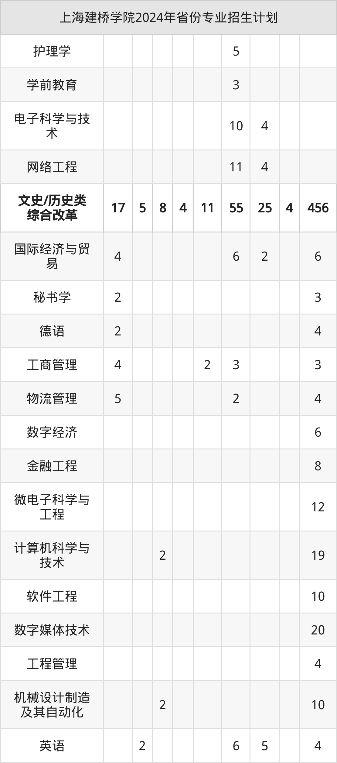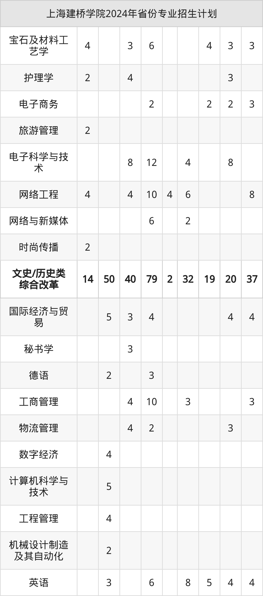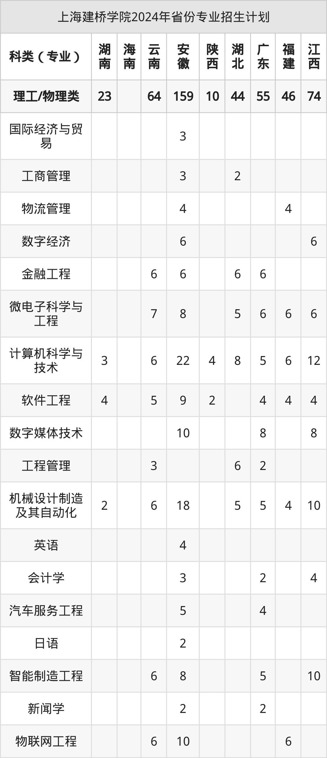 2025年上海建桥学院本科招生计划待公布,下面附上2024年数据,暂供参考: