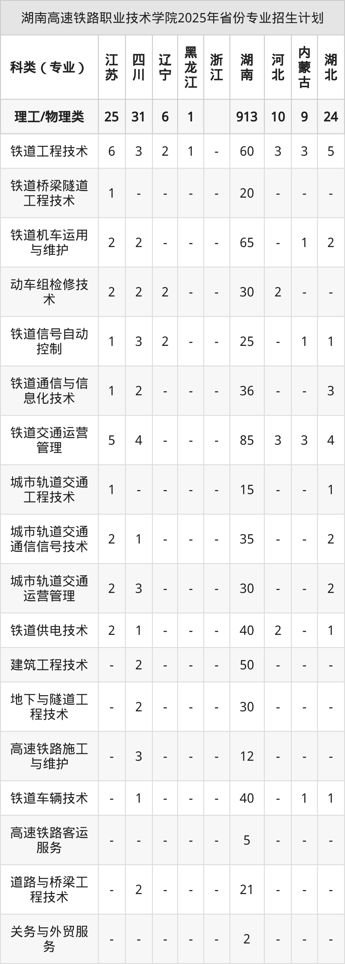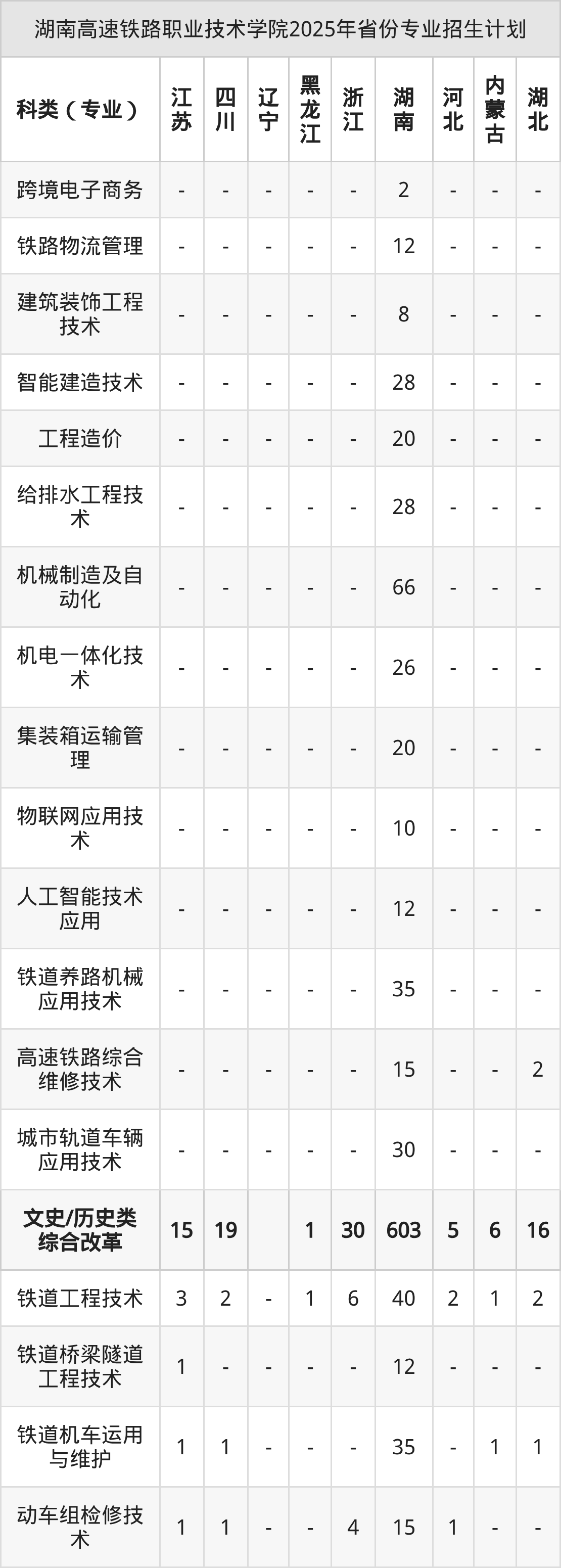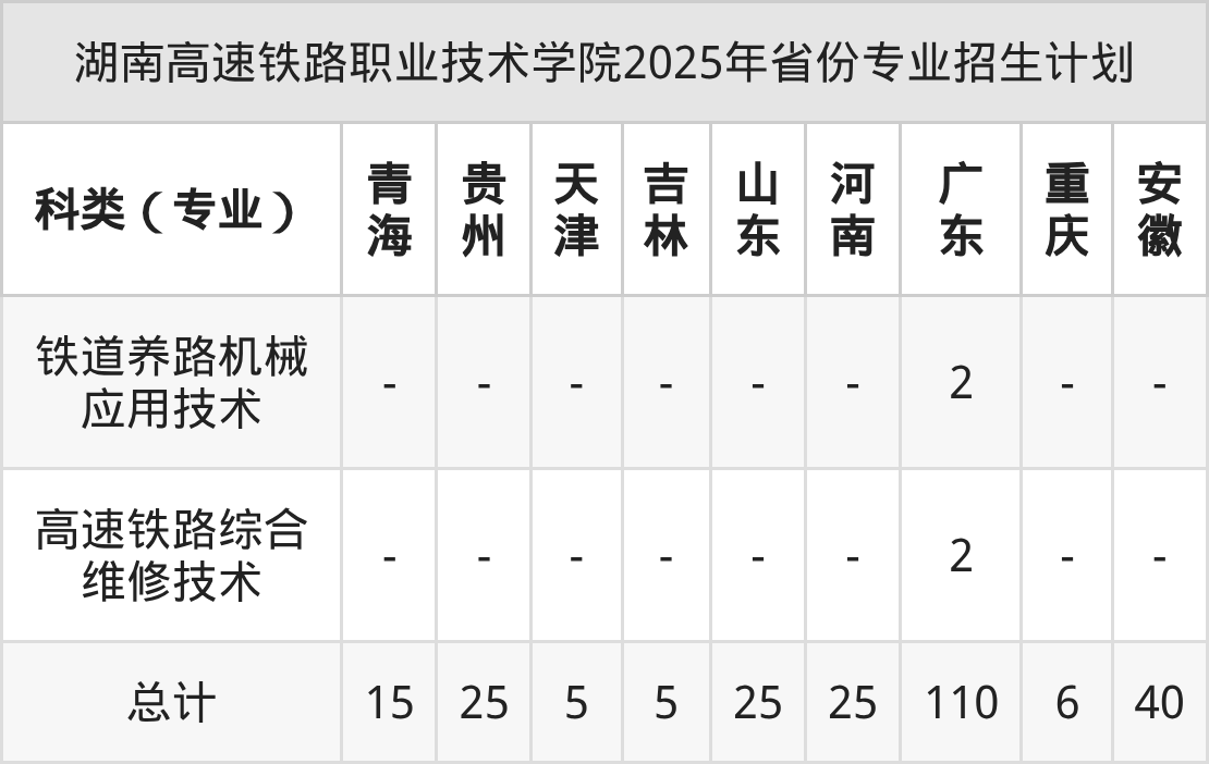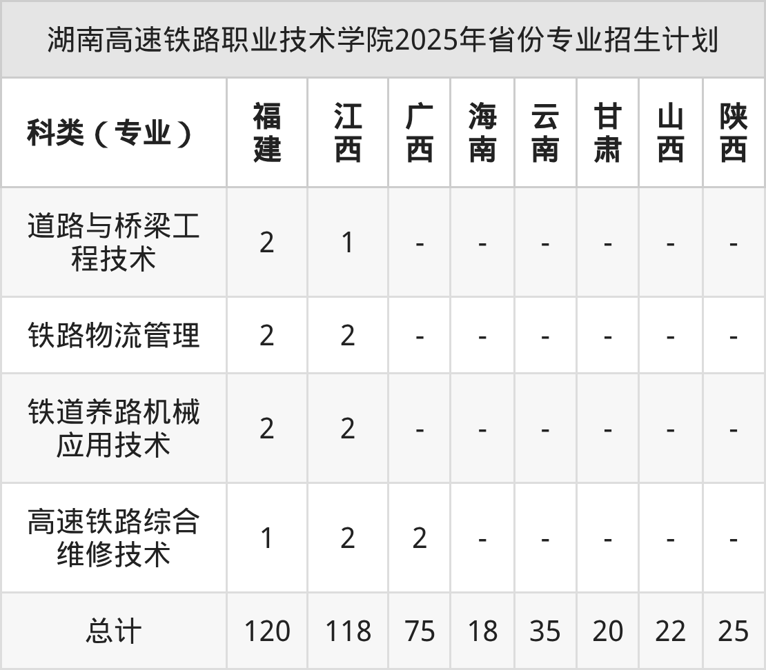 2026年湖南高速铁路职业技术学院专科招生计划待公布,下面附上2025年数据,暂供参考: