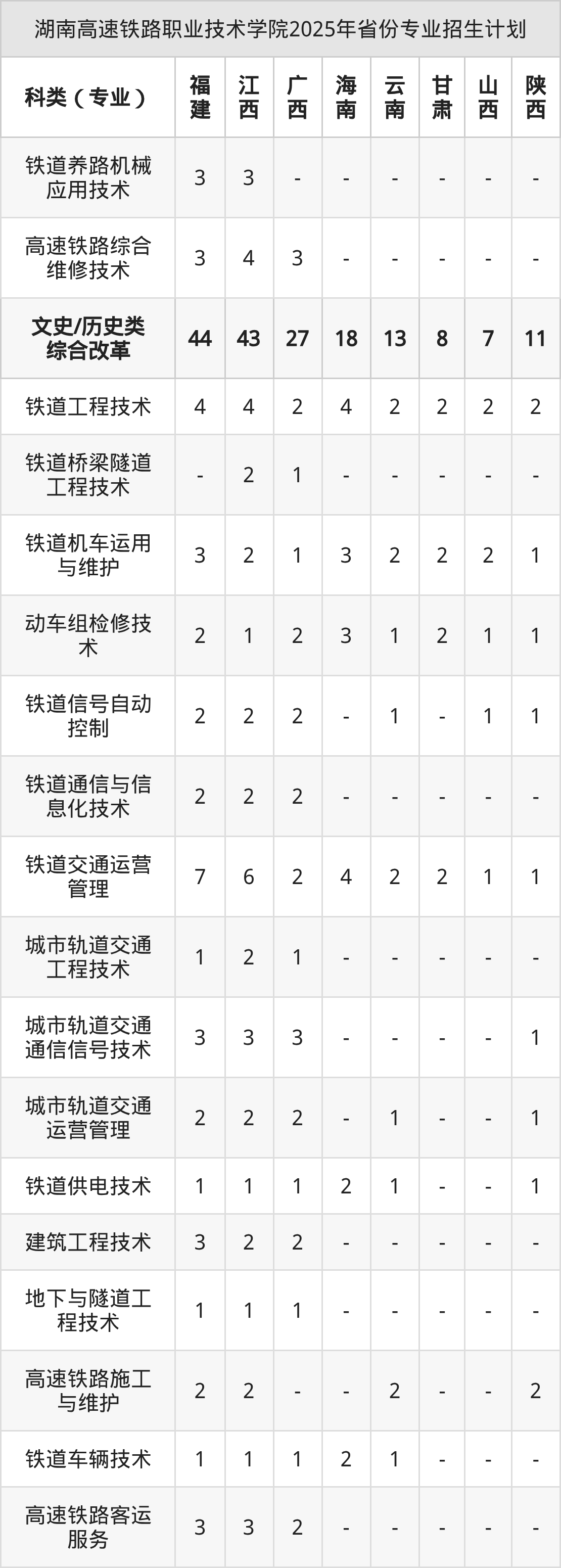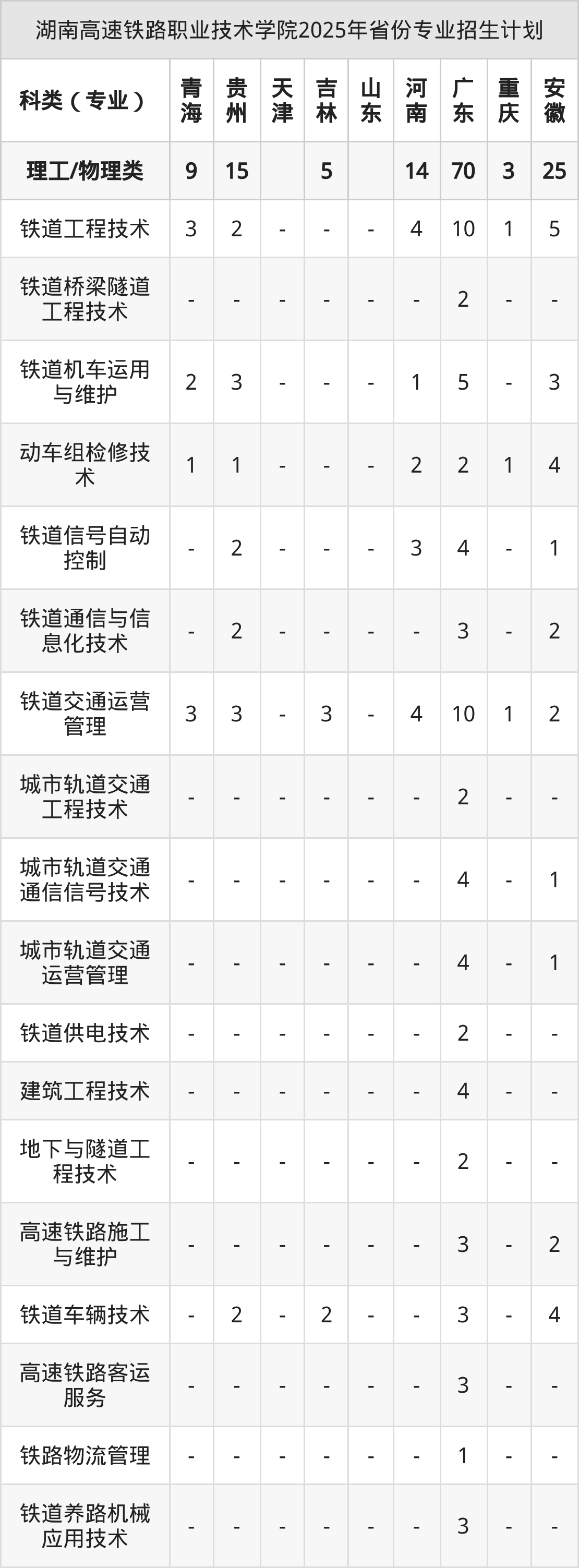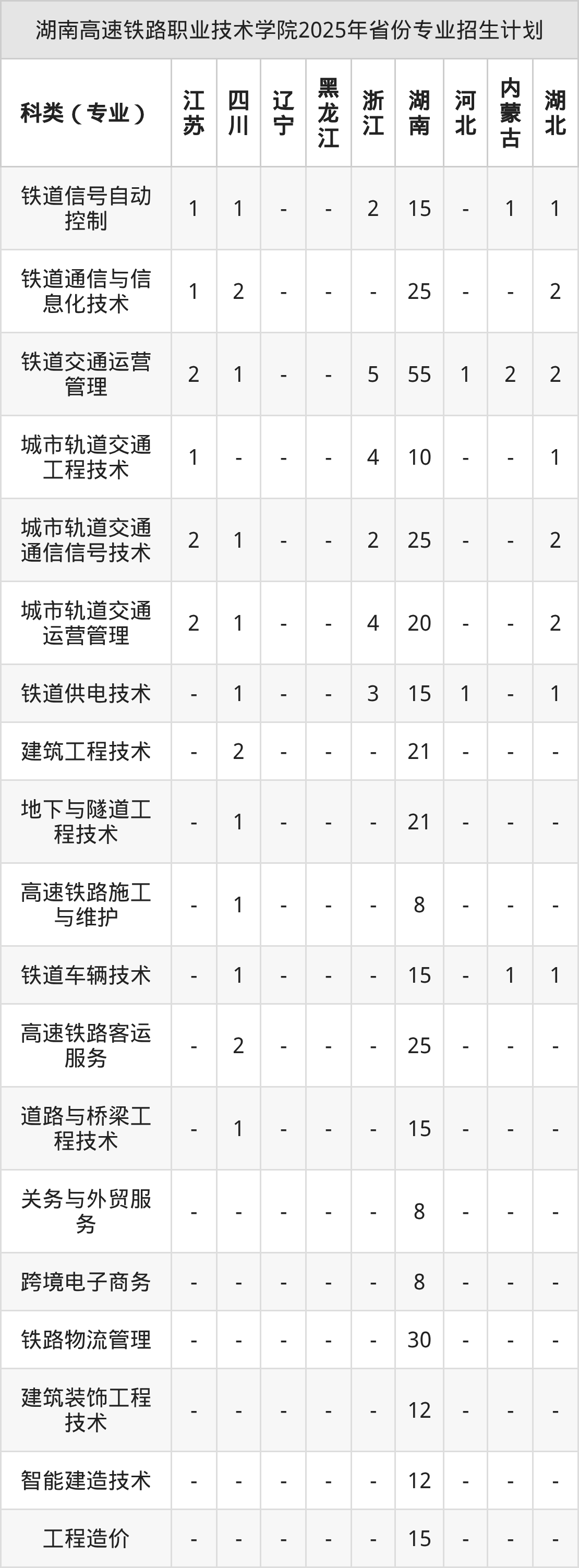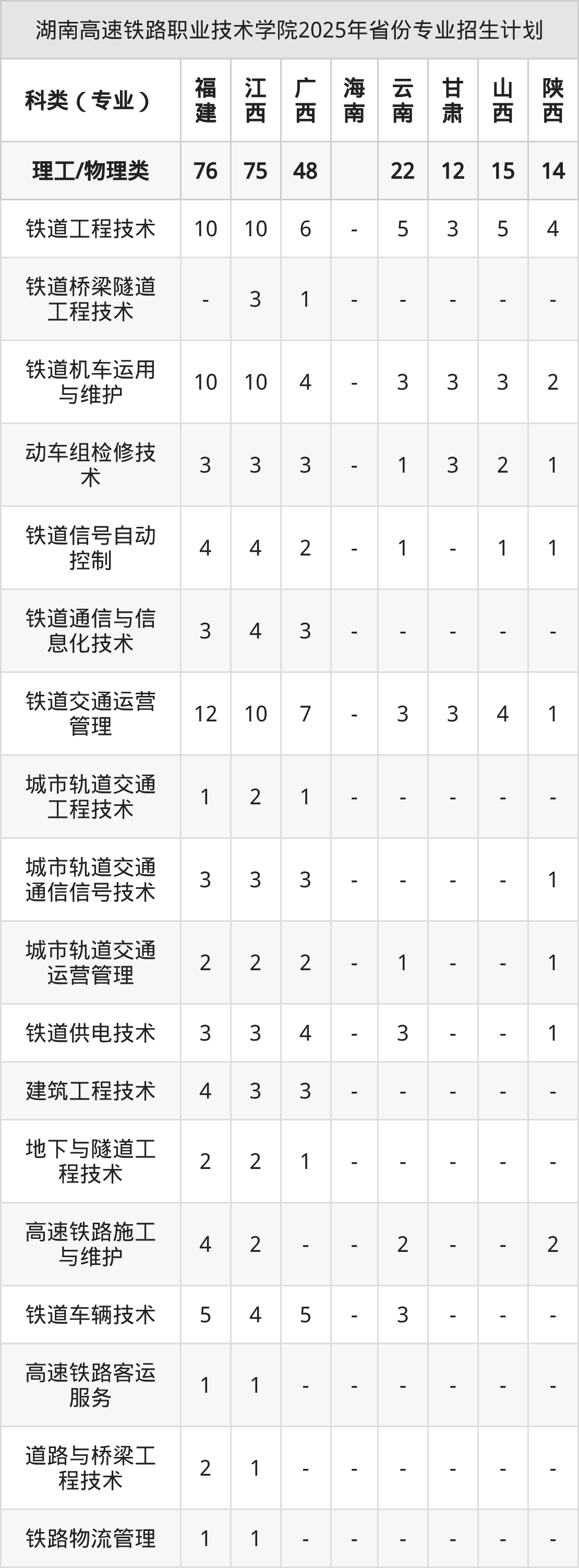 2026年湖南高速铁路职业技术学院专科招生计划待公布,下面附上2025年数据,暂供参考: