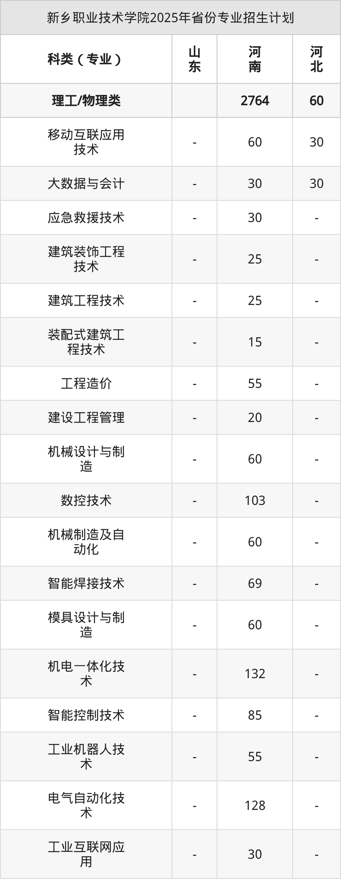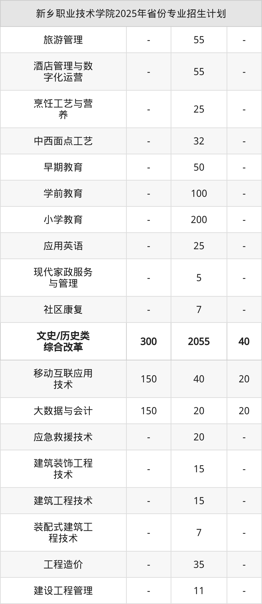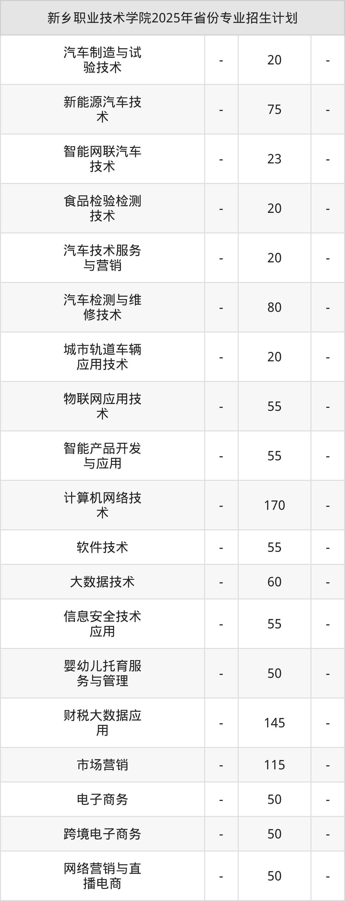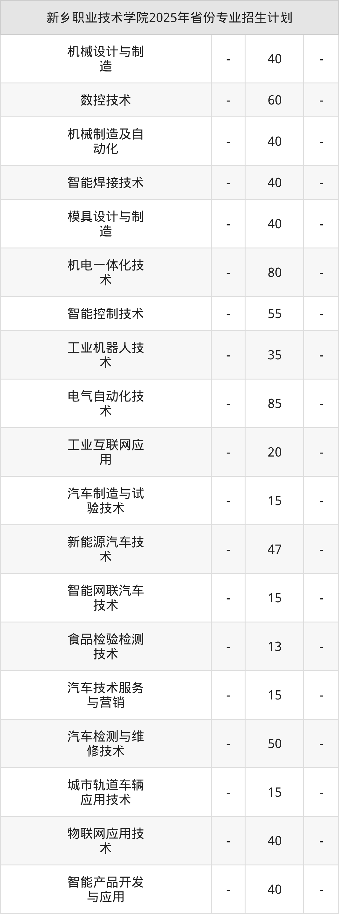 2026年新乡职业技术学院专科招生计划待公布,下面附上2025年数据,暂供参考: