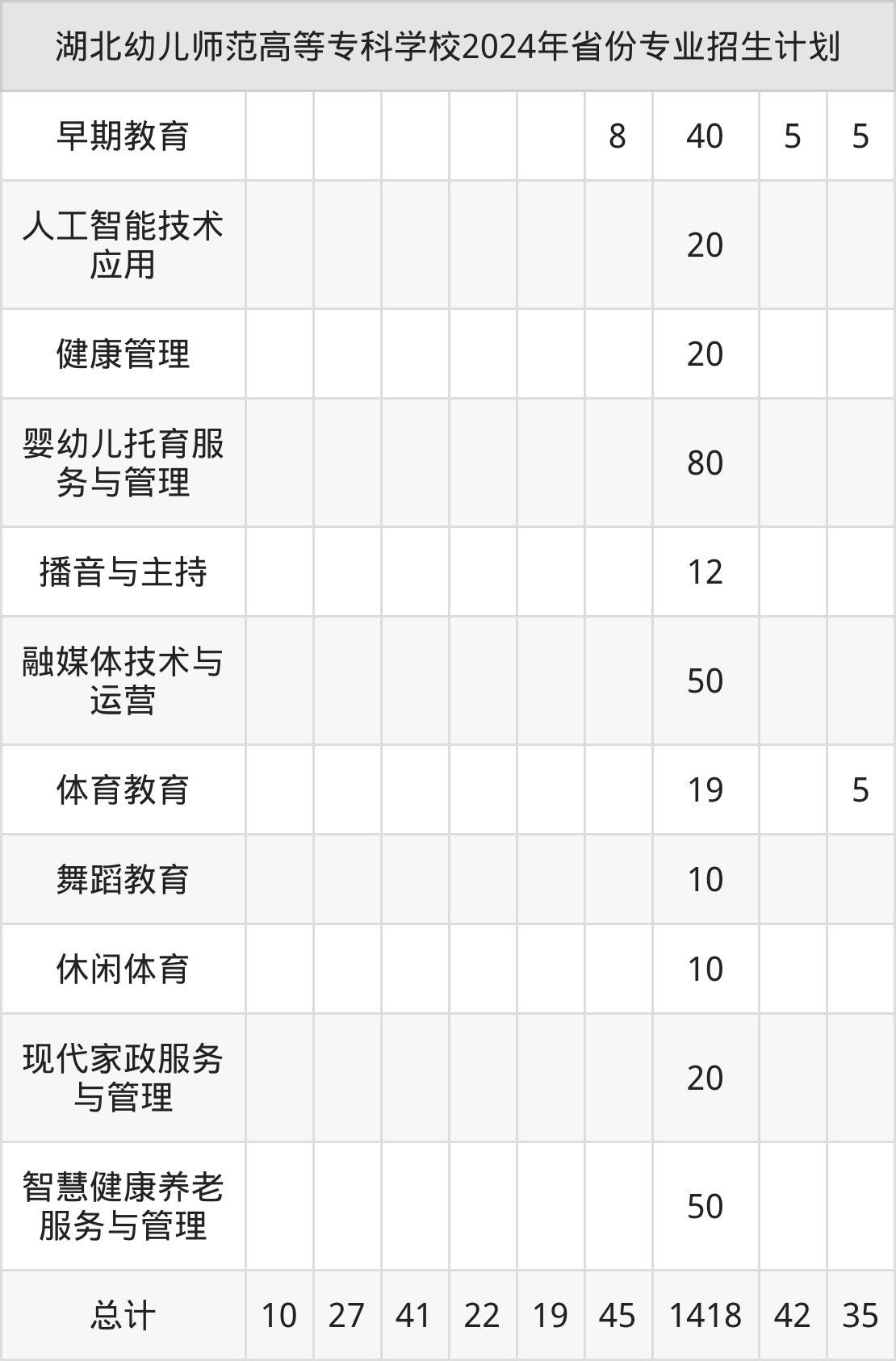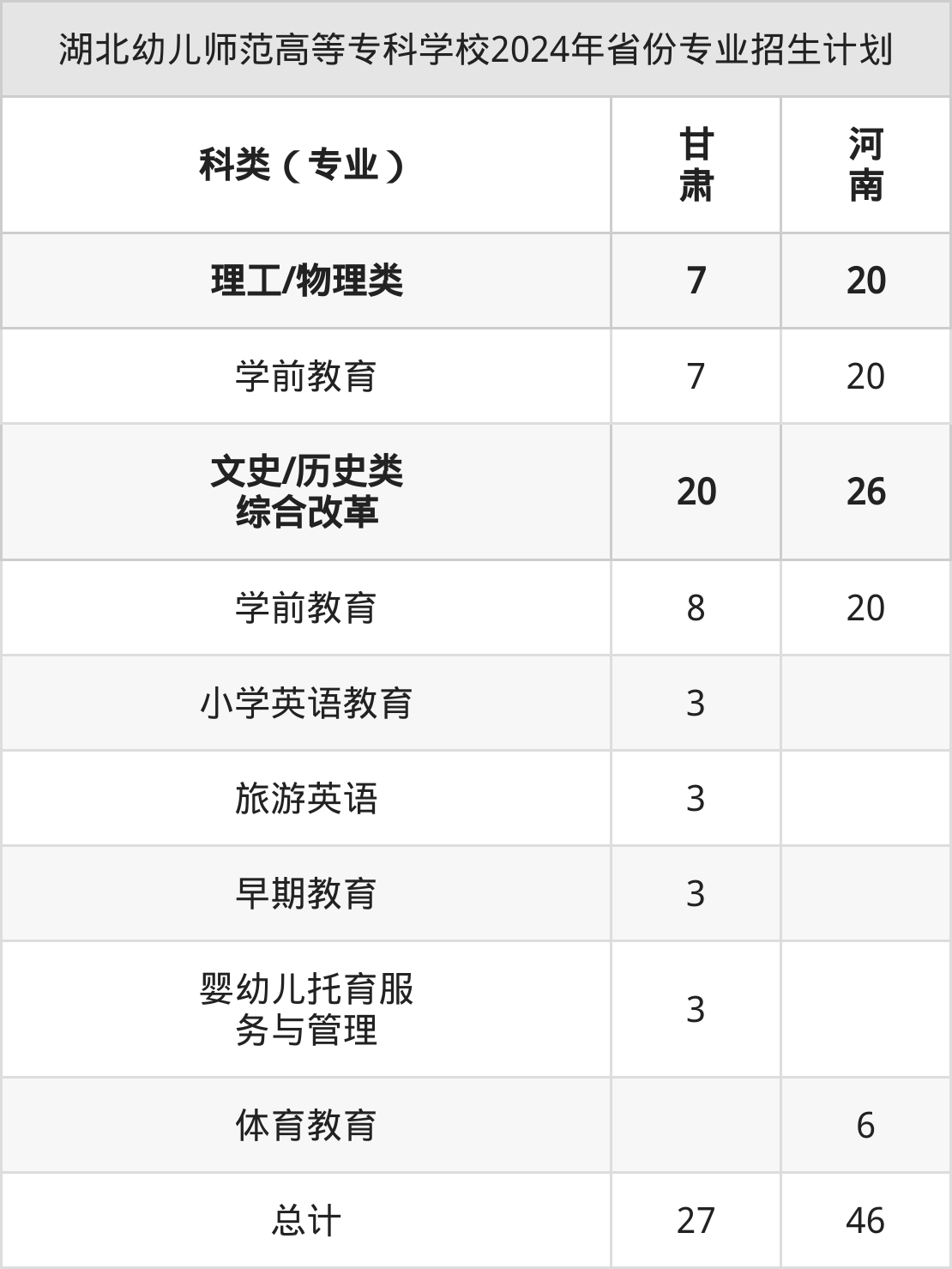 2025年湖北幼儿师范高等专科学校专科招生计划待公布,下面附上2024年数据,暂供参考: